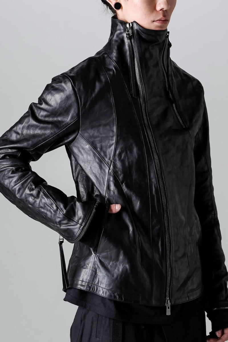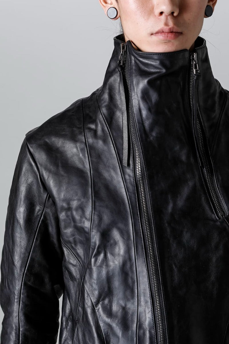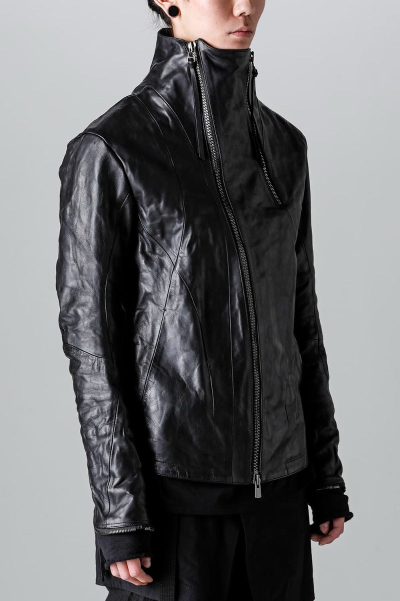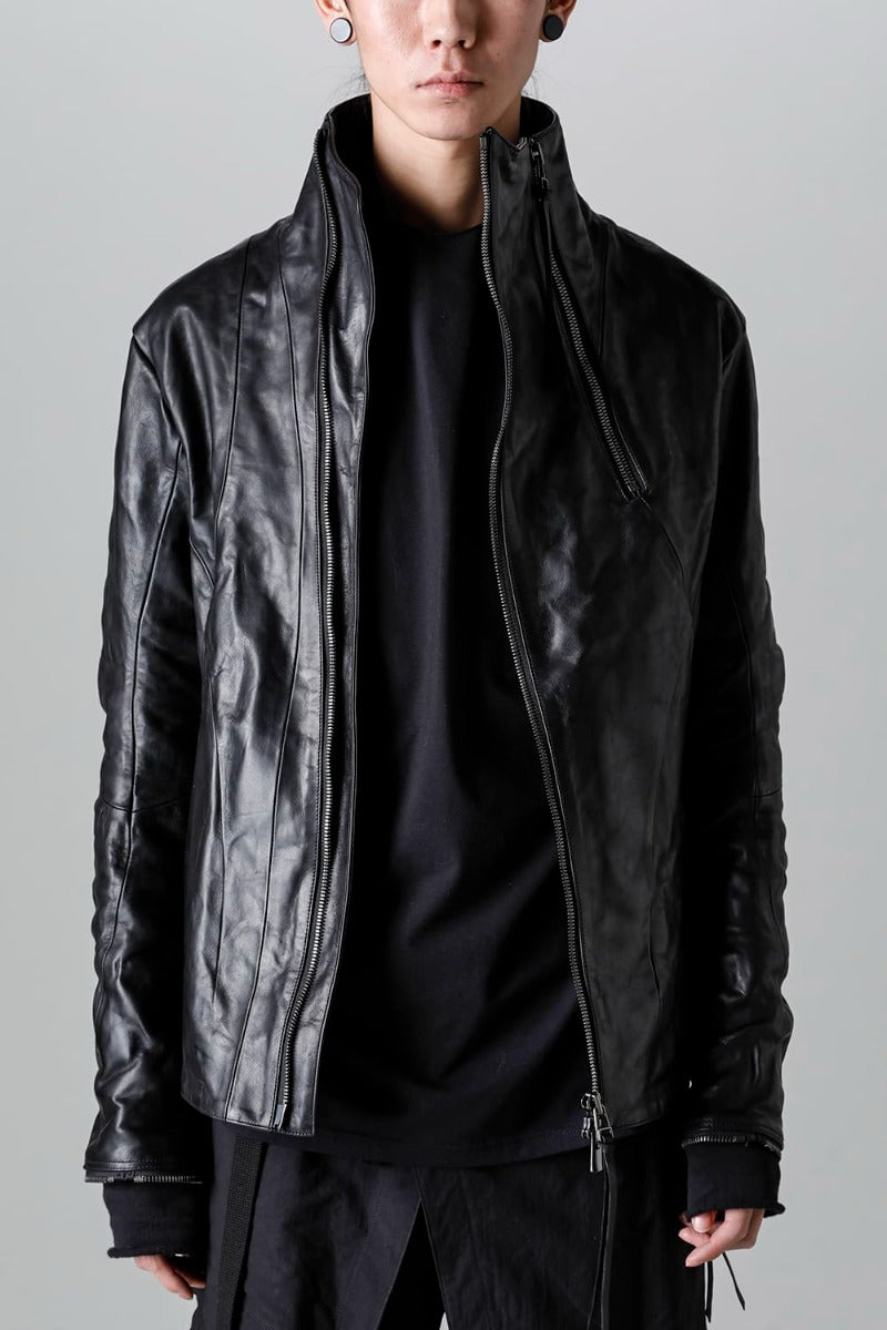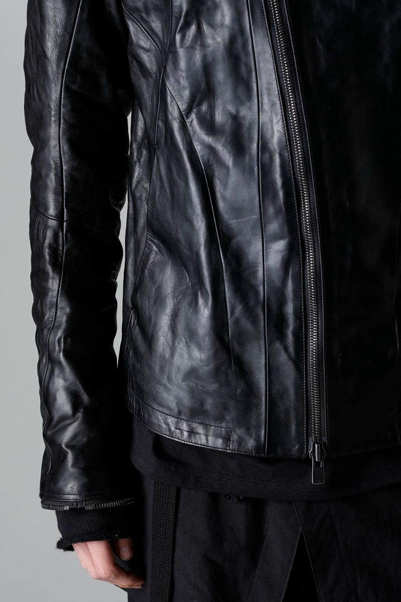 ホースレザーハイネックレザージャケット ブラック
