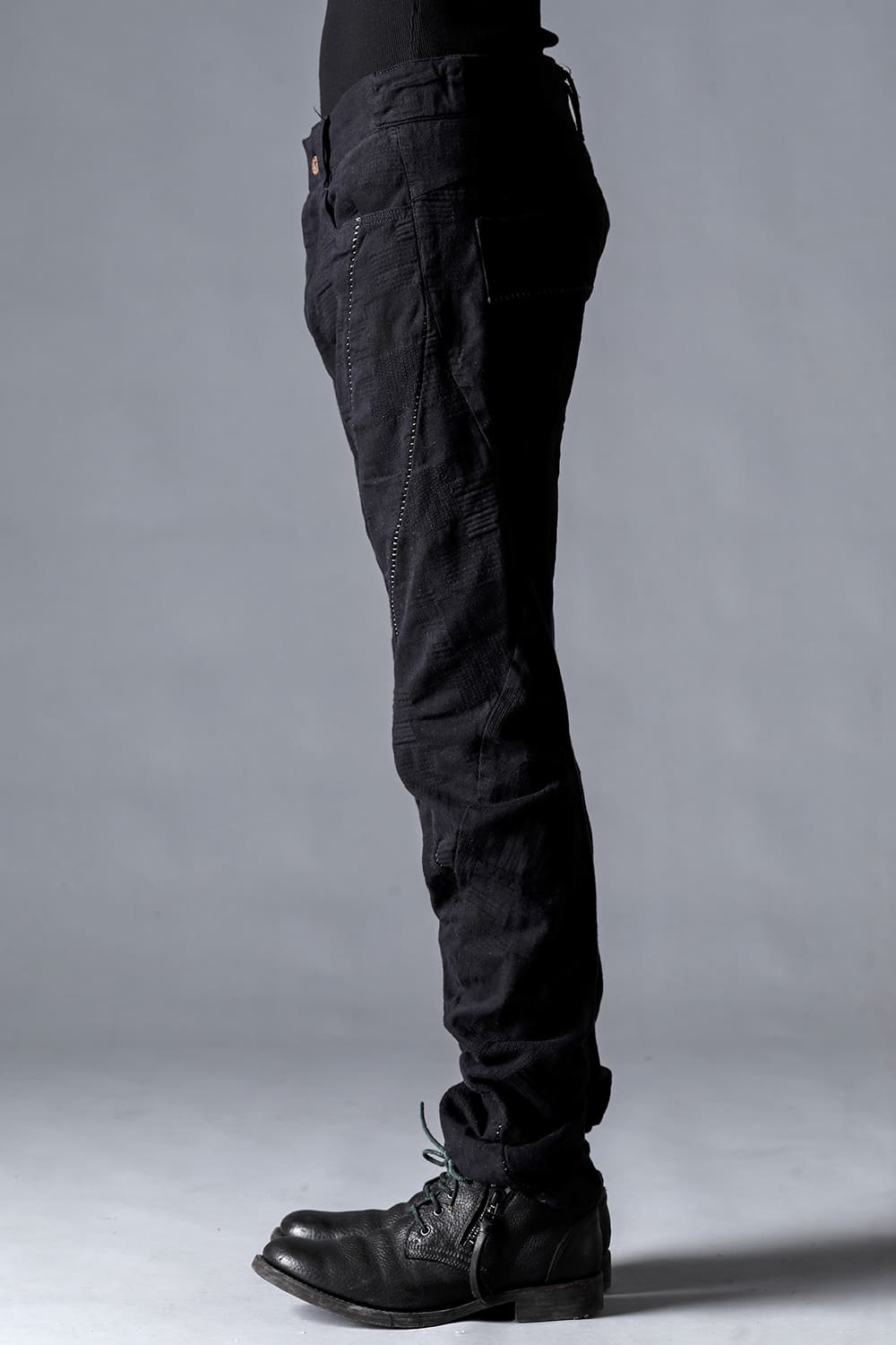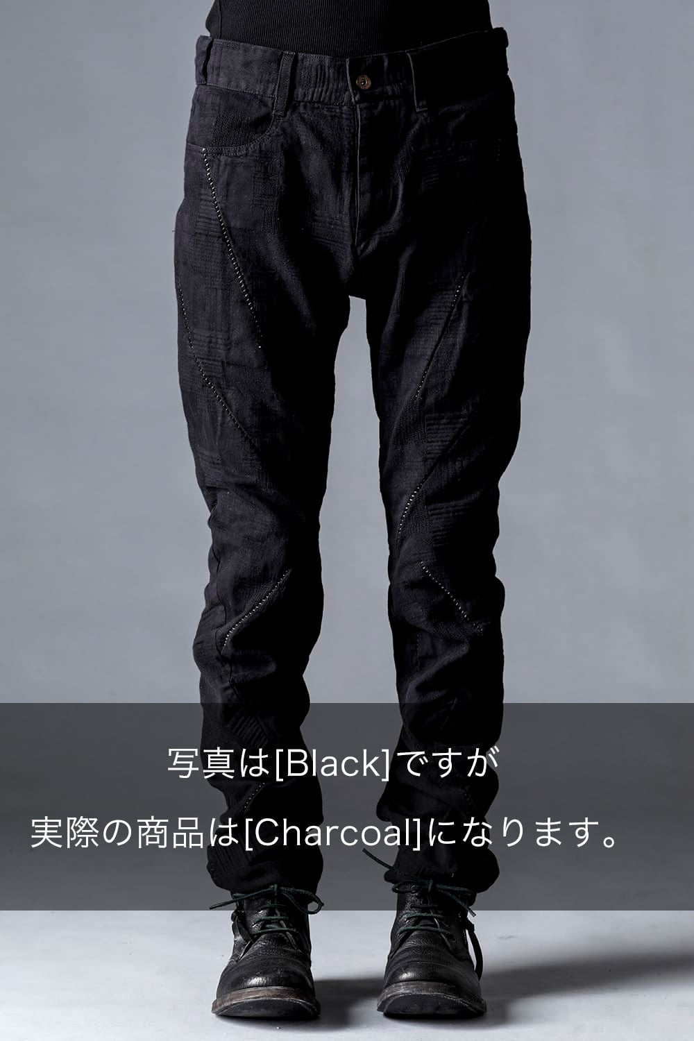ハイパーストレッチコットンデニムオーバーロックツイストカーブスリムパンツ チャコール
