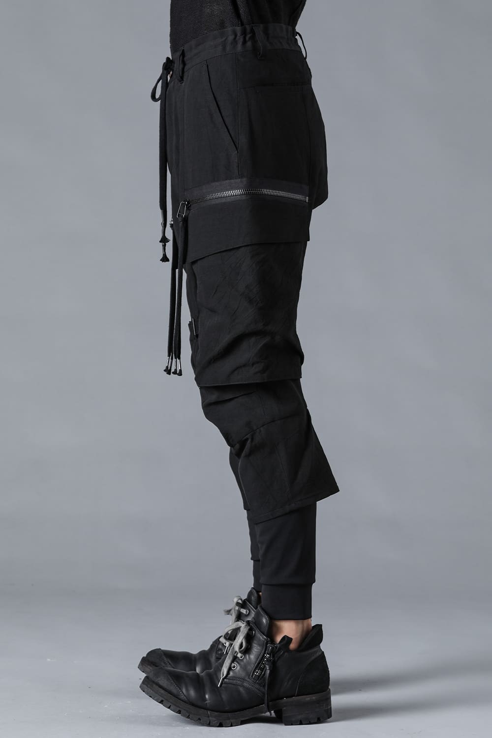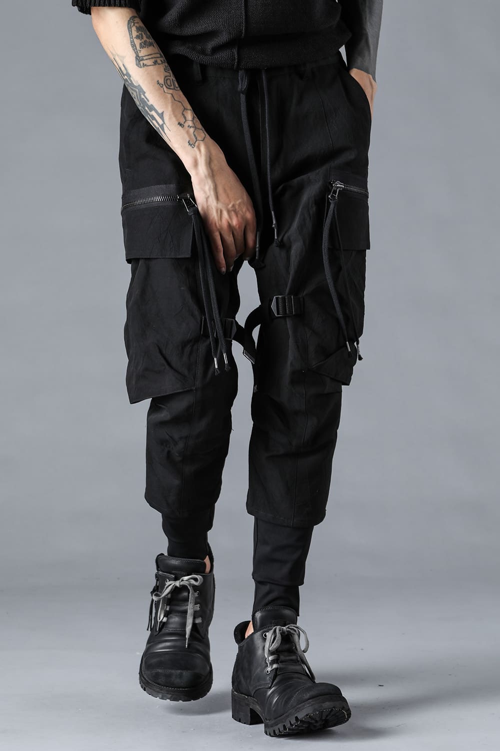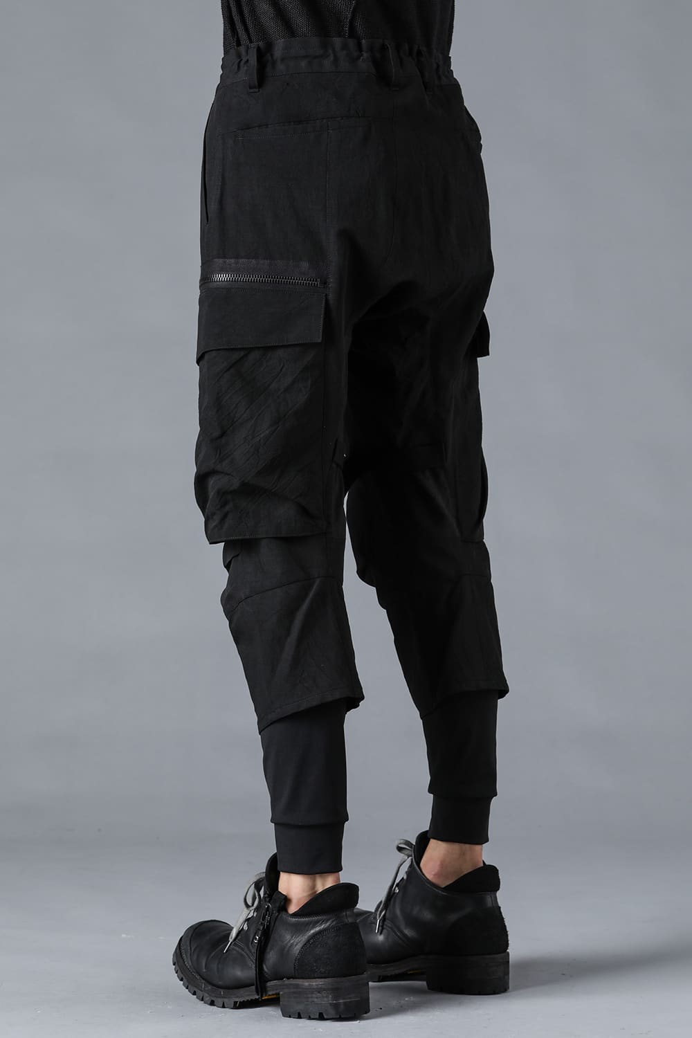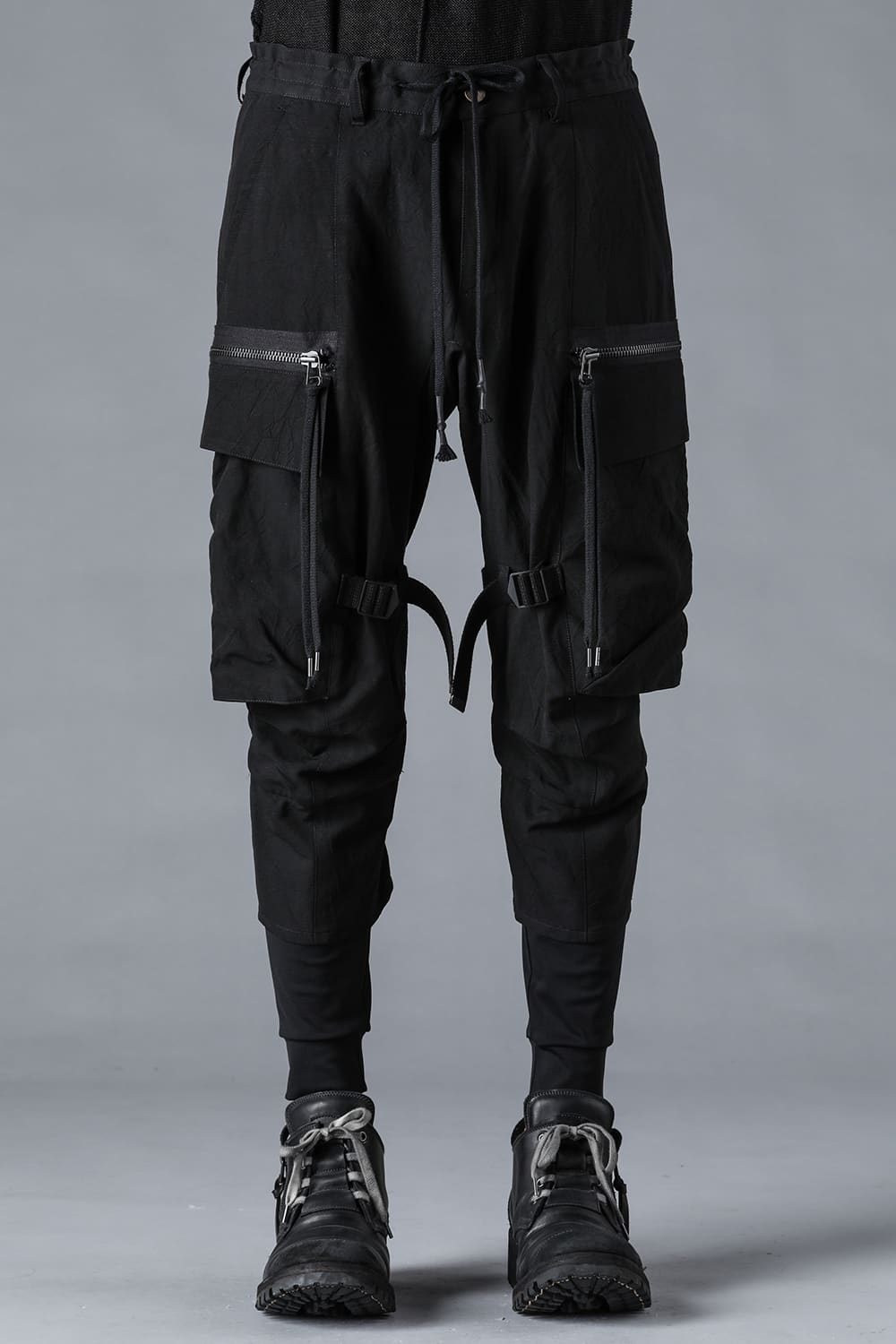 塩縮ワッシャードビーボーダーレイヤードカーゴパンツ