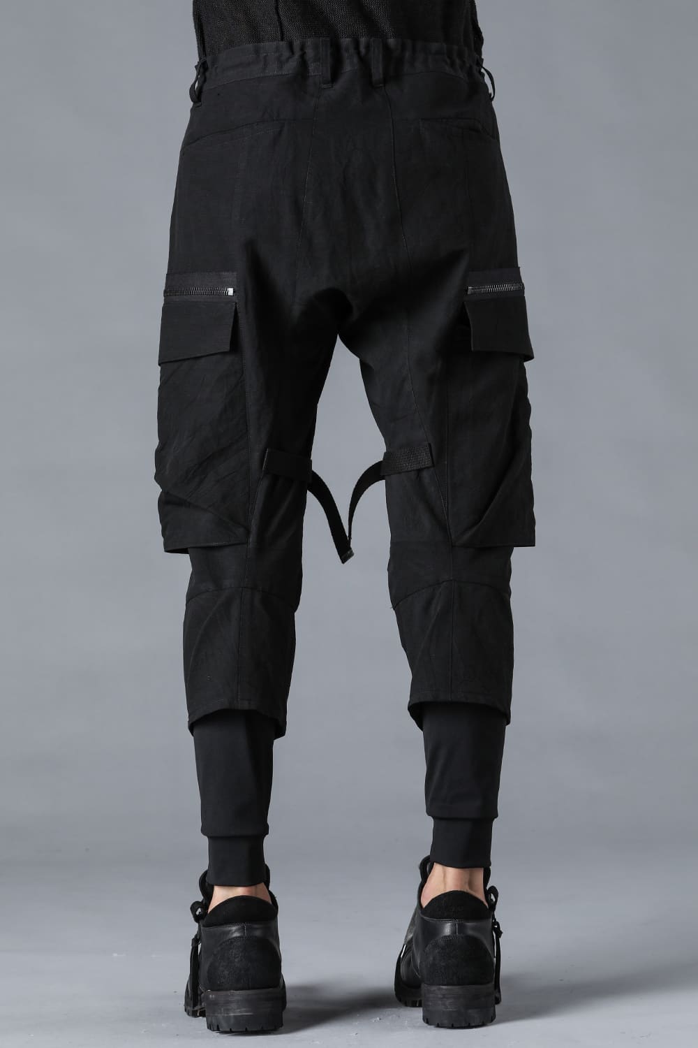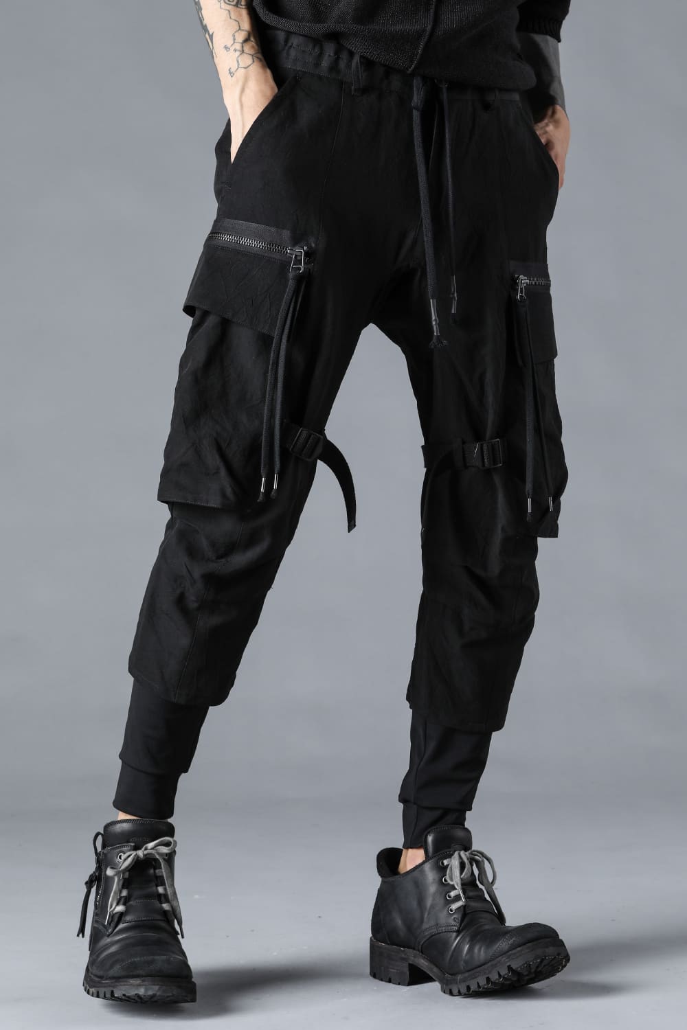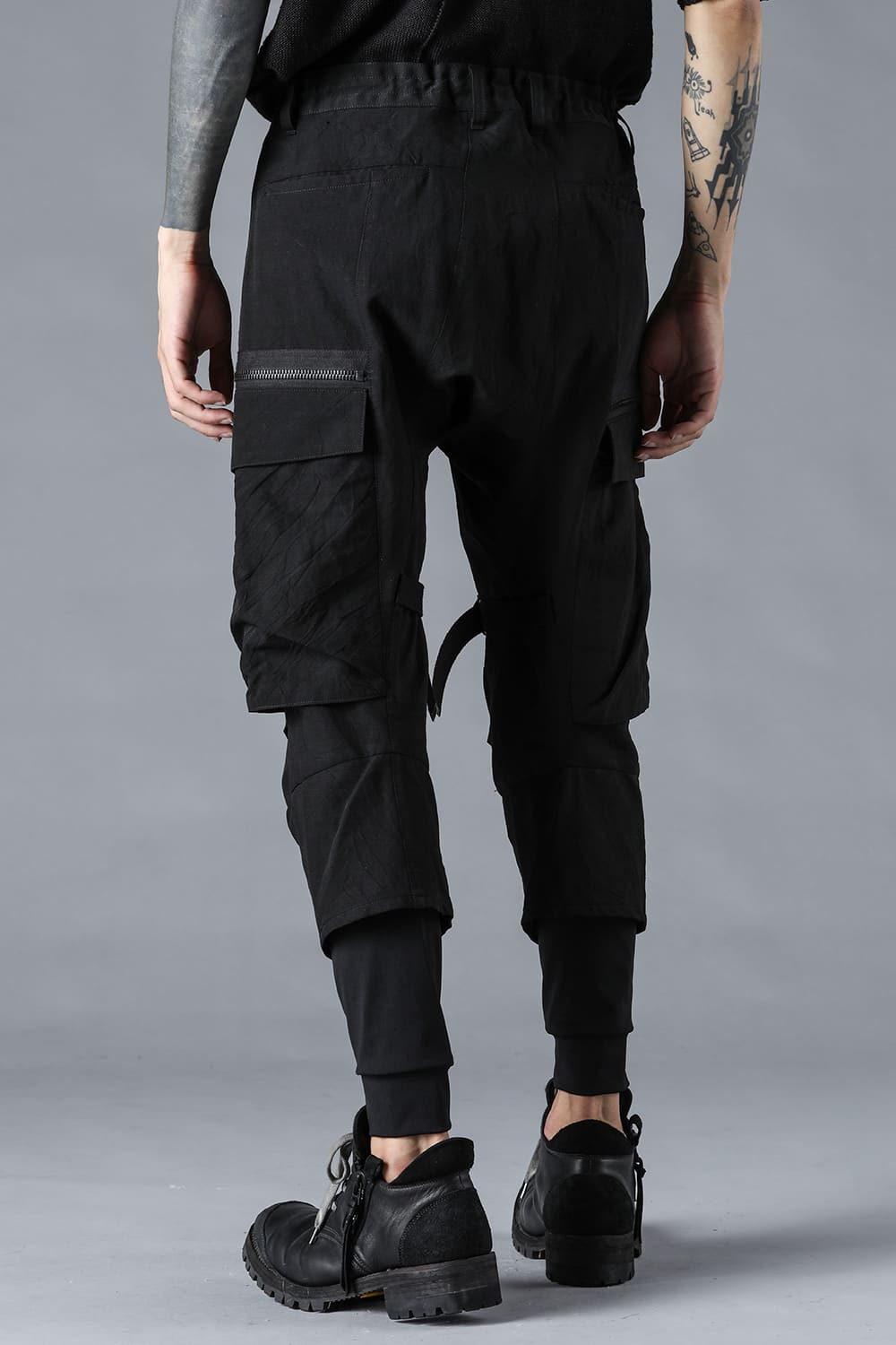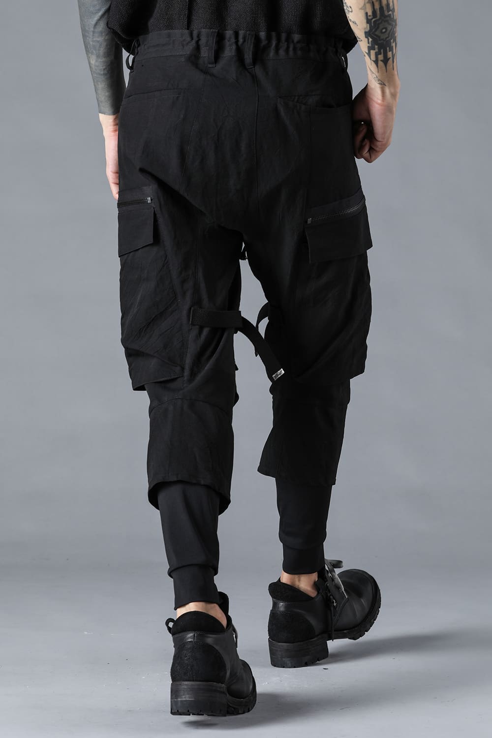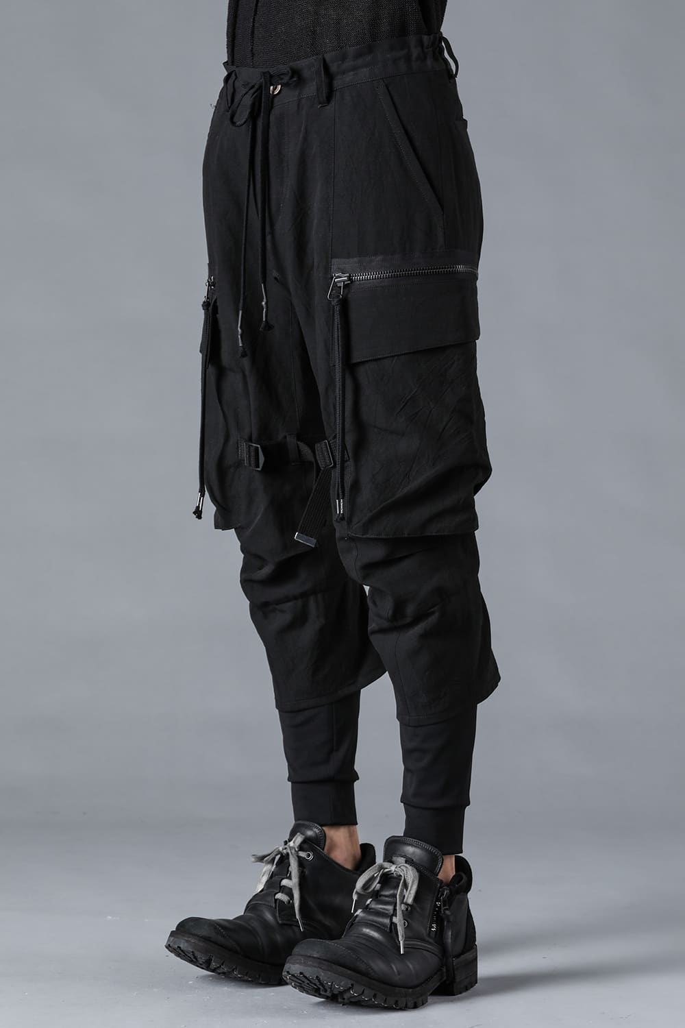 塩縮ワッシャードビーボーダーレイヤードカーゴパンツ