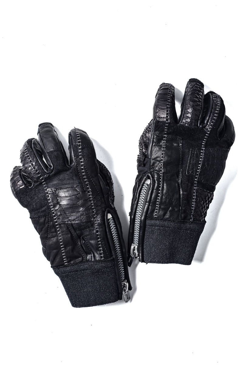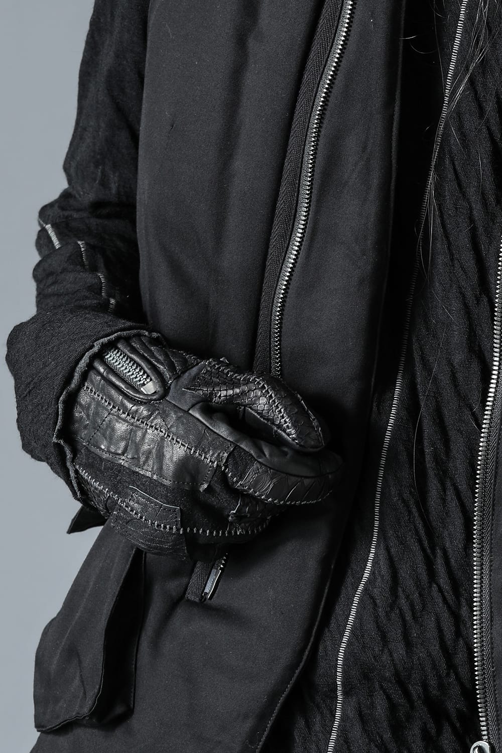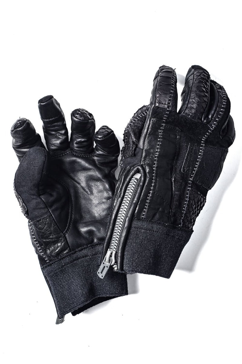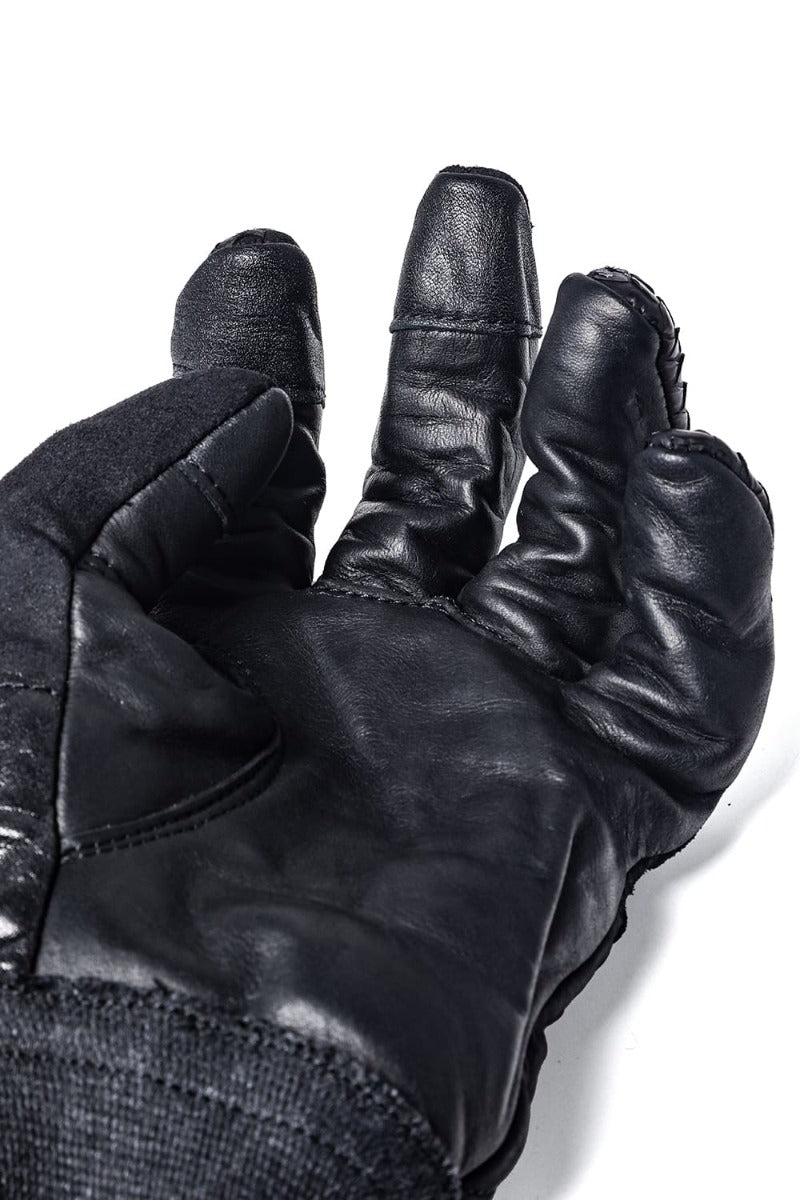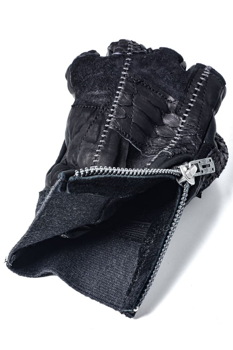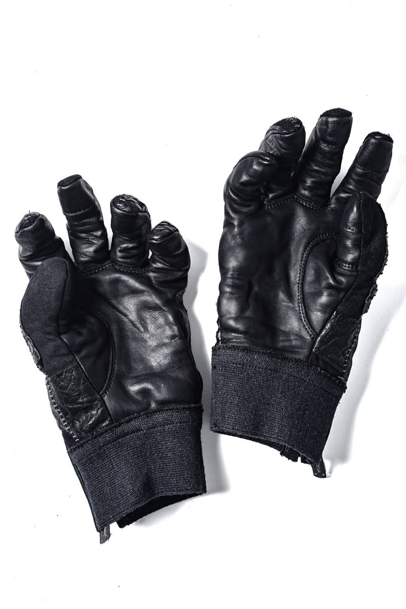 ・手の甲には様々な種類の革をランダムにパッチワーク加工したレザーを使用・手の平側にはコンビネーション鞣しした馬革を使用。クロム鞣の軽く強い点、タンニン鞣の革らしさ、経年変化を楽しめる点、両方の長所を兼ね備えた馬革です。