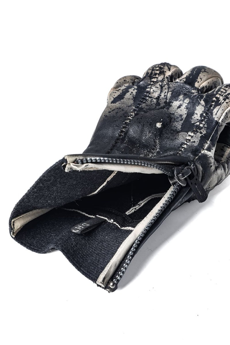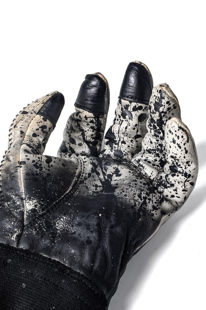 ・親指、人差し指、小指の指先から袖口にかけて太番手のオーバーロックステッチを入れています。