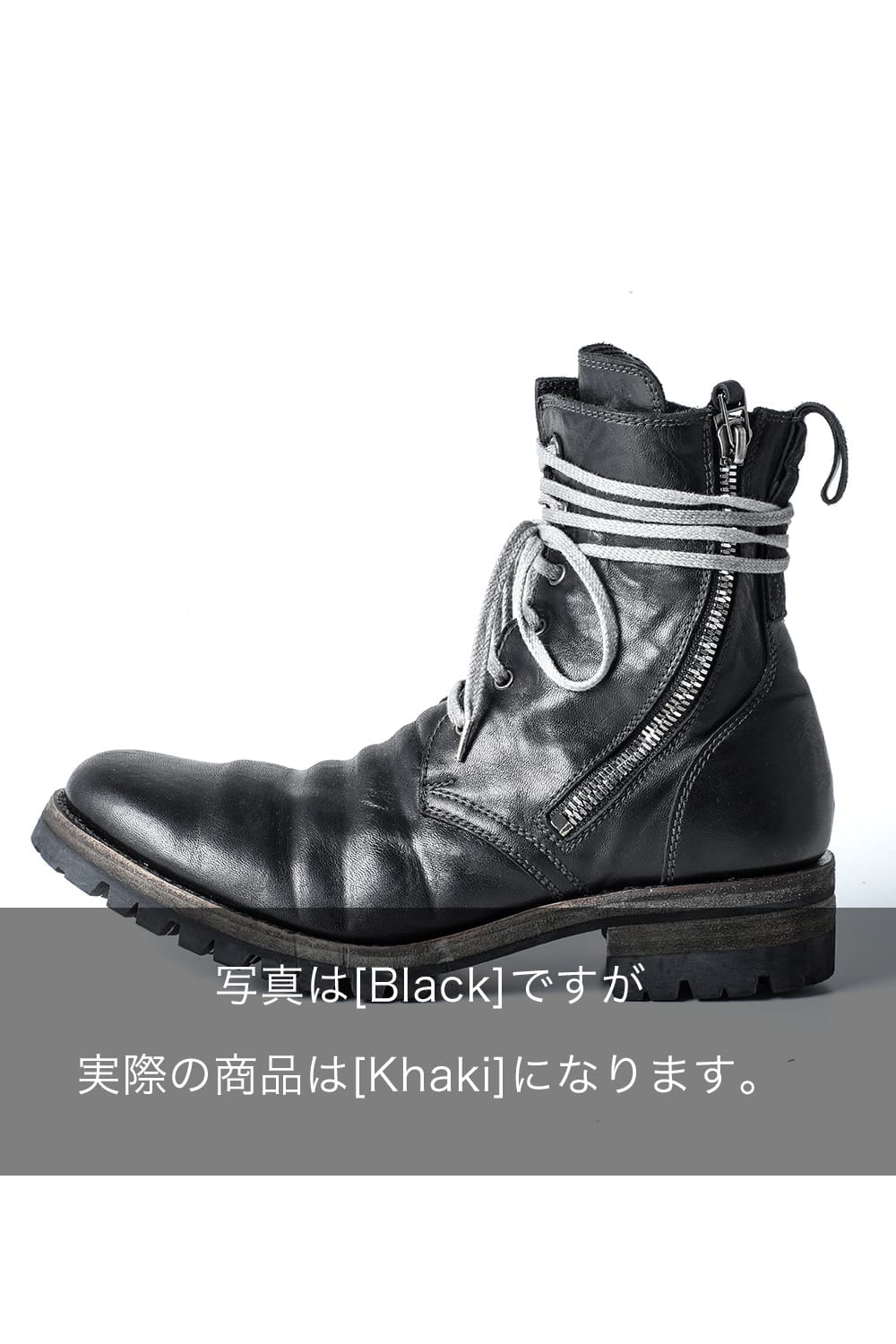 ・平らで滑らかに沿ったラウンドトゥ、ボリュームのあるワイズからアンクル丈で細くしまったシャフト、メリハリの有るシルエットのレースアップブーツです。