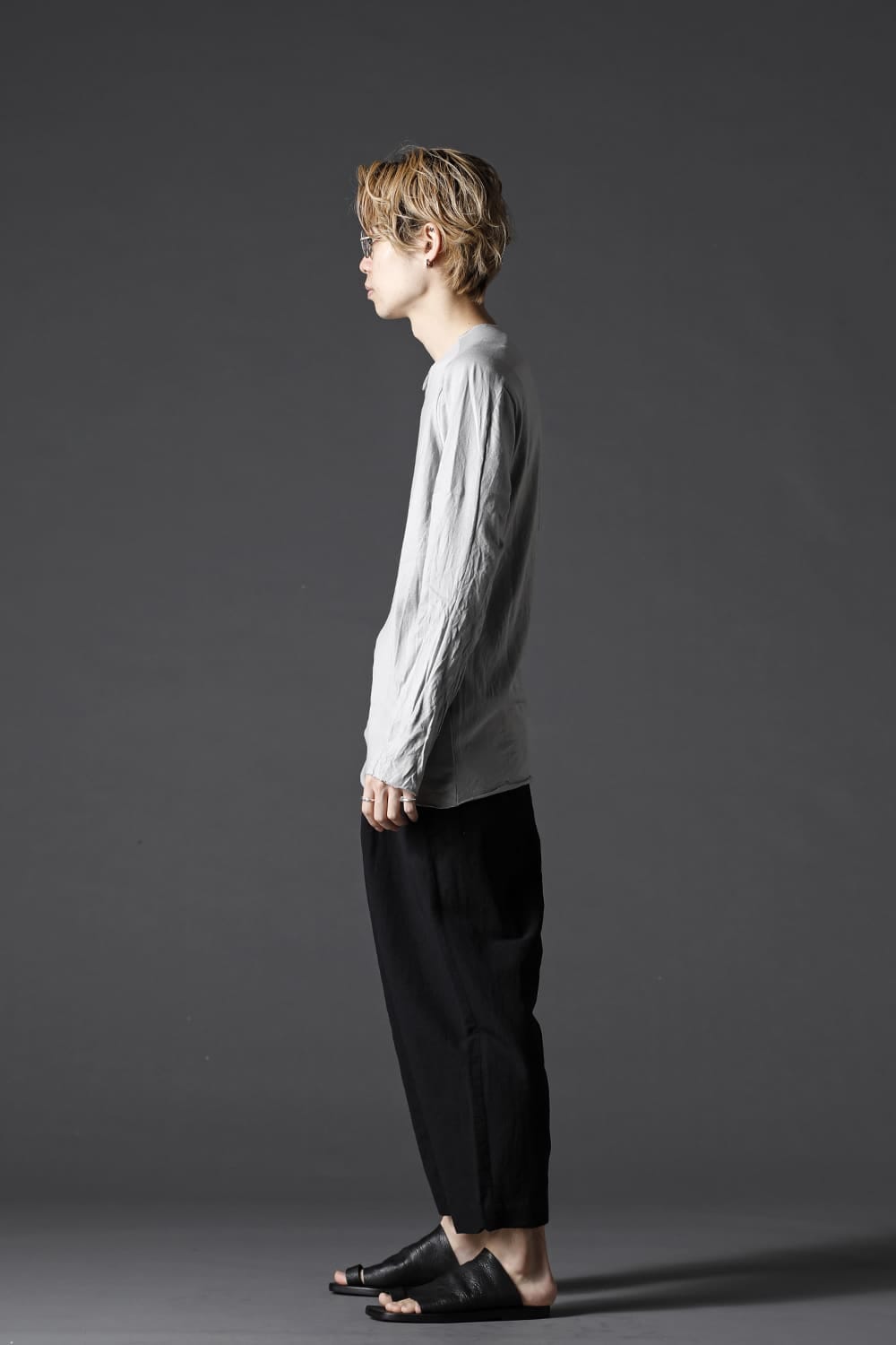 裾や袖口が断ち切りに仕上げられたミニマルデザインのware定番ロングスリーヴカットソー。シルエットはボックスシルエットでクセがなくシンプルで非常に着やすい一着。色味はライトグレーとなっており、やや明るめのグレーでドライな印象を受けるカラーになっています。生地は大変柔らかく、肌ざわりもよいソフトライトジャージ生地を採用。軽量で伸縮性のある素材なので、ストレスのない着心地を実現しています。その軽い着心地の良さから少し肌寒いような時期のインナーとしてもお使い頂けます。