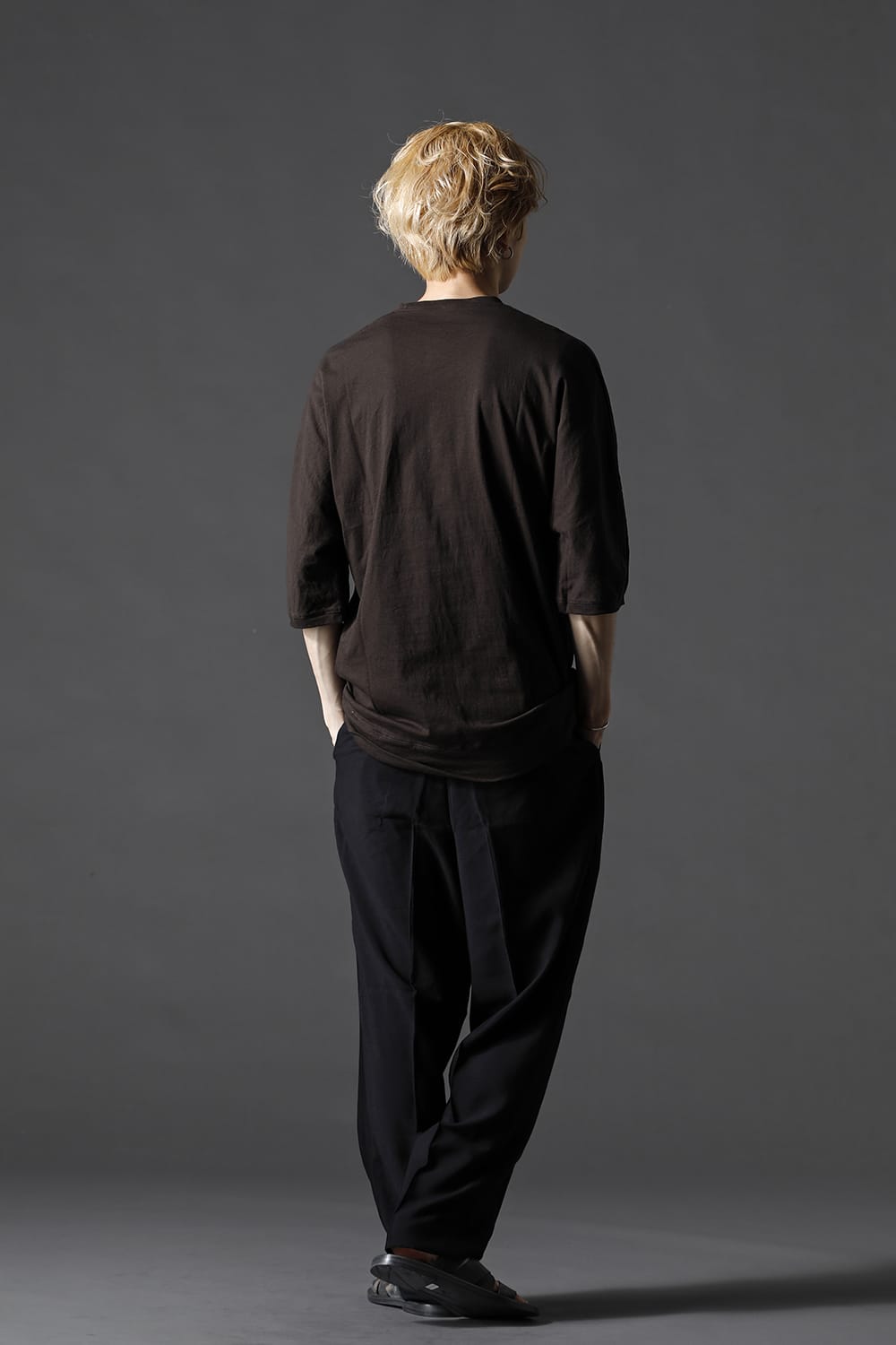 カシミヤのような嫋やかさと肌触りで“繊維の宝石”という愛称を持つ、シーアイランドコットン(海島綿)を使用した、ボックスシルエットのドルマンスリーブカットソー。シーアイランドコットンは英国王室をはじめ世界中の人々の羨望を集めている嗜好の素材。このコットンの最大の特徴は世界中のどのコットンよりも細く長い繊維であることにあります。耐久性に優れながら滑らかな肌触りと極上の着心地を堪能いただけ、さらっとした肌につきにくい質感が魅力です。 ディテールは袖付け根のゆとり、身幅が広目に取られたパターンで、とてもリラックスした着用感。袖、裾は全てバインダー仕様の丁寧な仕上がりで、一枚で着用しても適度なボリュームが出るため、アウターとして全体のバランスが取れるとても重宝するカットソーです。カラーはwareのSSシーズンではあまりリリースされていない茶系色のダークカーボンとオリーブカーキ、ベージュの3色展開です。