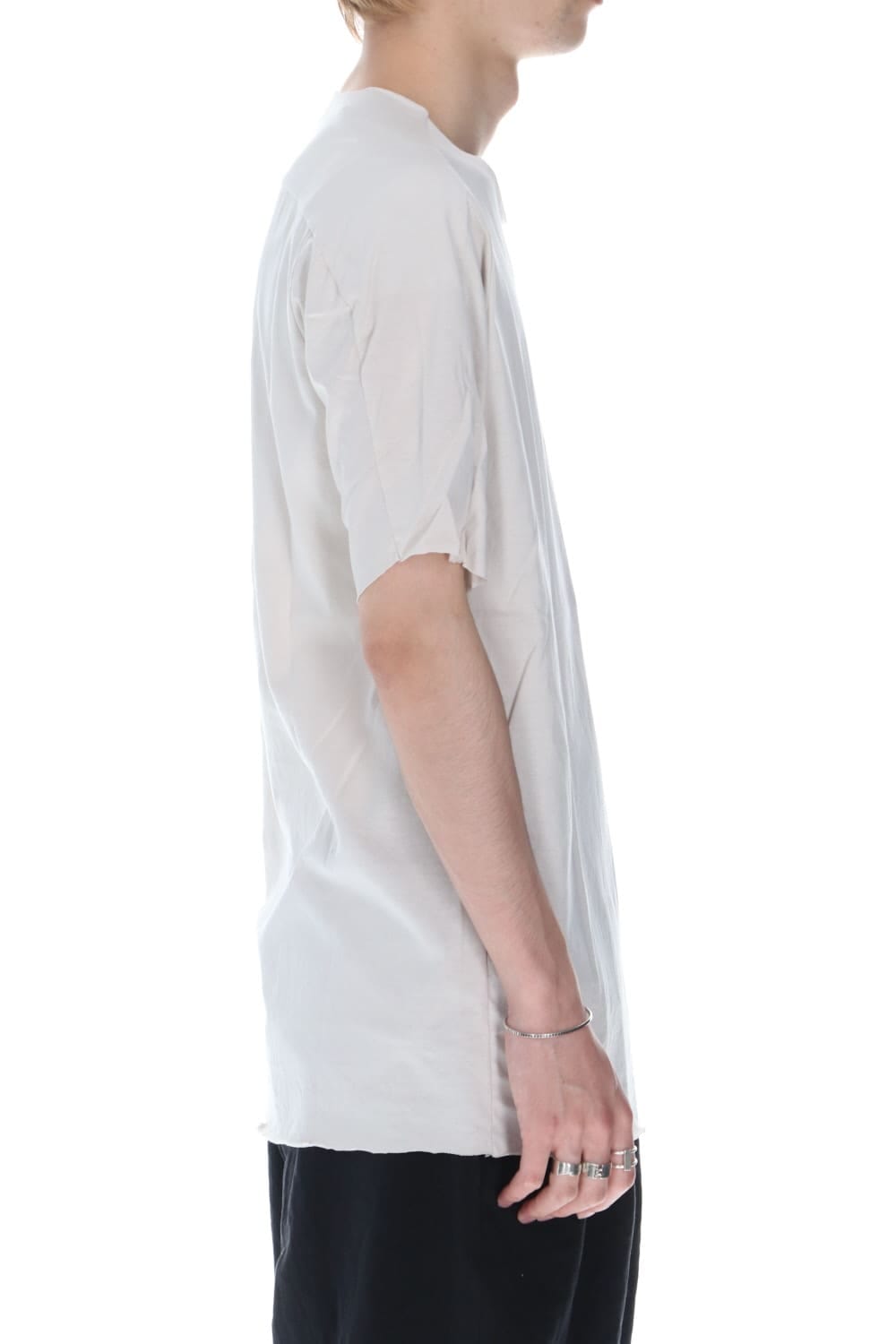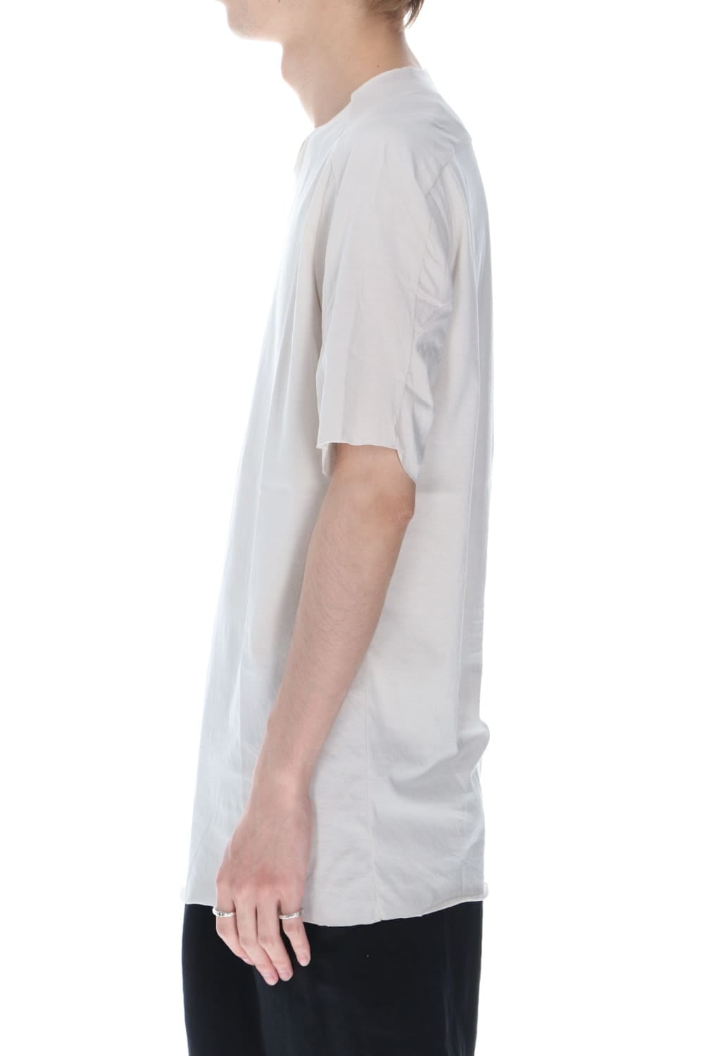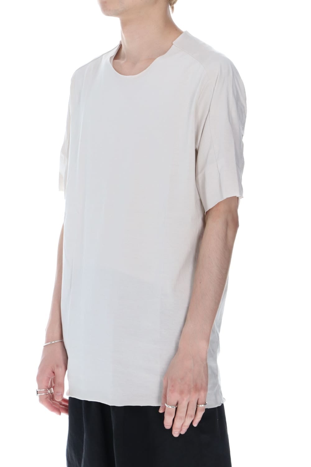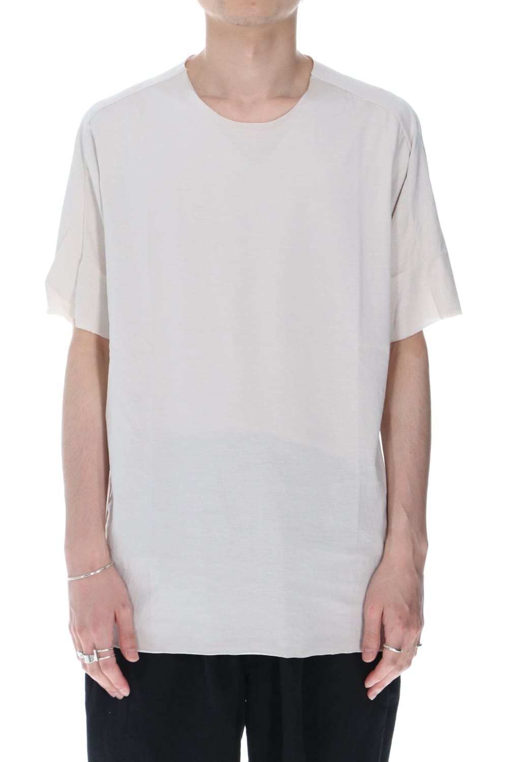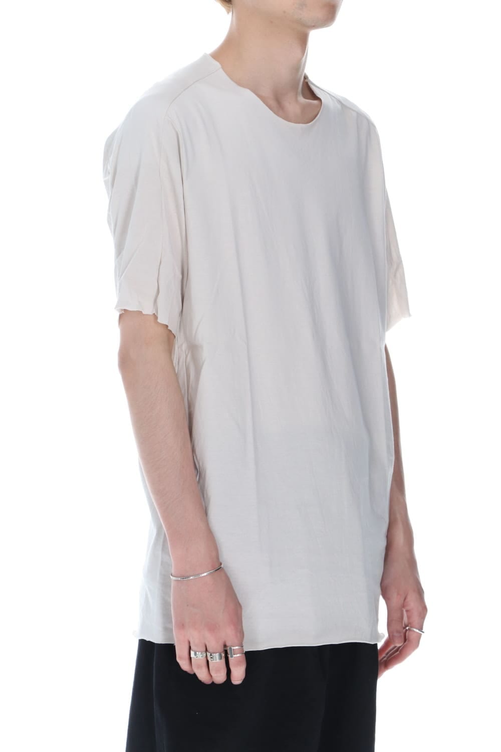 袖や裾、首回りを断ち切り仕様で作成されたwareの定番カットソーデザイン。シルエットはボックスシルエットでクセがなくシンプルで非常に着やすい一着です。 素材はシルケット加工が施されており、綿素材の毛羽立ちを抑えたものになっています。毛羽がない分、抜群に良い着心地なっています。また、生地に光沢がありカジュアルなアイテムながら高級感があります。インナーとしても使い勝手が良く、通年着用して頂けます。同一素材でWhite、Beige、Blackの3色展開です。