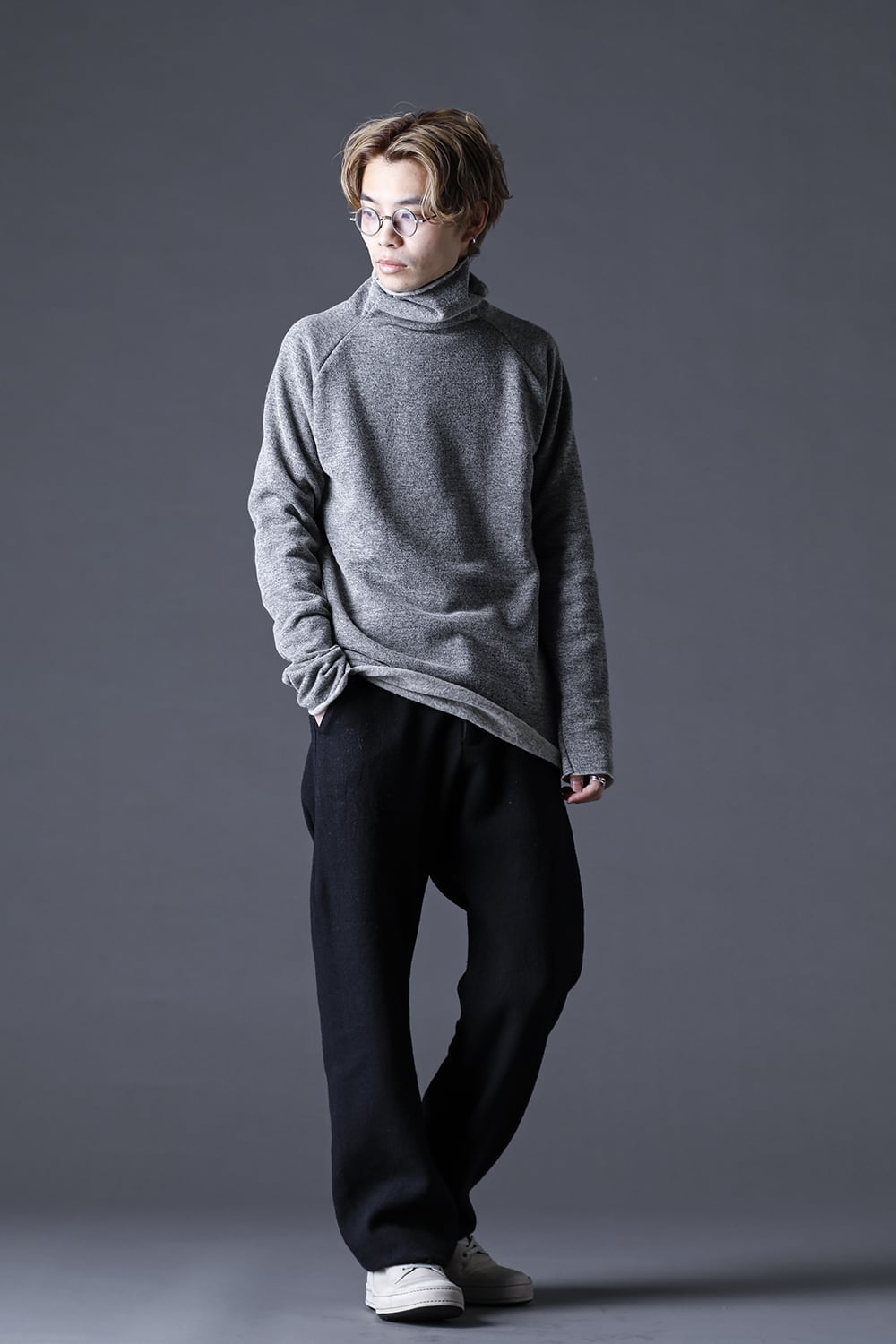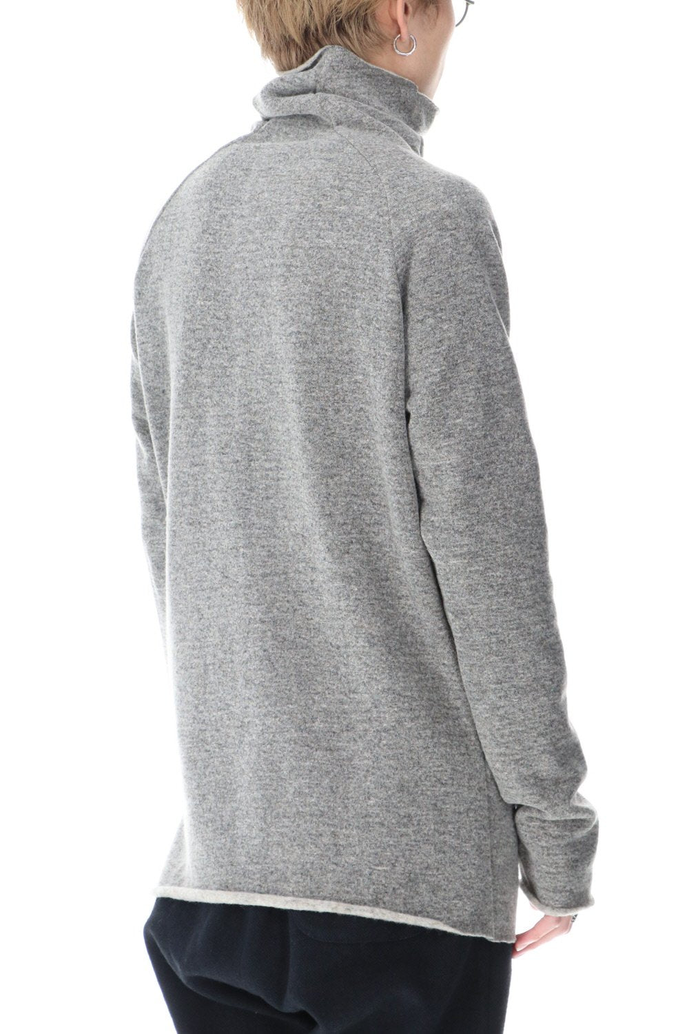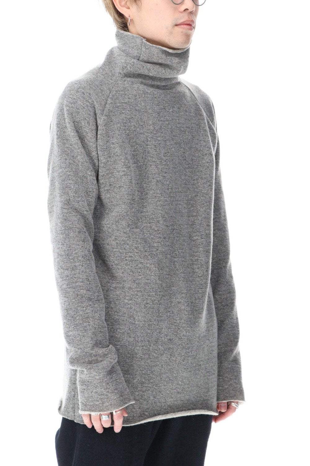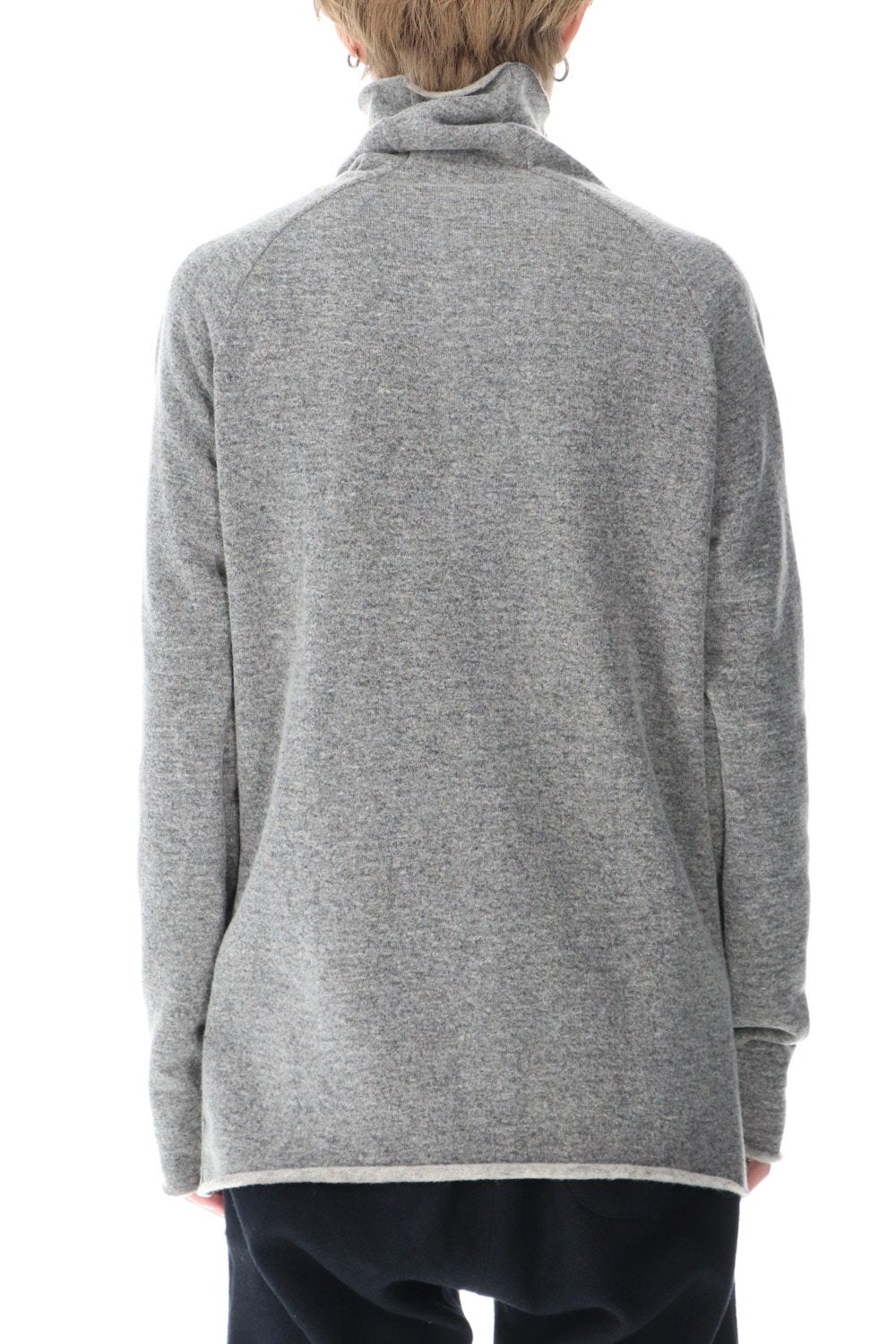 wareの定番のボトルネックニット。 少し長めの着丈でジャケットやコート等、合わせるアウターを選ばず丁度良いバランスに纏まり、冬場のインナーとして活躍するwareの万能アイテム。ディテールはラグランスリーブでネック、袖先、裾全て断ち切り仕様になっております。素材はイタリア マペル社のもので、1980年創立の老舗生地メーカーです。ニット素材を得意とする生地メーカーで、ウール素材を主体とし、ポリエステル等の化学繊維とを組み合わせることにより、柔らかく暖かいニット素材を作ることを得意としています。繊維と繊維と隙間に暖かい空気をため込みますので暖かく、ふんわりとした軽い着心地が特徴です。どちらも内側の色が淡くツートーン調になっており、グレーとグレーベージュの2色展開です。