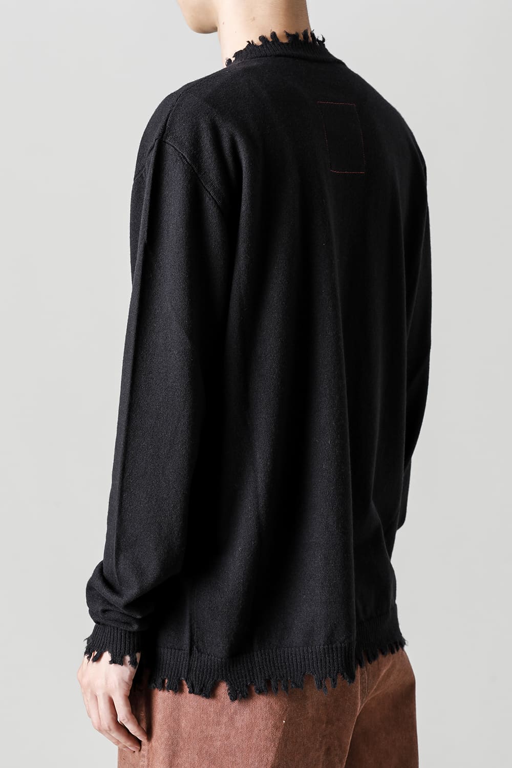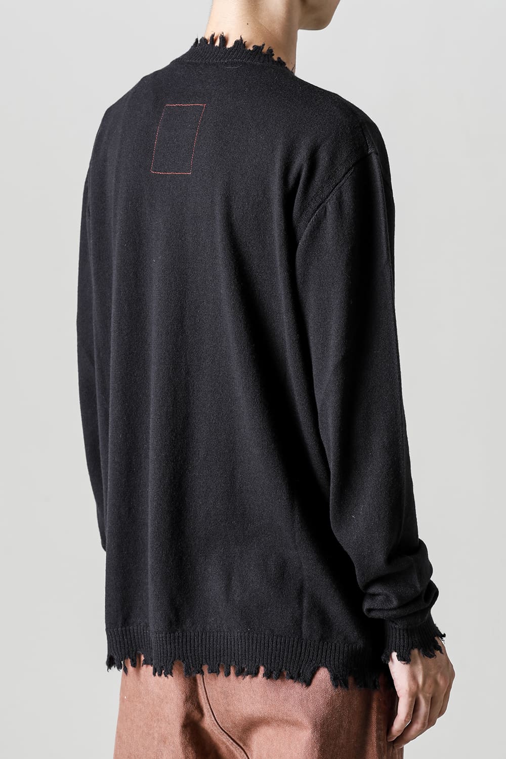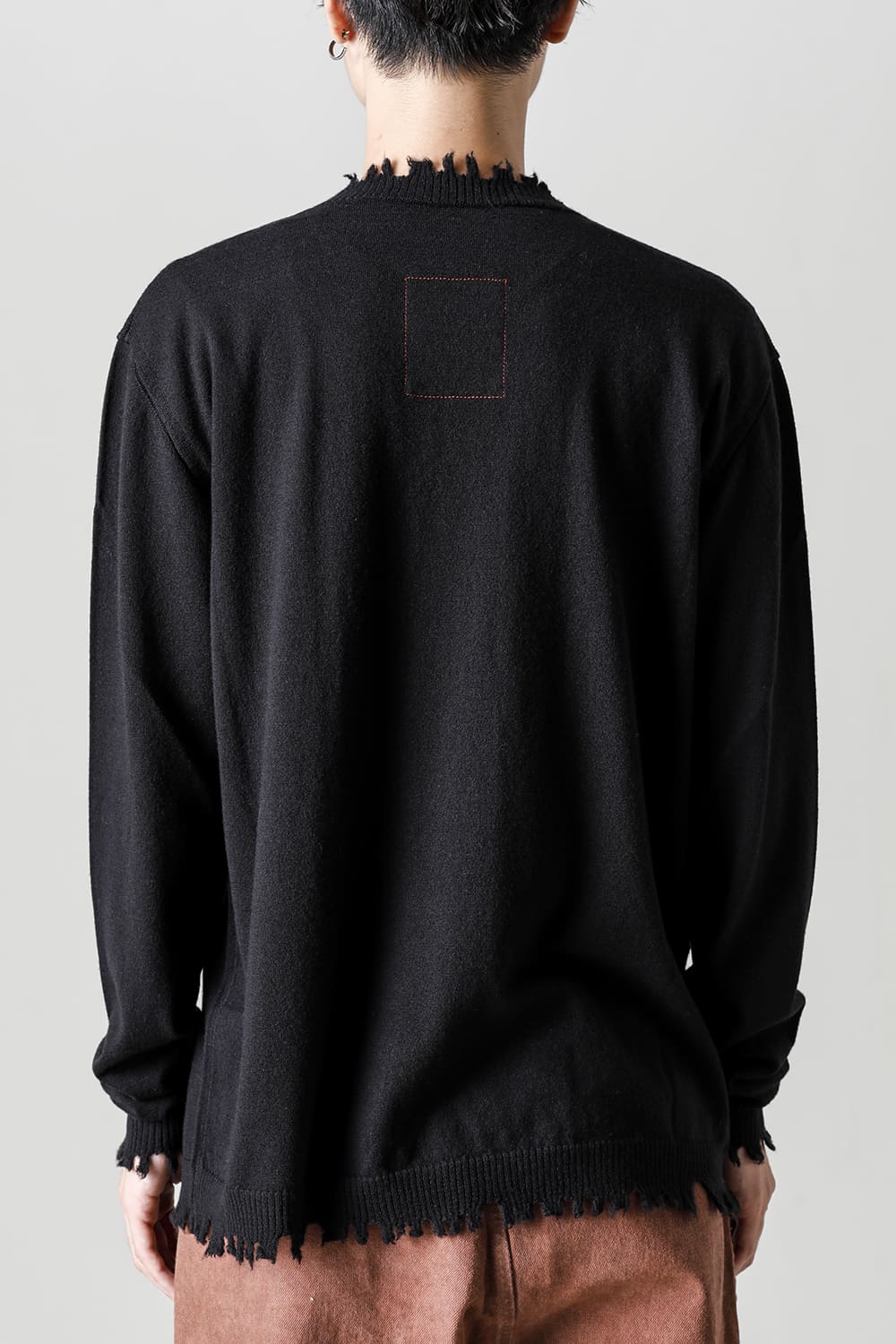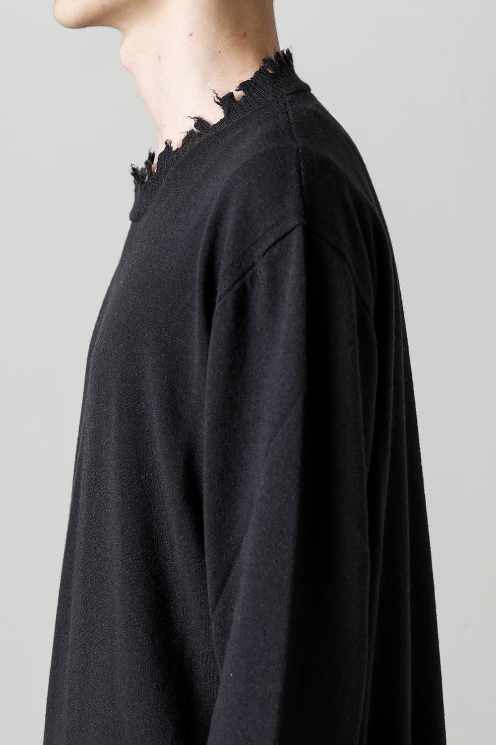 シンプルなデザインをベースに裾、首元、袖口にブロークン加工を施してアクセントにしたクルーネックニット。丈感はコンパクトに、身幅などはスタンダードなニットと同程度のサイズ感です。カラーはブラックとオフホワイト。しっとりとした柔らかい肌触りのカシミアを使った非常に贅沢なニットは着用時のストレスを感じさせない癖になる肌触りを是非お試しください。