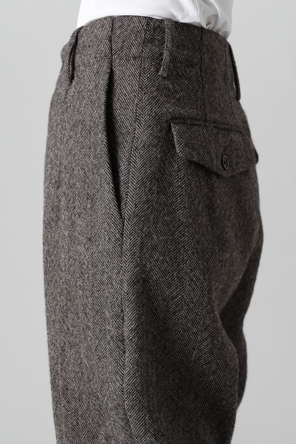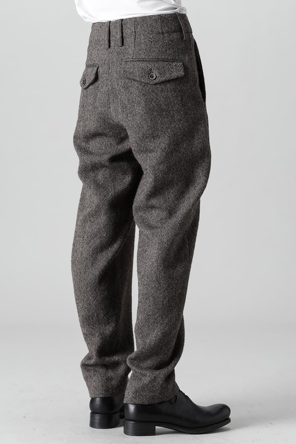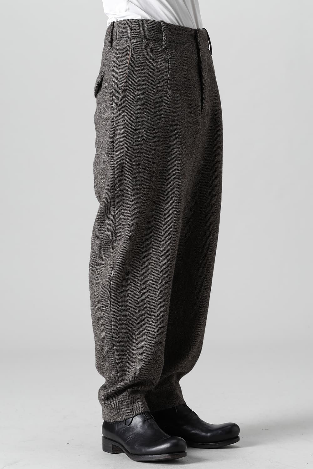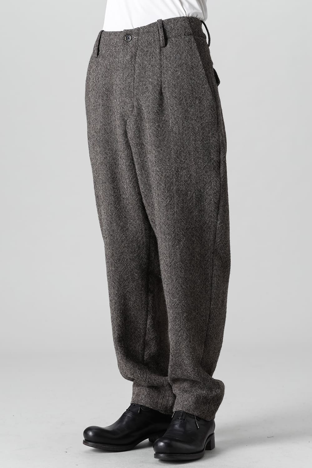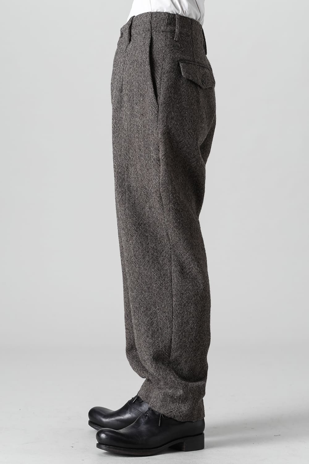 腿周りから裾先にかけて緩やかに細くなるテーパードシルエットのヘリンボーンツイードパンツ。 秋冬らしい表情を持った肉厚なツイードですが、着用感は非常に軽く快適な履きごこちです。