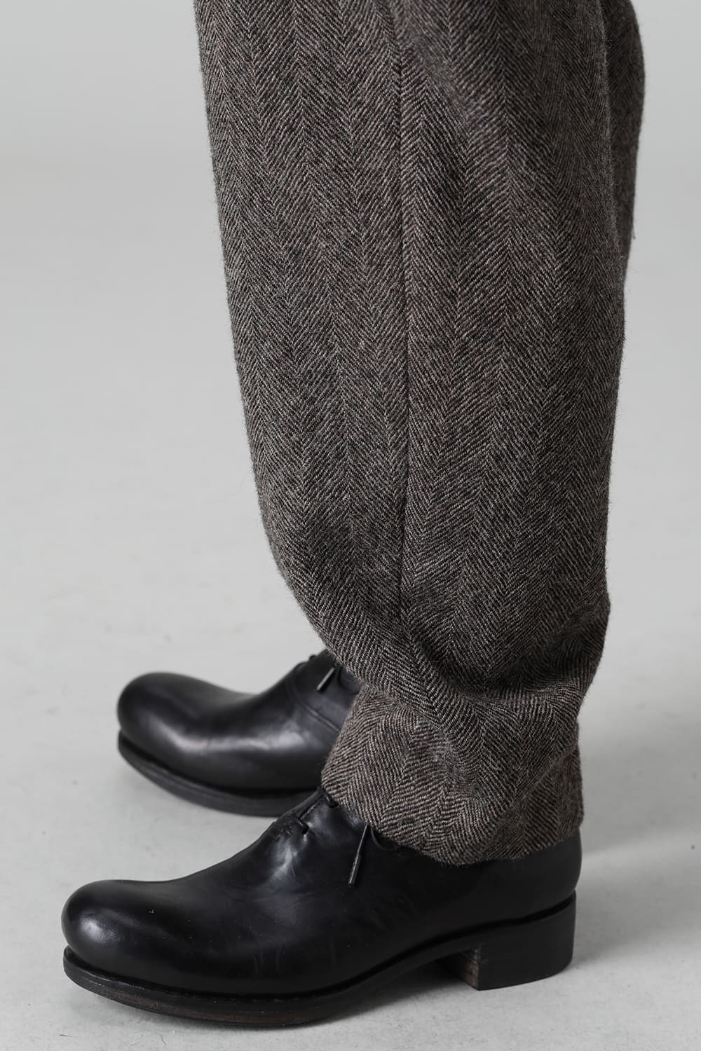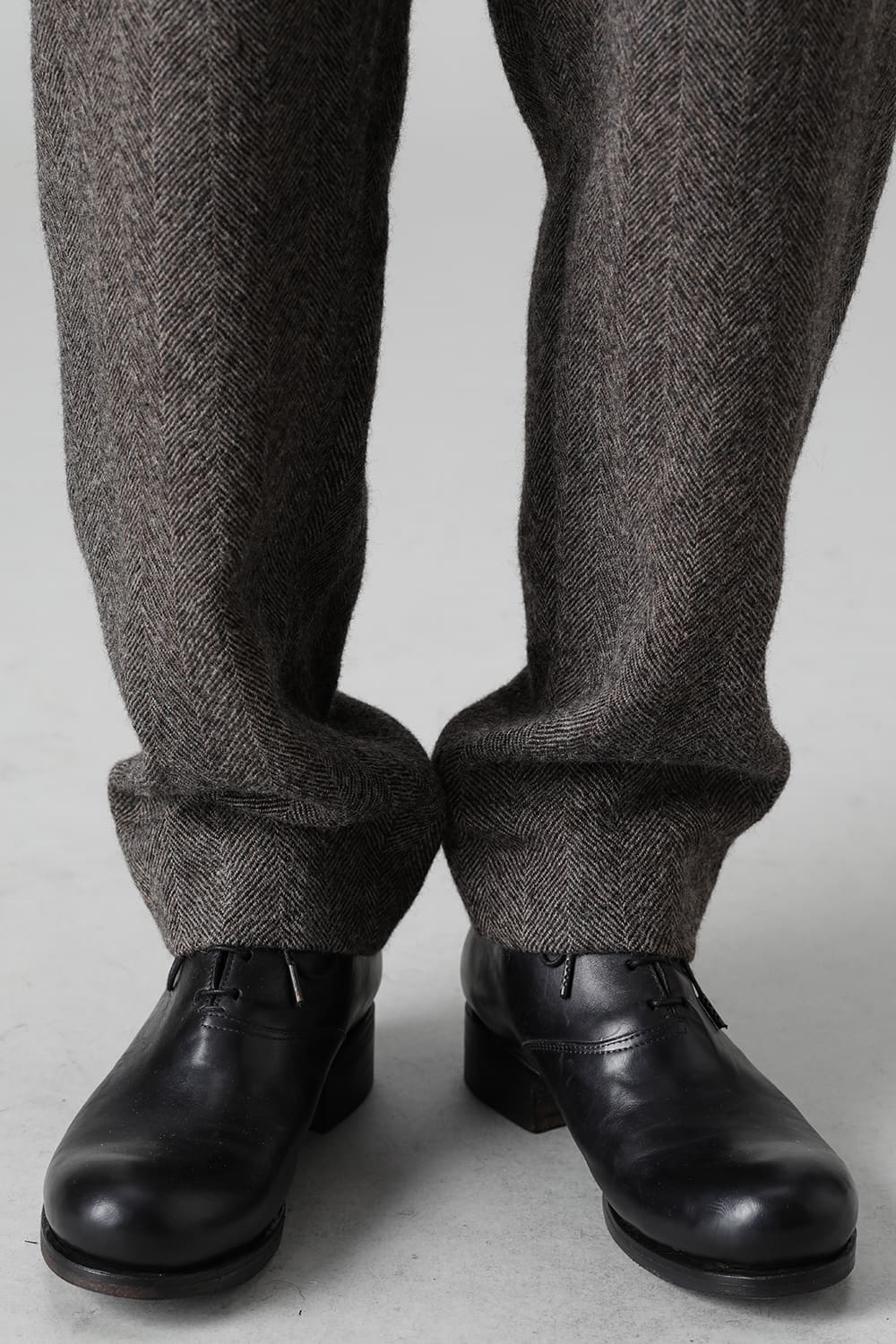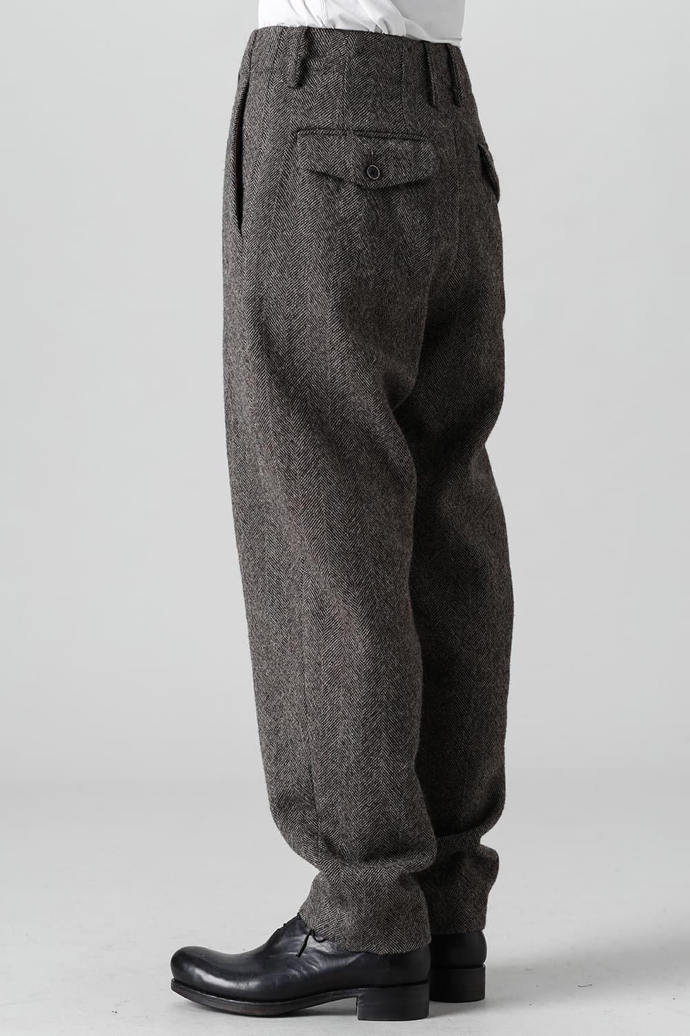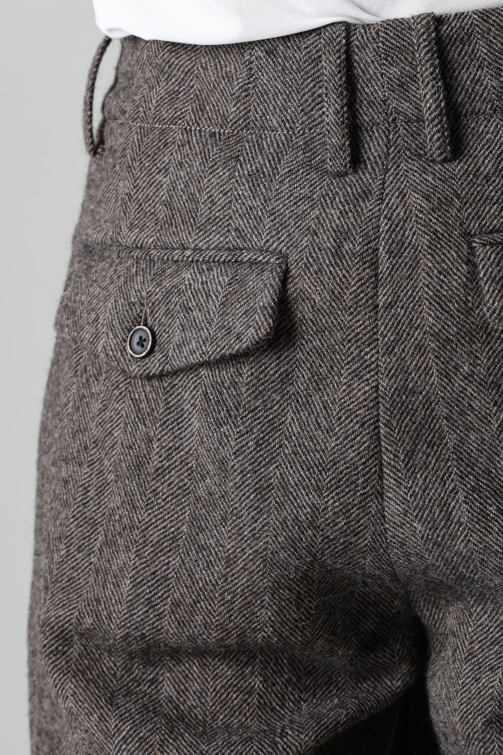 腿周りから裾先にかけて緩やかに細くなるテーパードシルエットのヘリンボーンツイードパンツ。 秋冬らしい表情を持った肉厚なツイードですが、着用感は非常に軽く快適な履きごこちです。