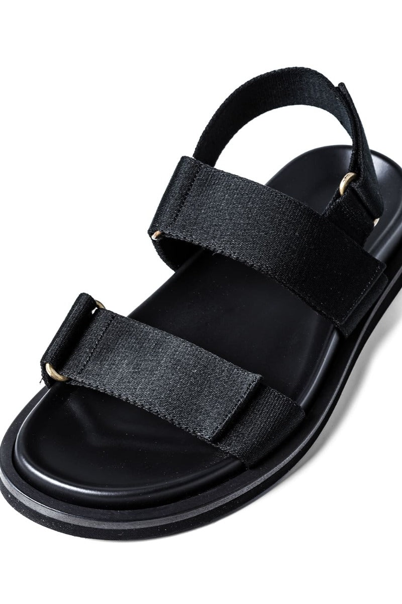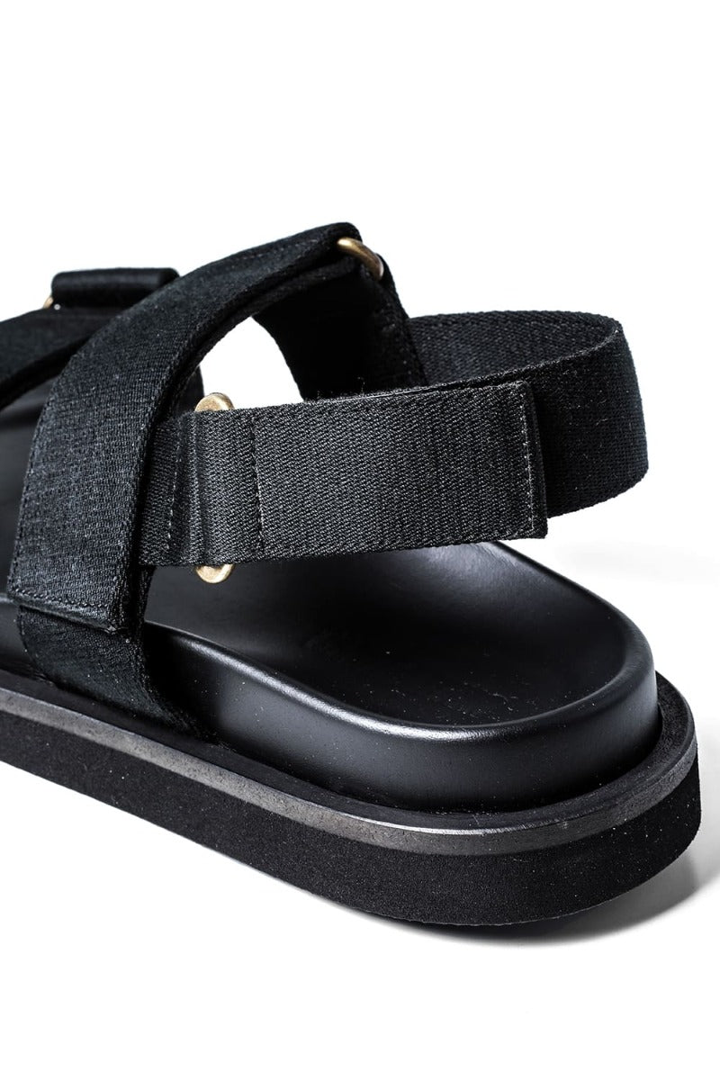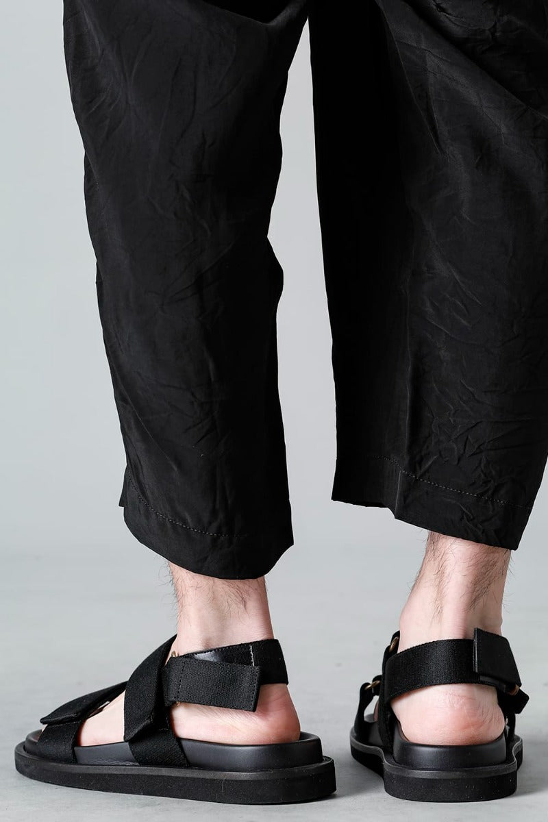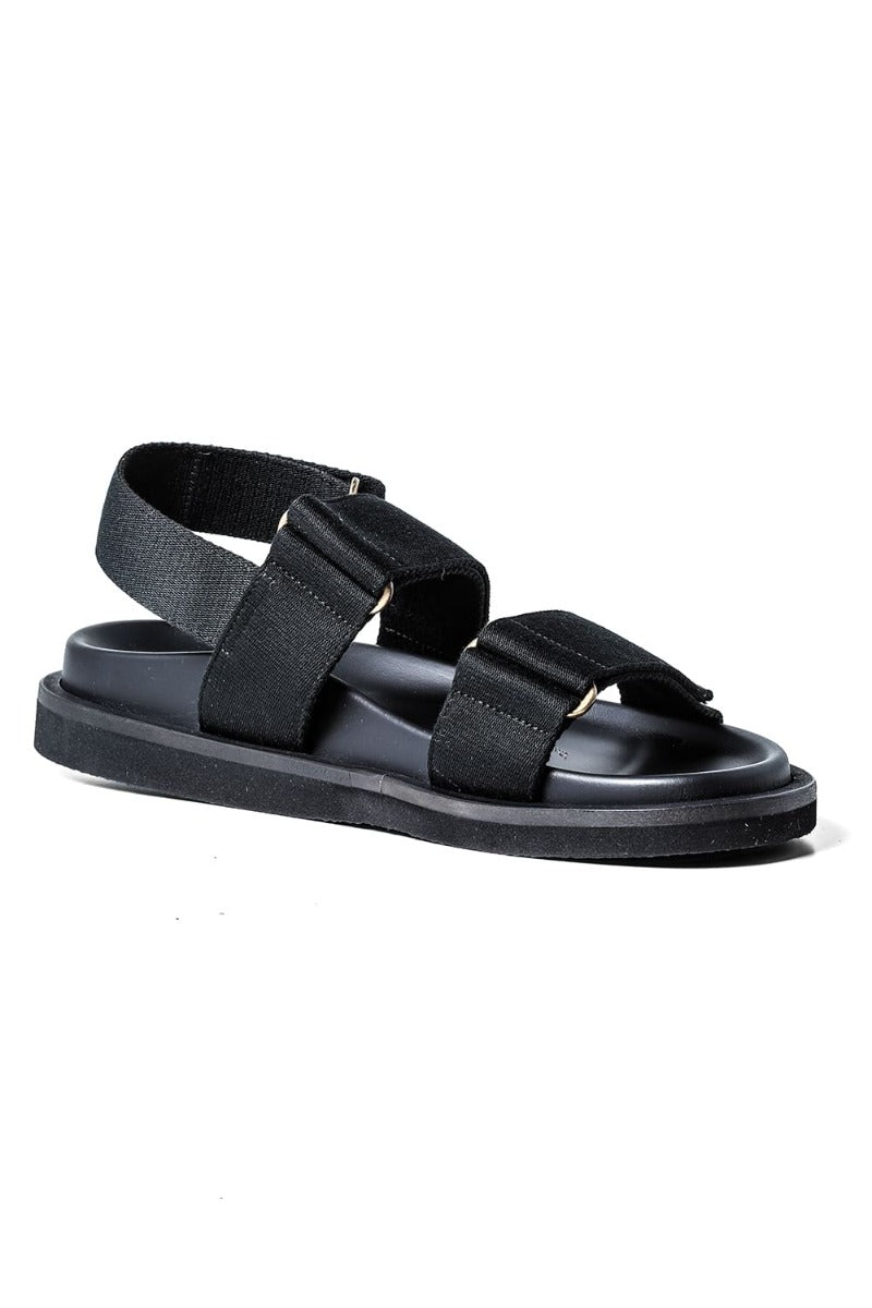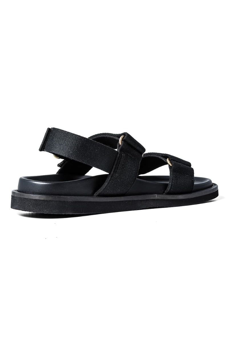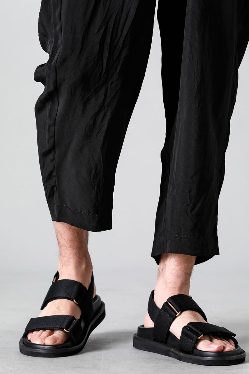 ポップな色使いやエレガントな素材を使た洋服が多いUMA WANGとしては珍しいカジュアルなストラップサンダル。クッション性のある中敷、ラバーソール、甲のストラップもマジックテープで止める仕様になっており、全体的に軽量な作りになっています。ブラック、アーミーグリーン、タンの3色展開。