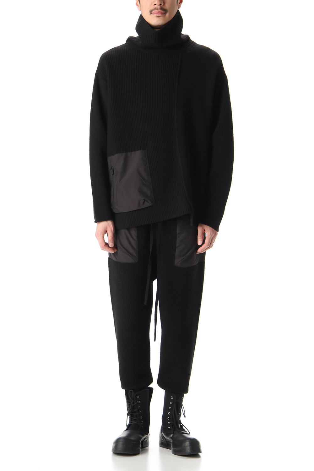 ・5ゲージと7ゲージの天竺や畦編みなど複数組織のコンビネーション