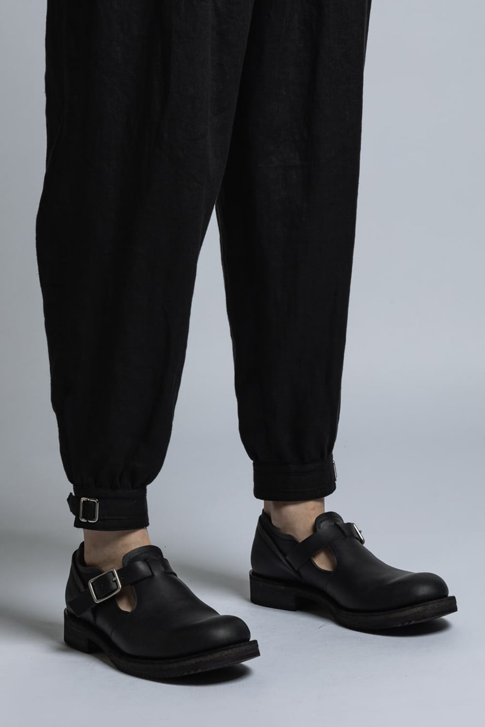 ・フェイクバックルの付いたベルクロ明きの裾カフス。