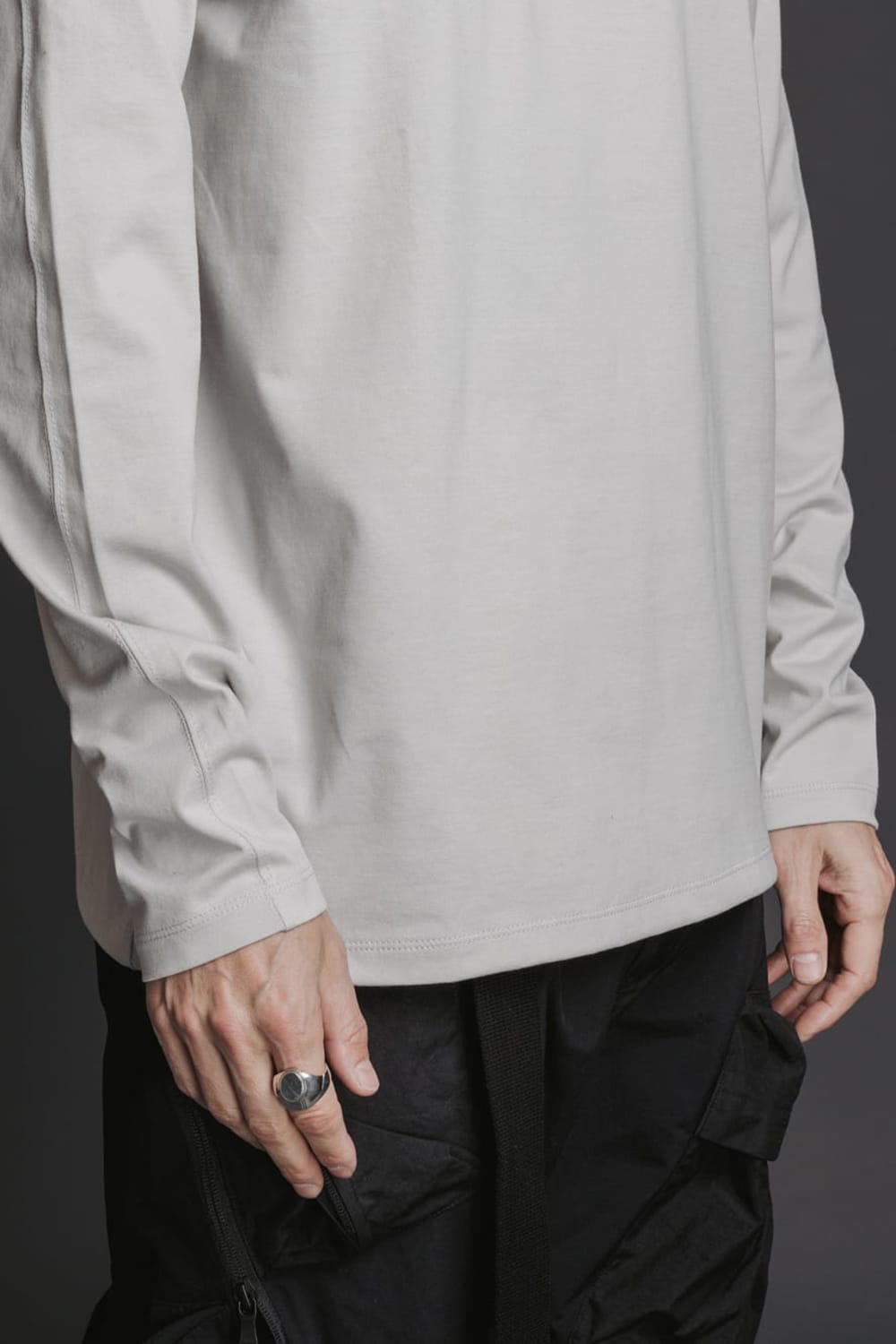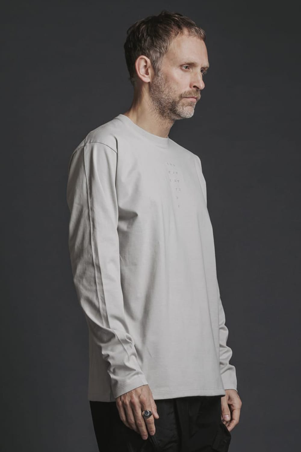 刺繍天竺長袖Tシャツ Lグレー