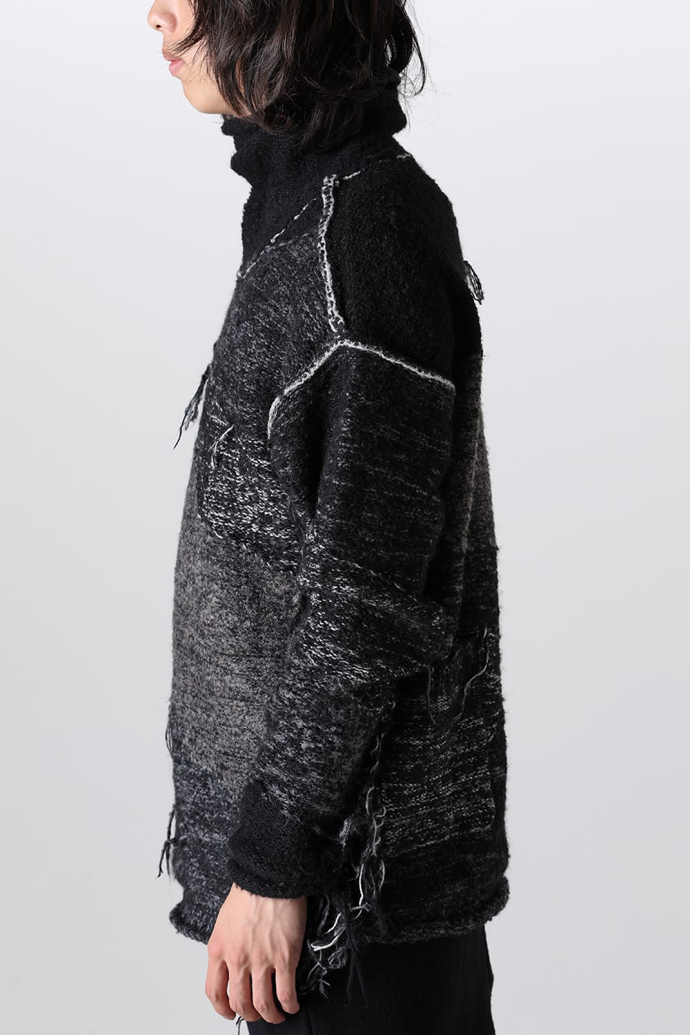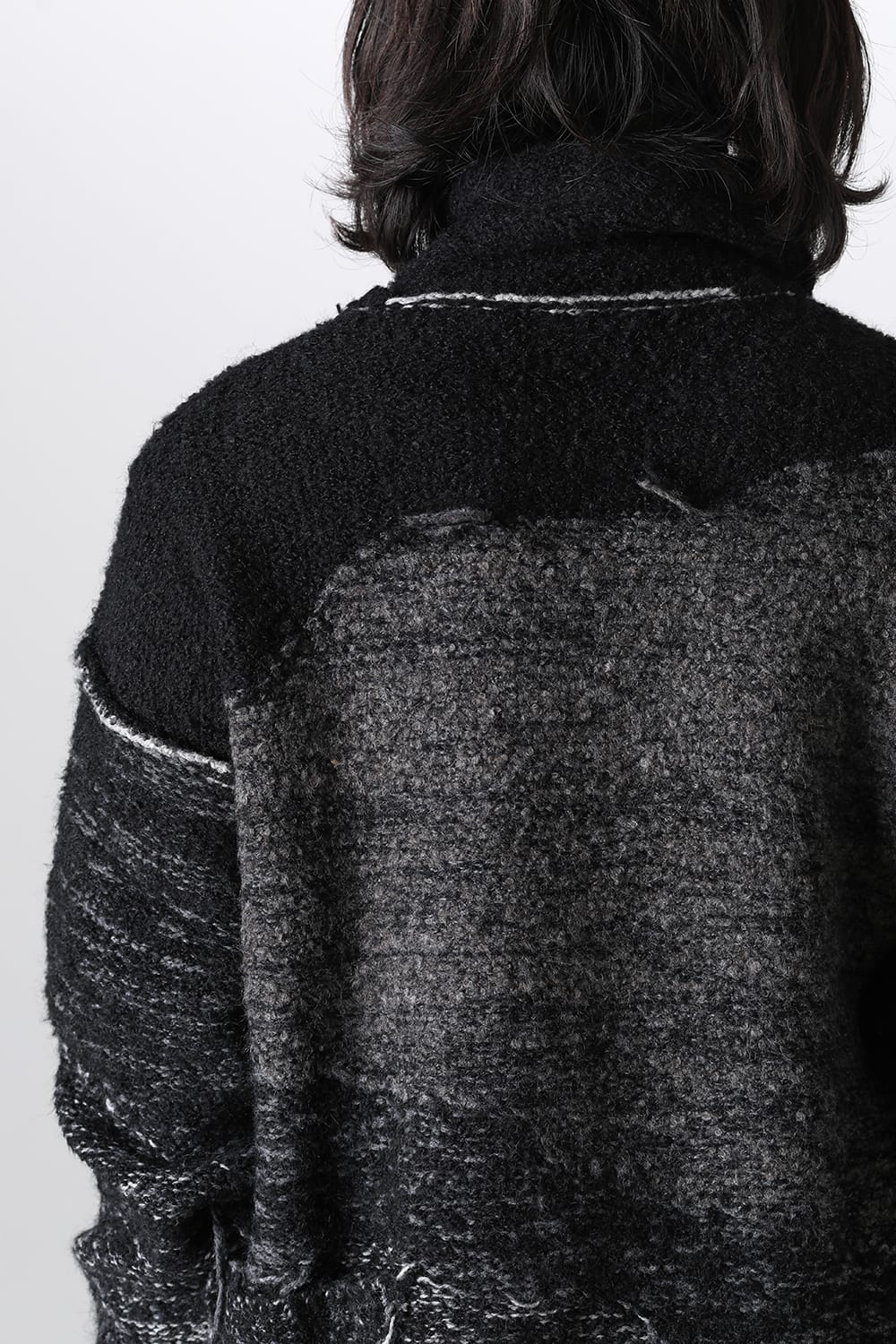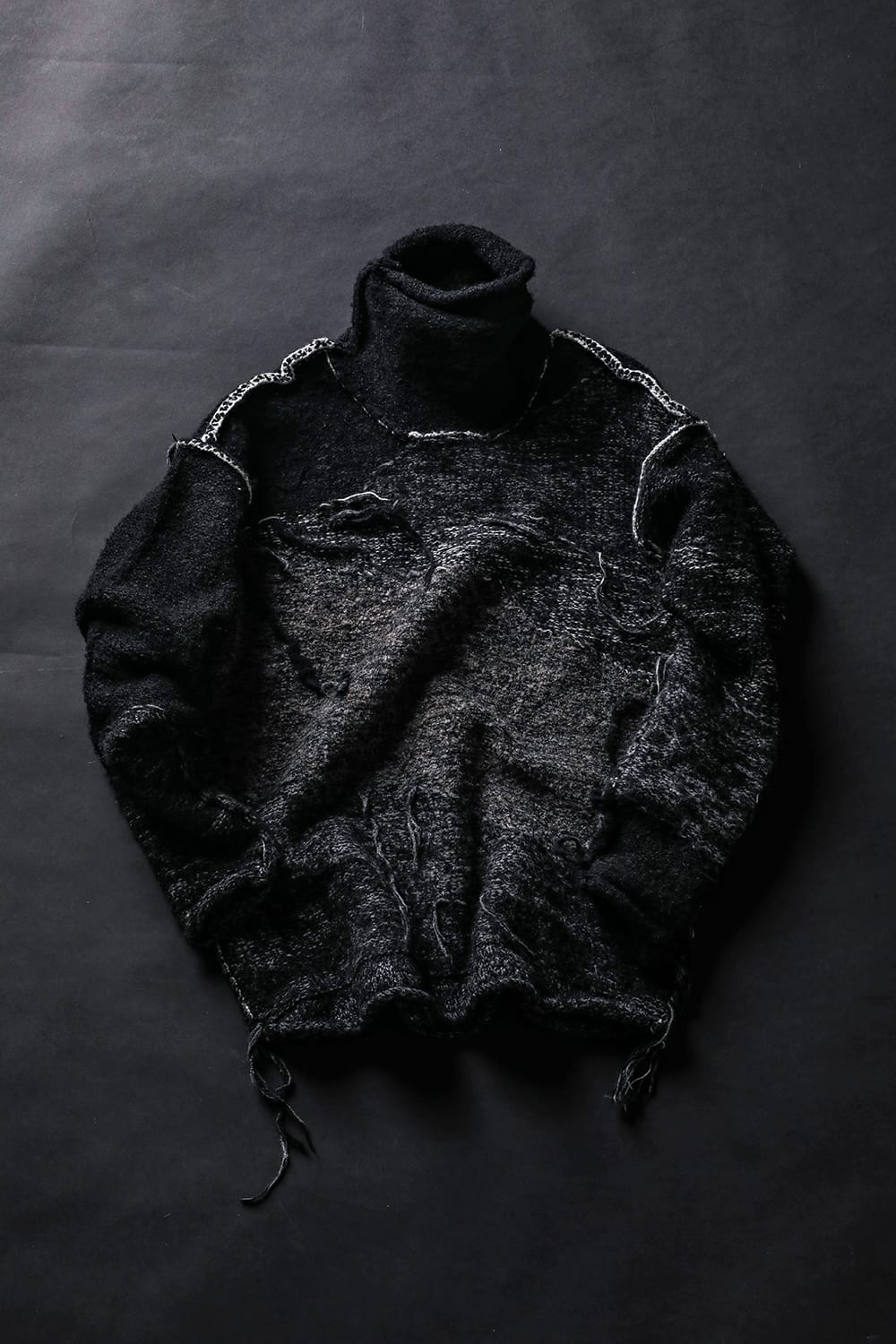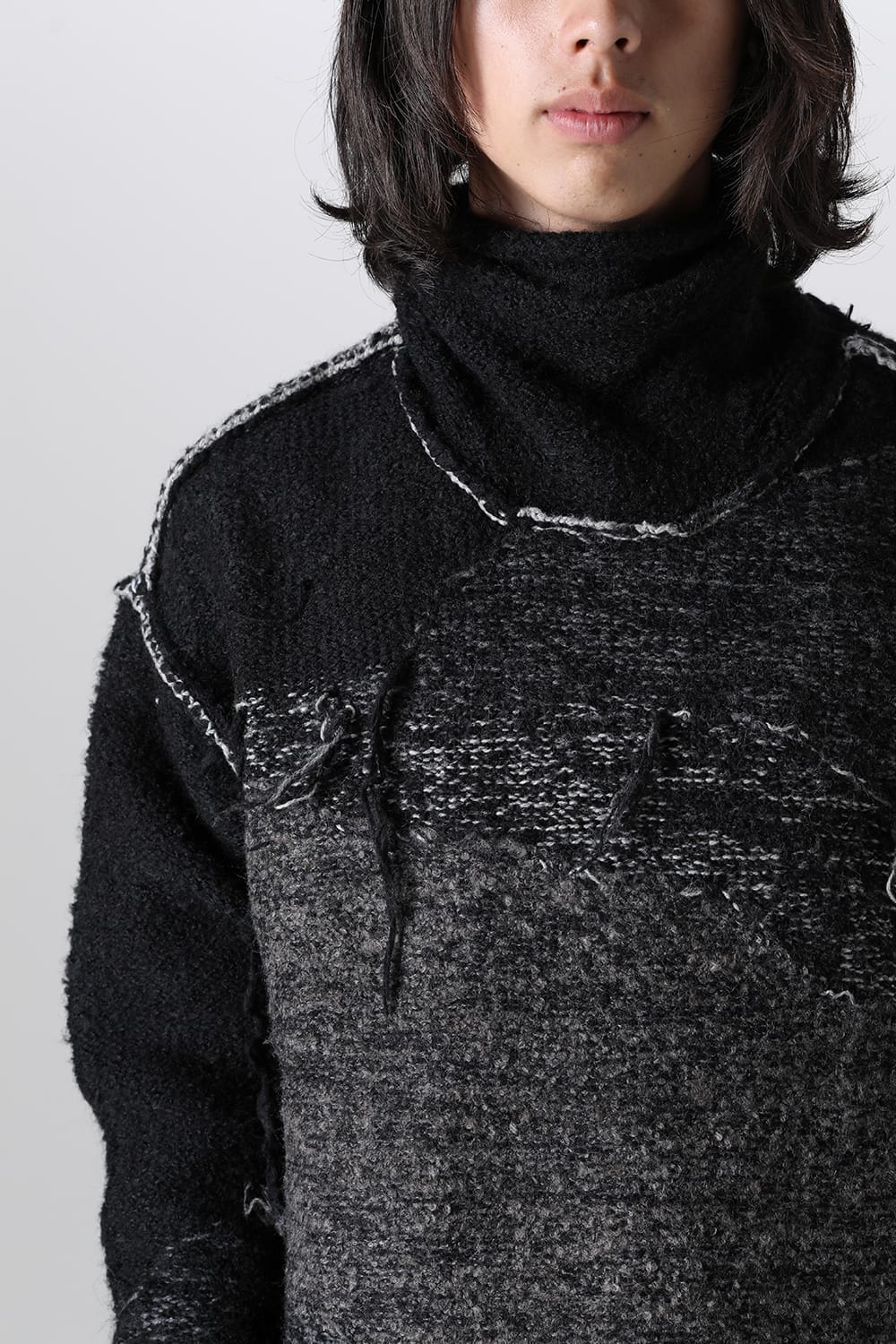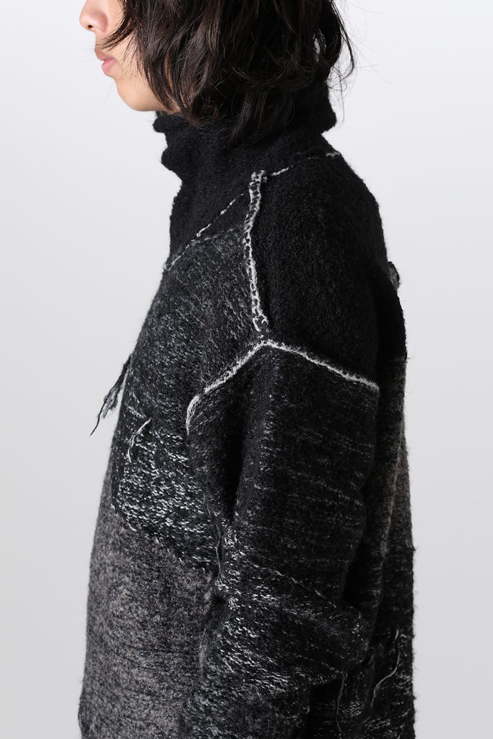 複数の異素材、異形状の糸を組み合わせて編んだタートルネック P/O。
