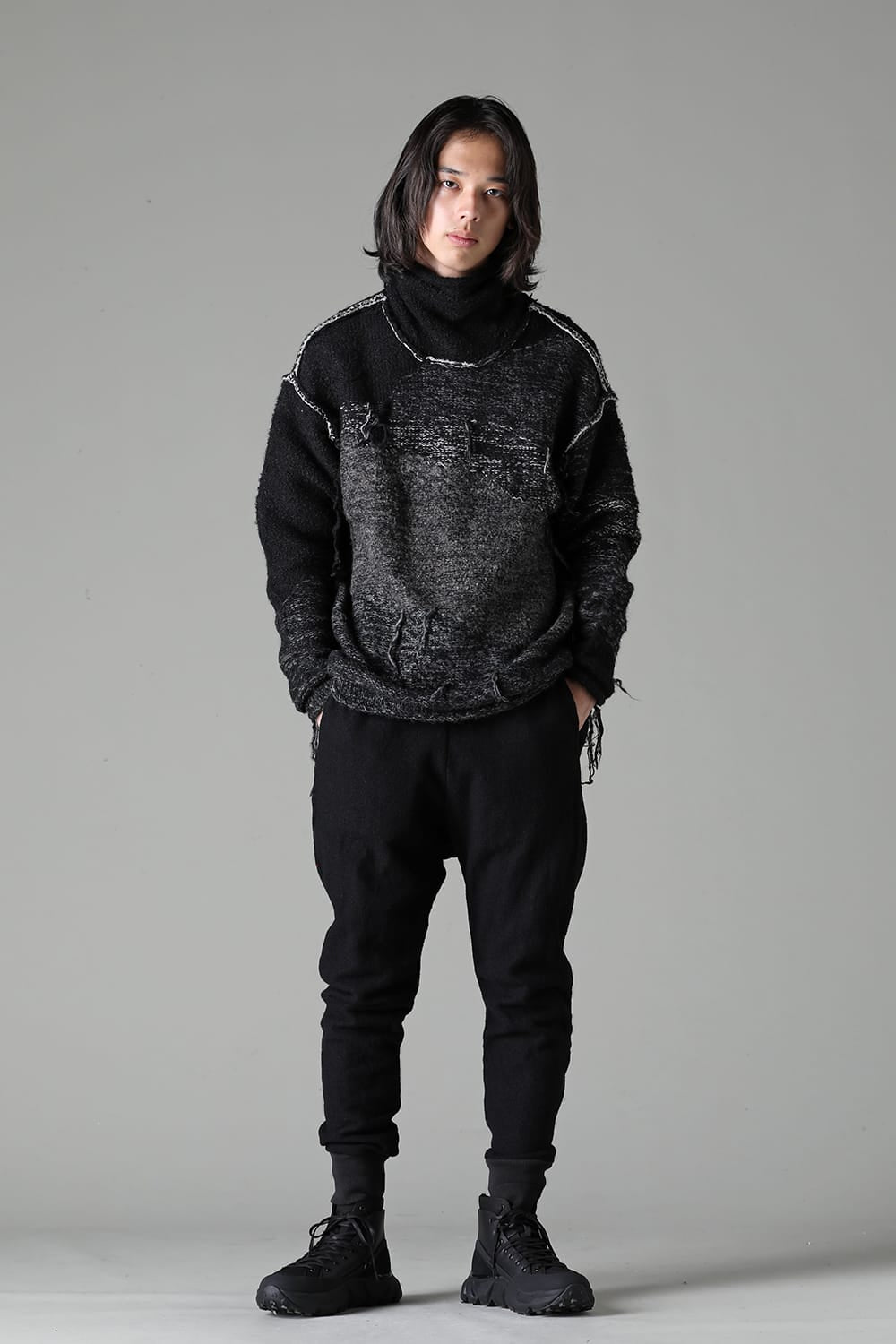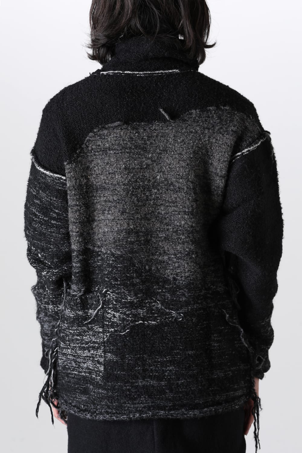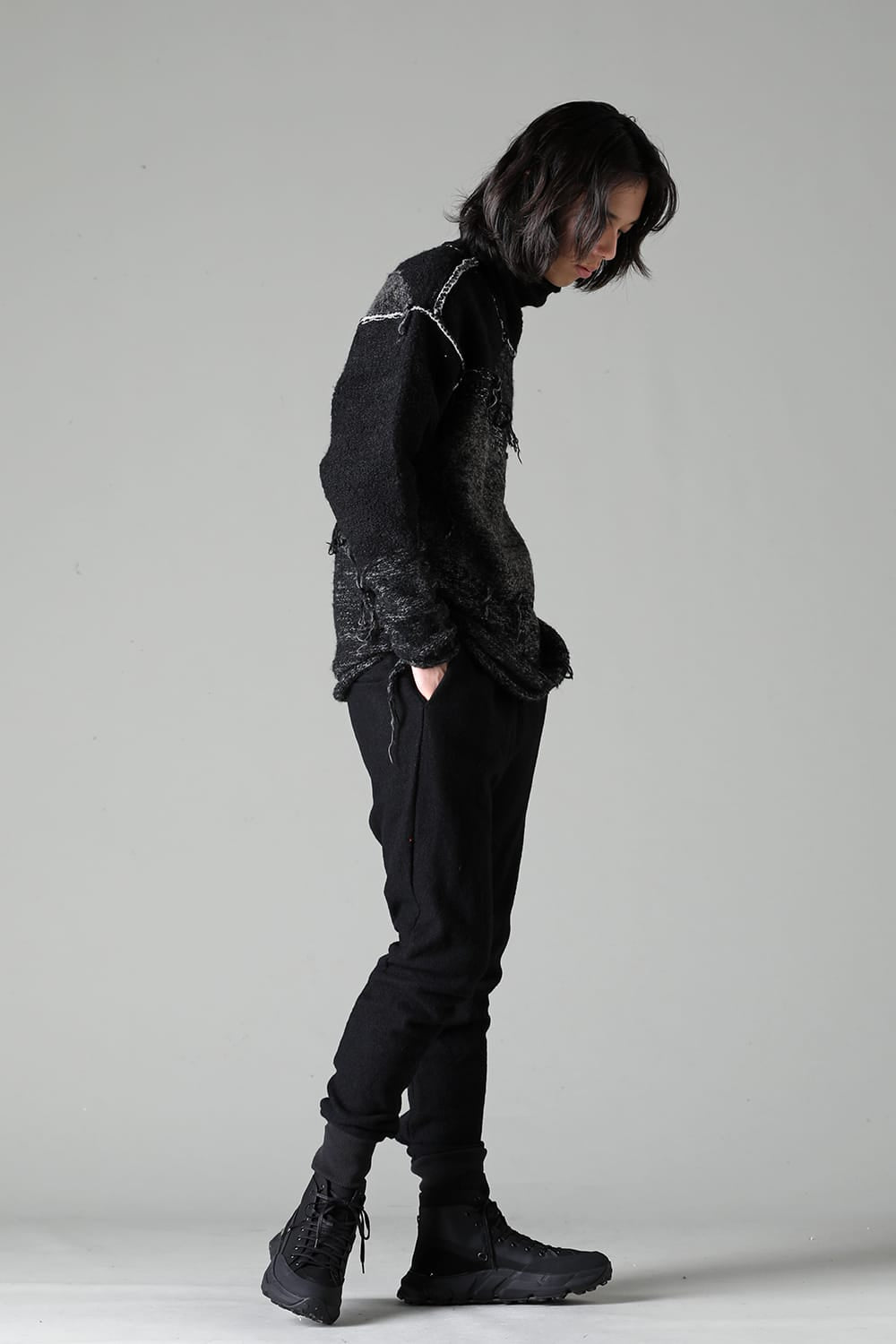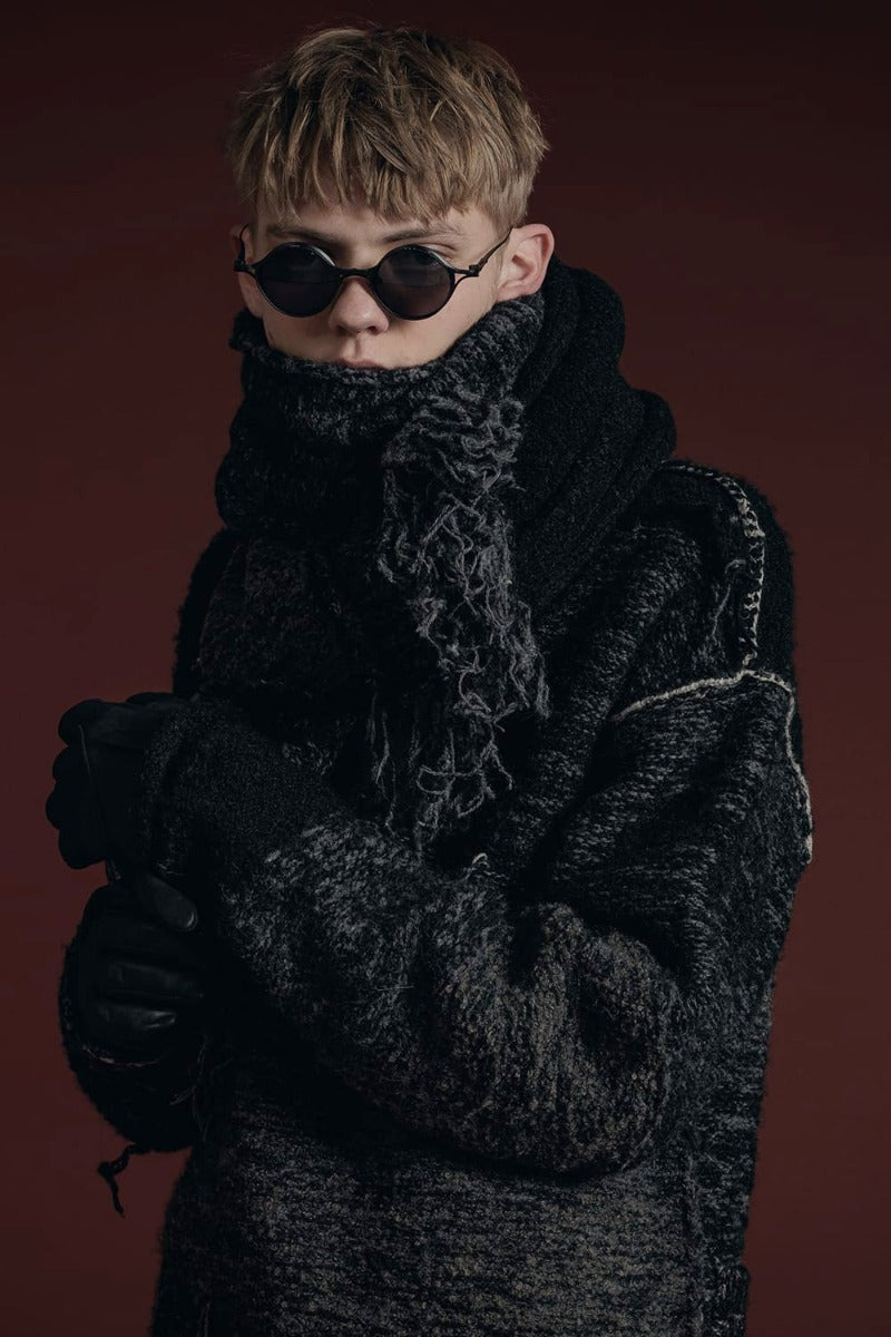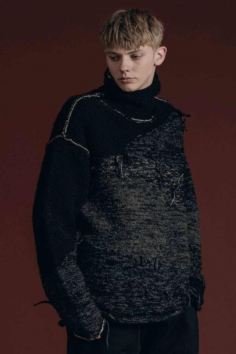 複数の異素材、異形状の糸を組み合わせて編んだタートルネック P/O。