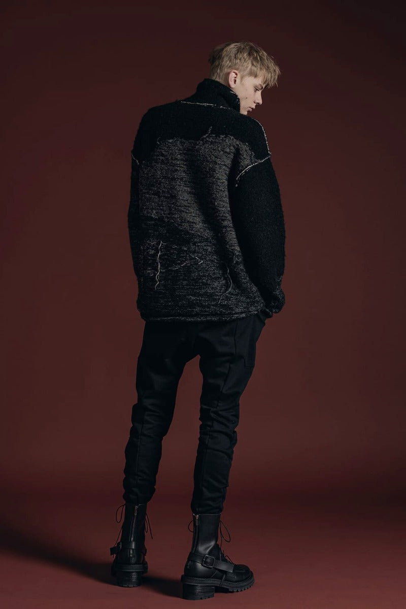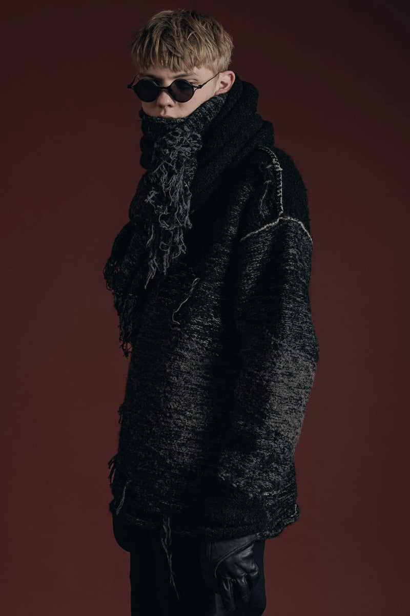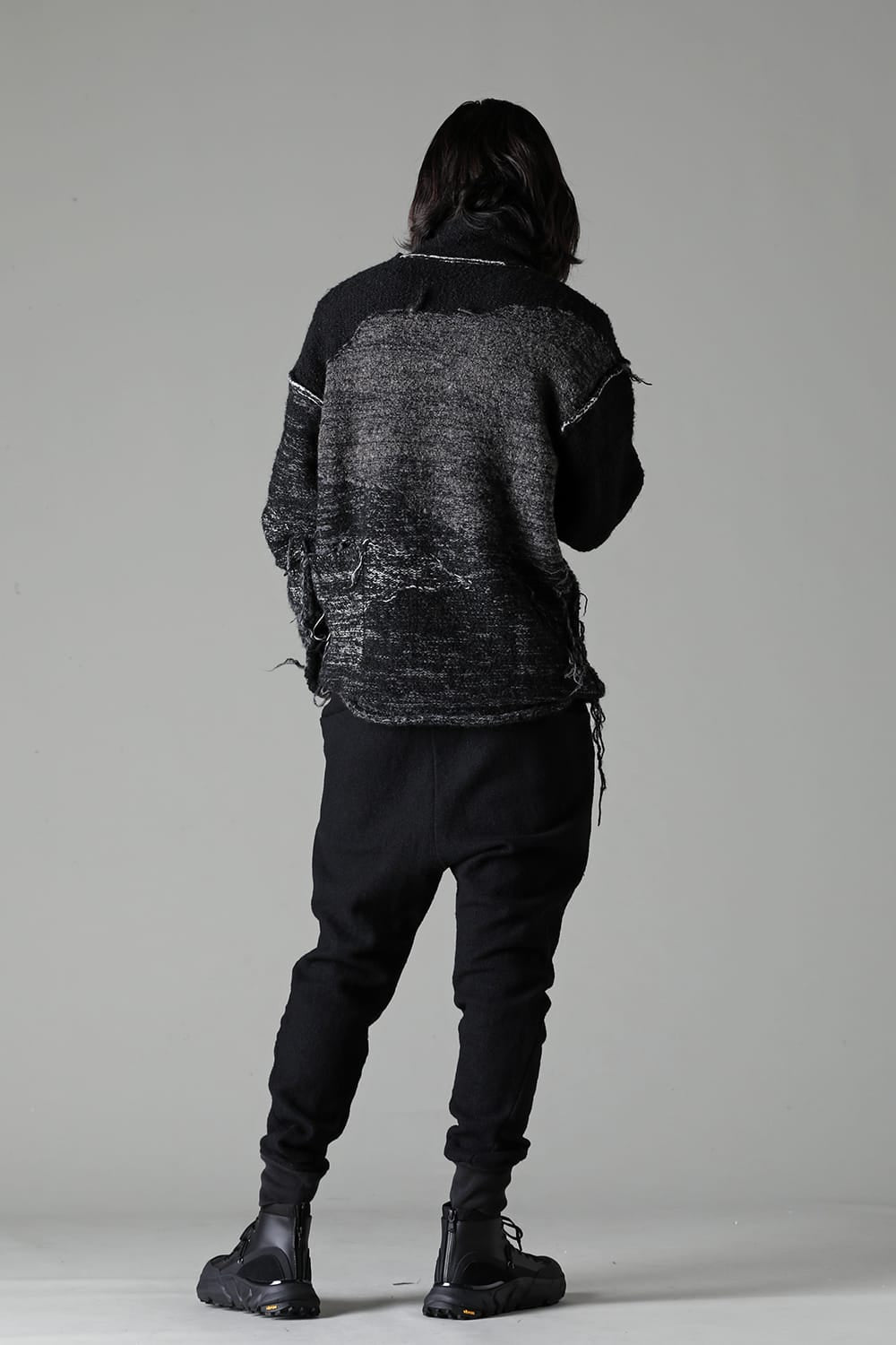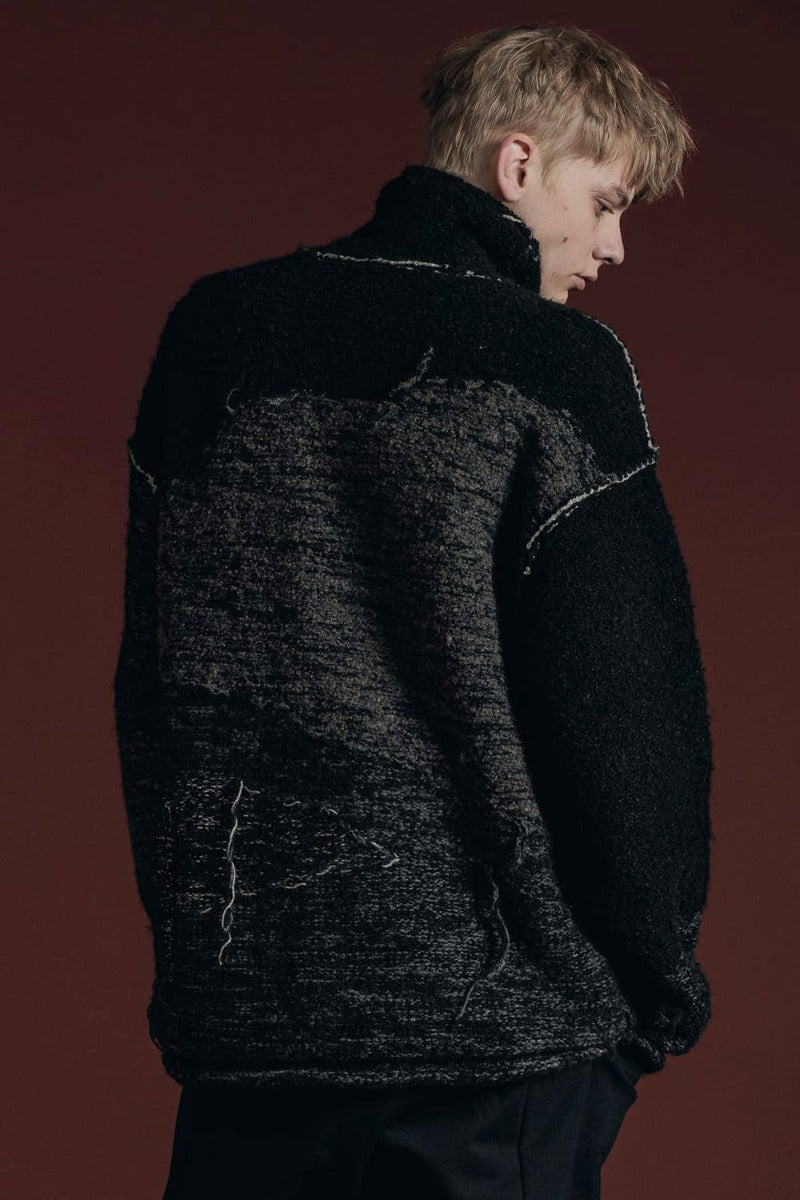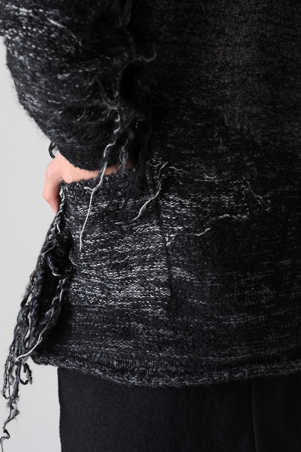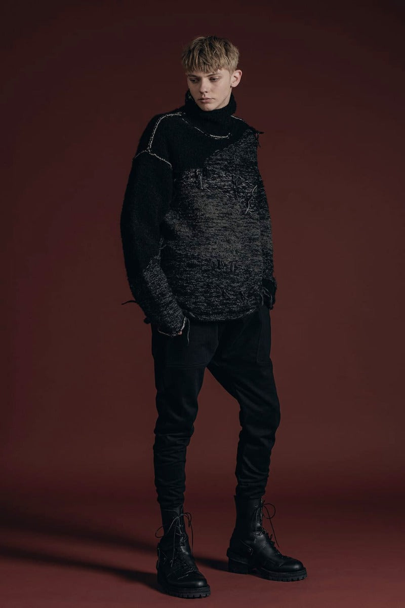 複数の異素材、異形状の糸を組み合わせて編んだタートルネック P/O。