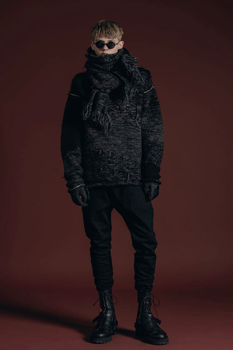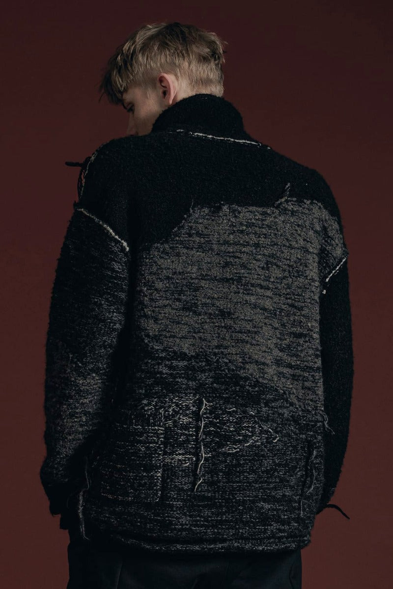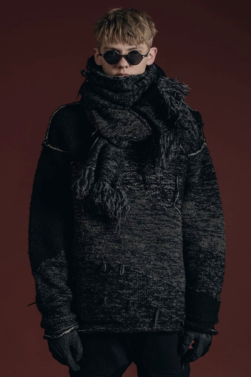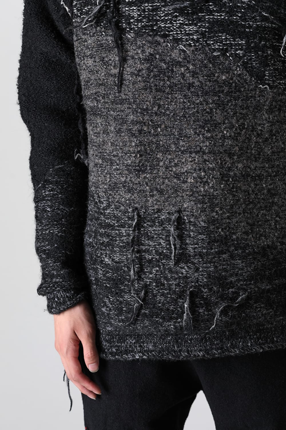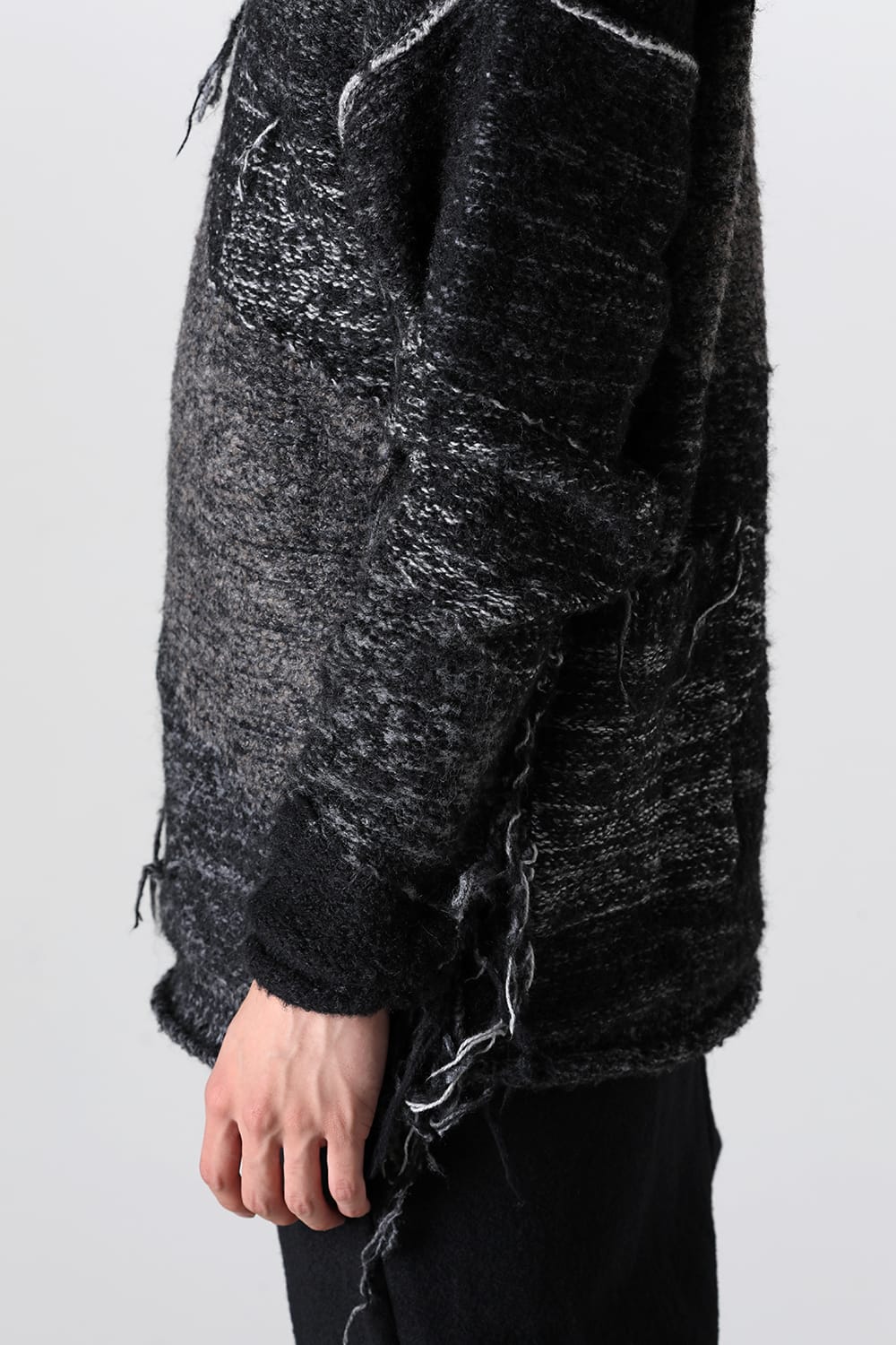 複数の異素材、異形状の糸を組み合わせて編んだタートルネック P/O。