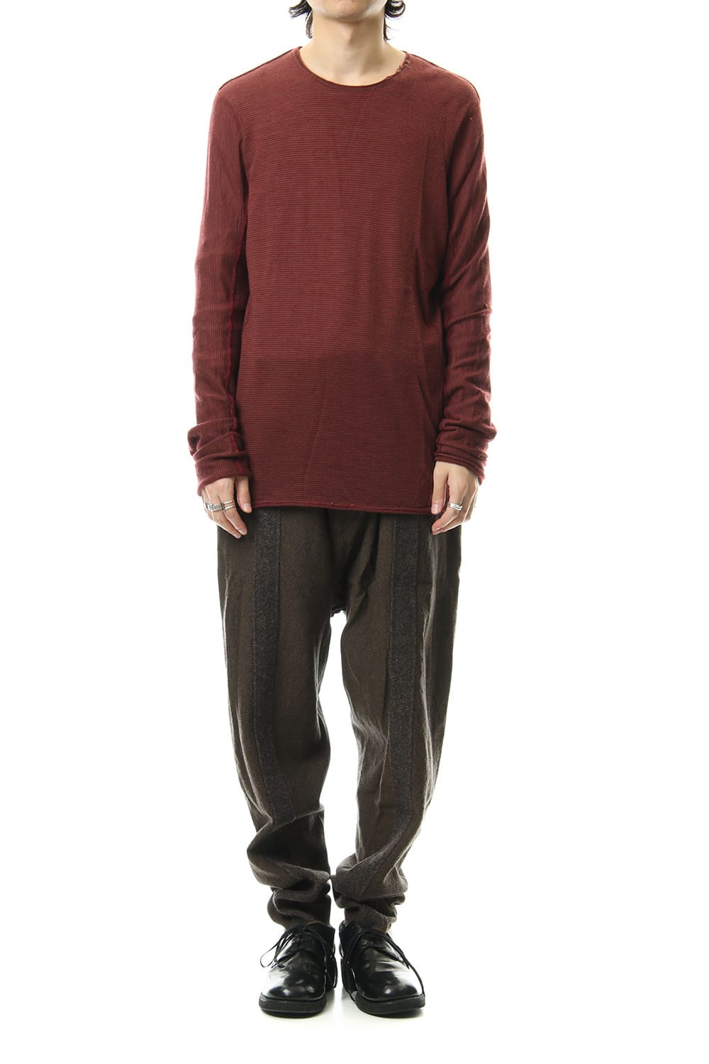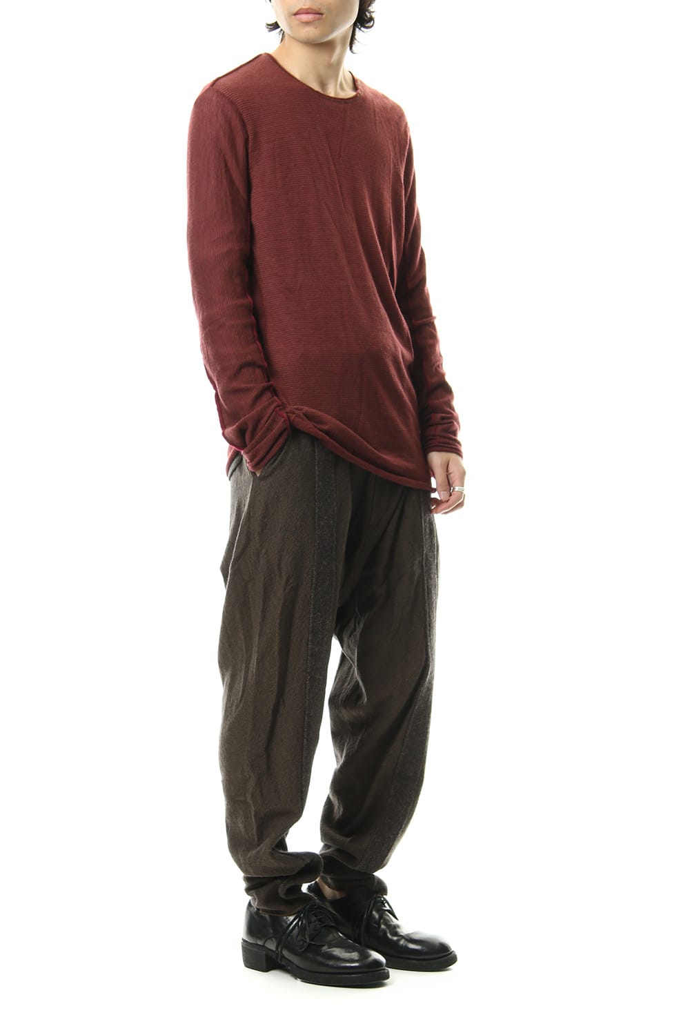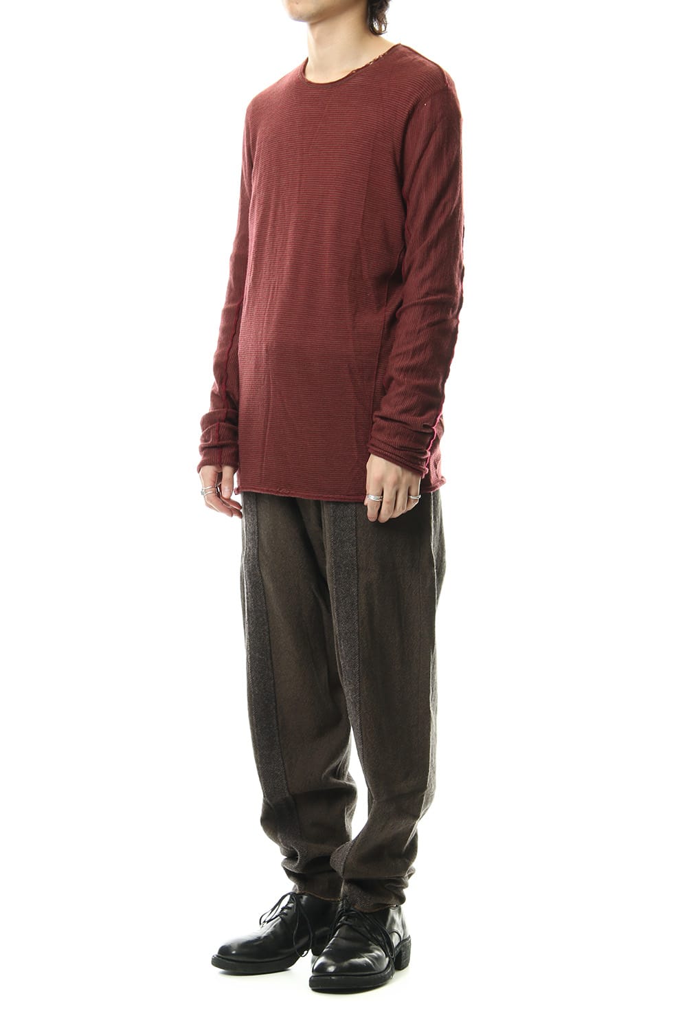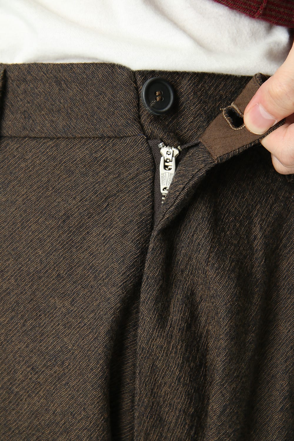 The fabric is woven with two different colours to create a fine pattern and a unique deep expression along with the earthy colour.