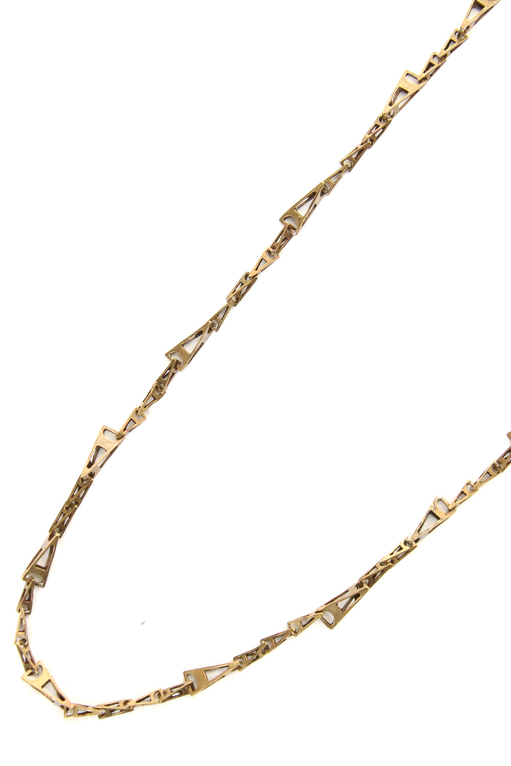 Collaboration with RIGARDS chain, you can attach this chain to the eyewear frame, it has custom parts that can lower the eyewear from the neck. The texture is unique to brass and the original chain has triangle loops that has a unique look and atmosphere.
