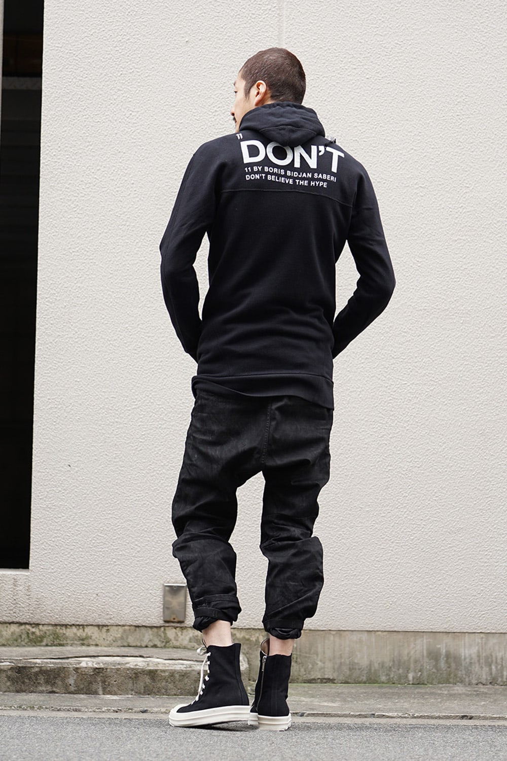 Pullover hoodie with the ‘Don’t’ logo on the back.