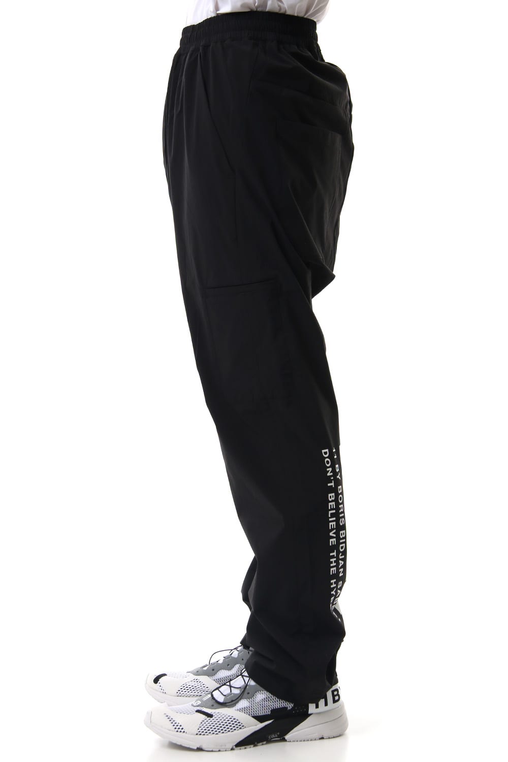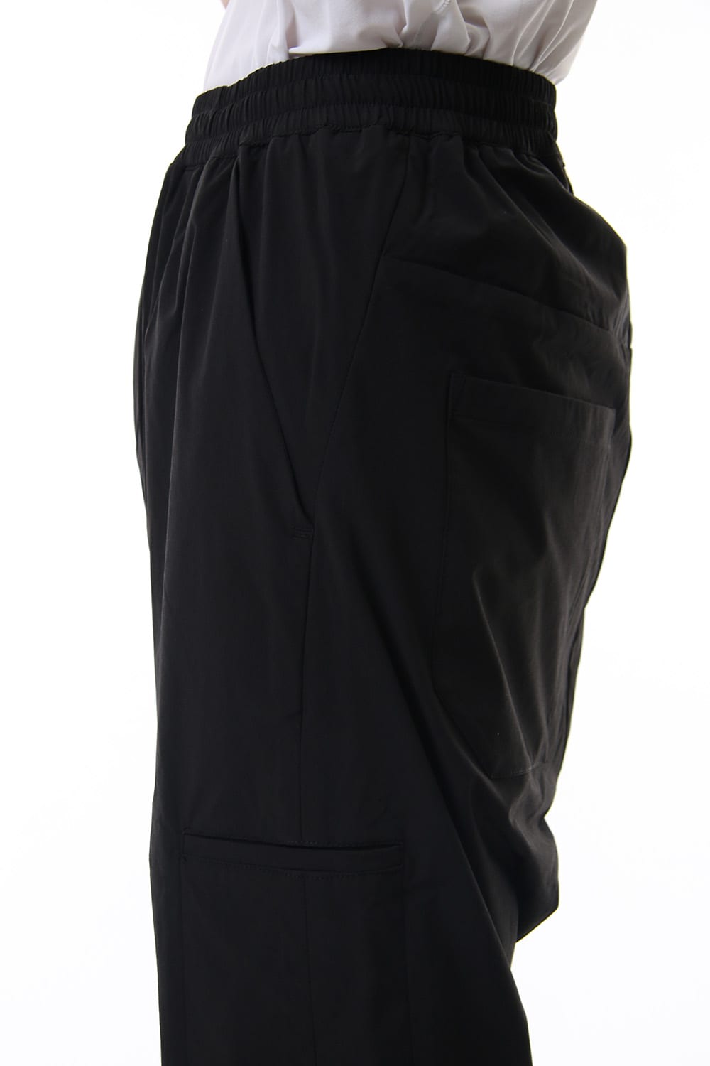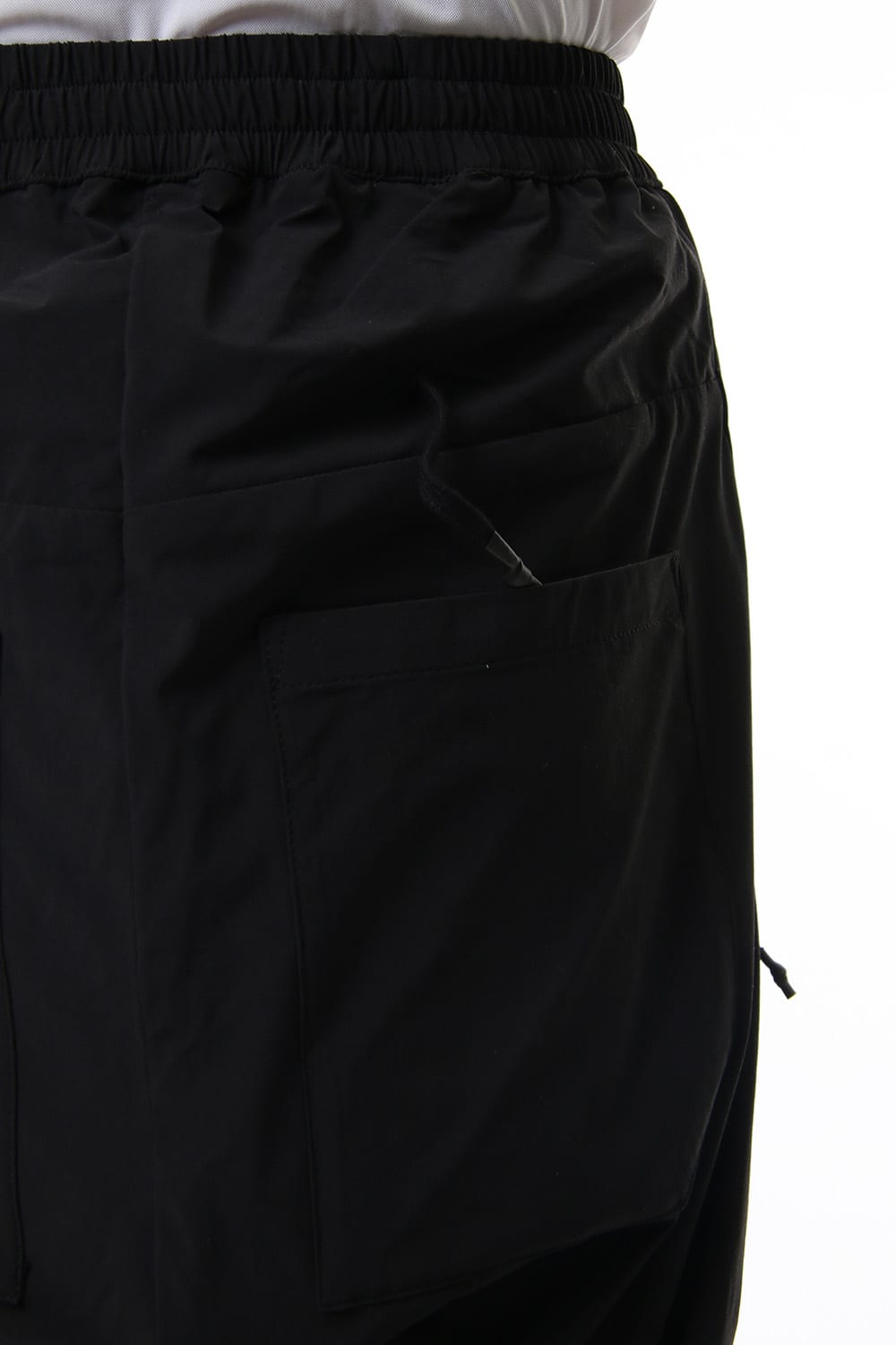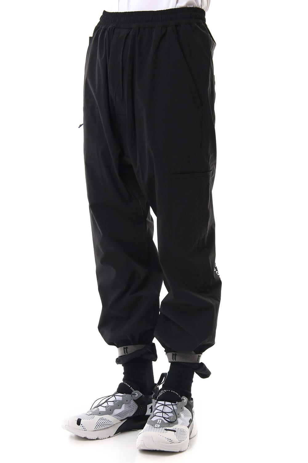 Easy pants with a slightly wide silhouette using sporty nylon material. Rubber bands are arranged at the bottom of the hem, it is possible to wear the band fastened on the hem and rolled up.