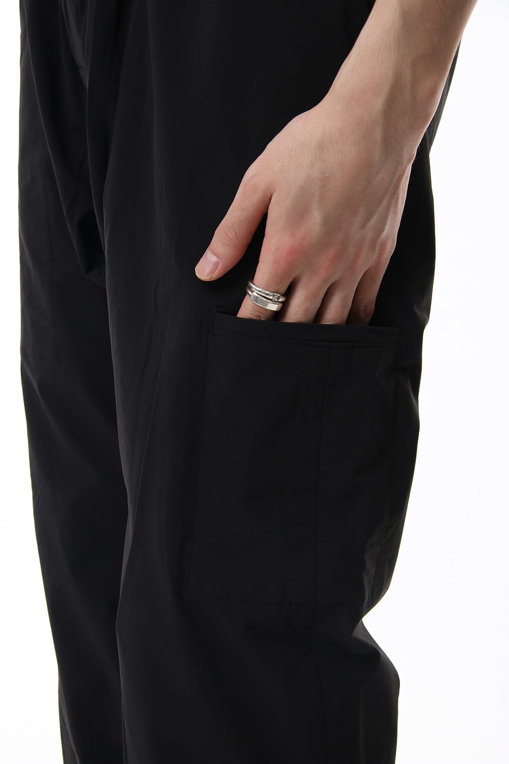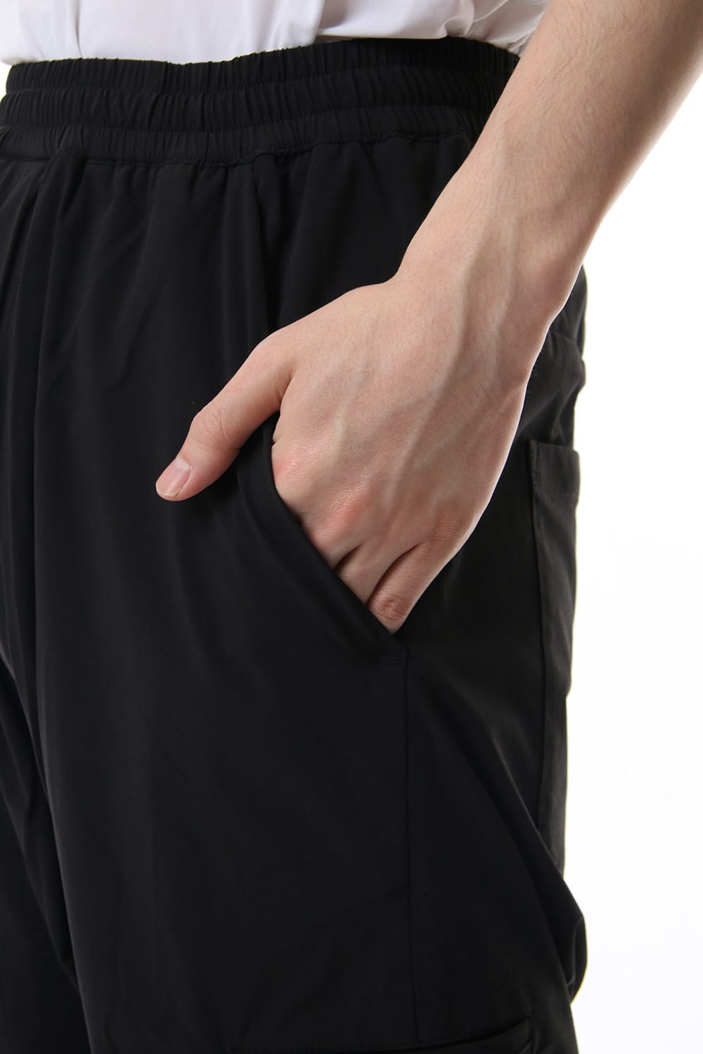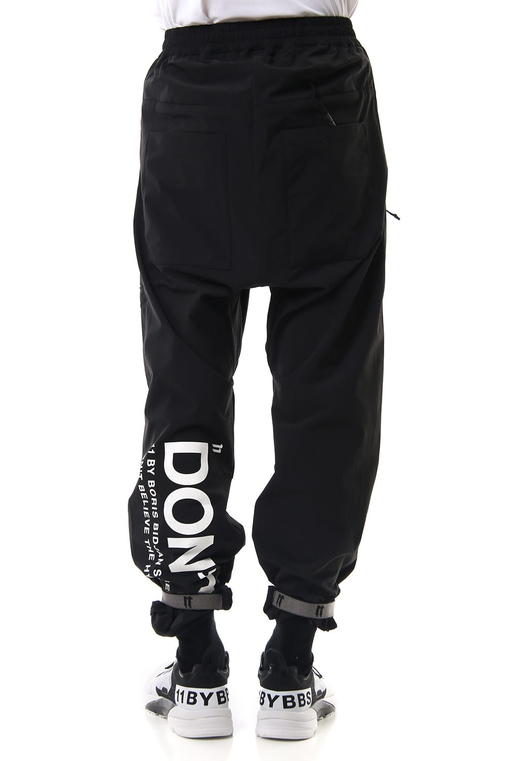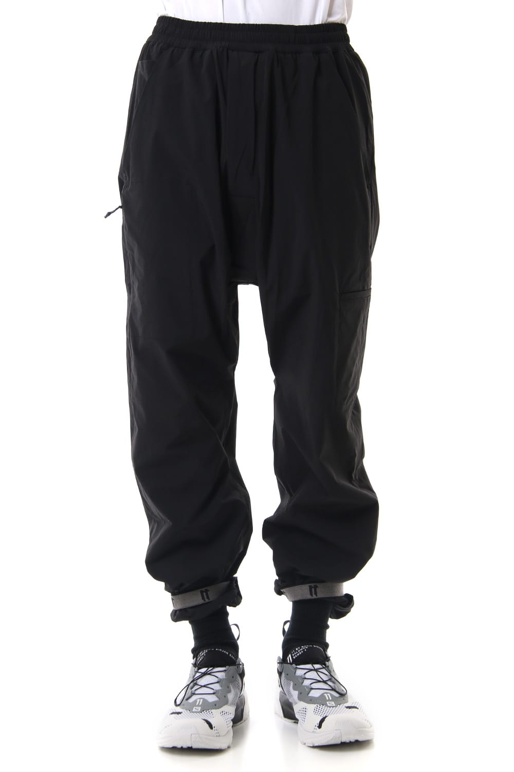 Easy pants with a slightly wide silhouette using sporty nylon material. Rubber bands are arranged at the bottom of the hem, it is possible to wear the band fastened on the hem and rolled up.