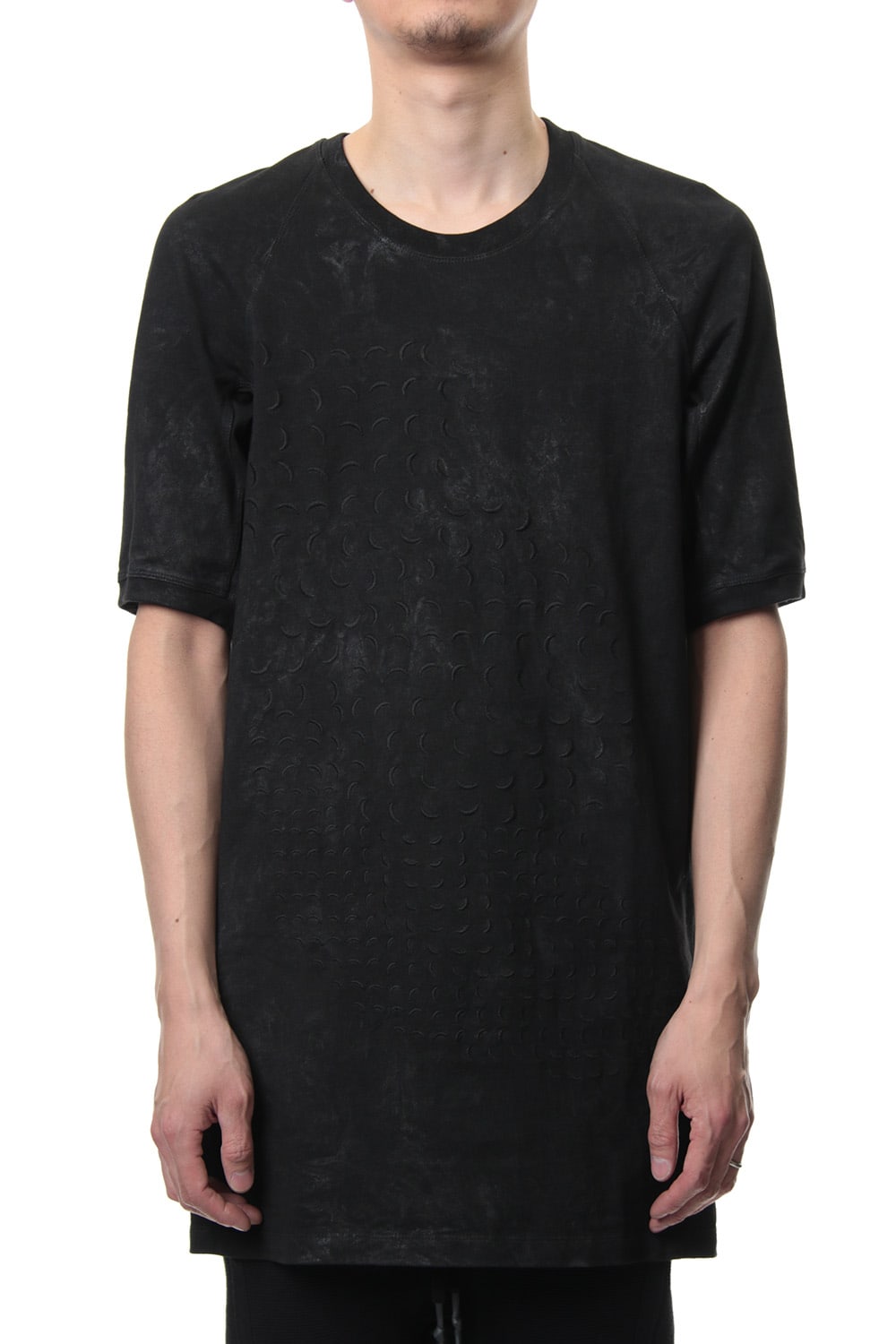Embroidered patterns of crescents of thick cotton fabrics in various sizes, was further coated with a coating, finished with a dirty atmosphere.