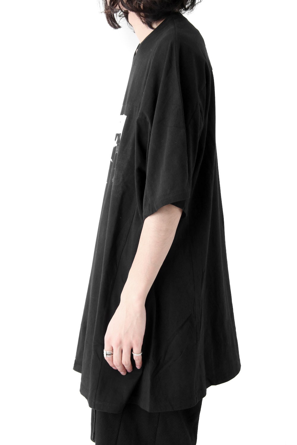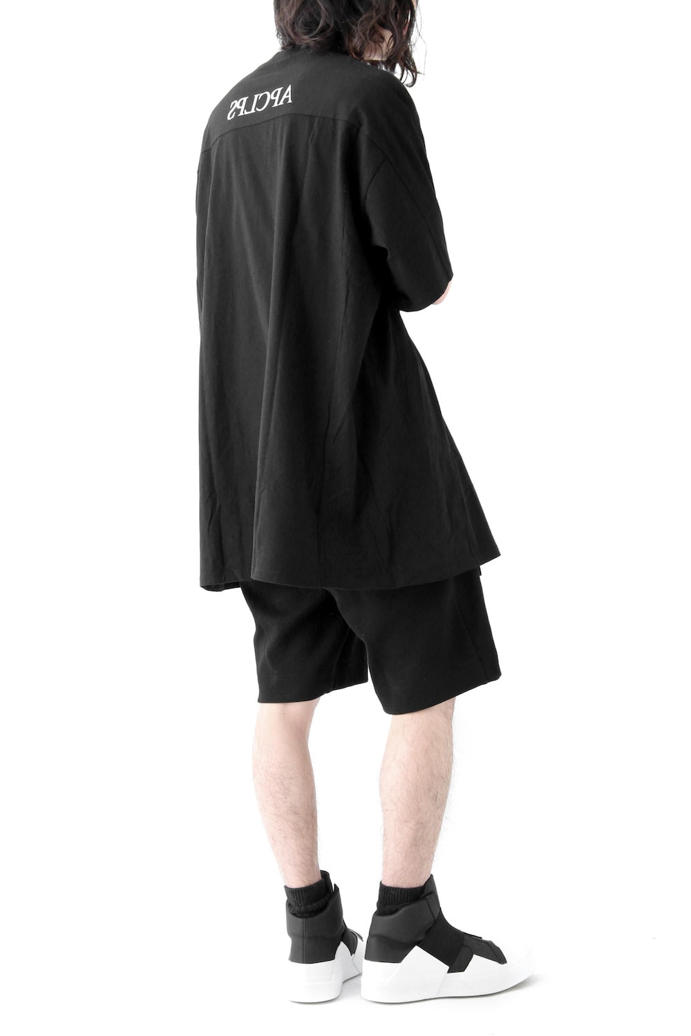 Short sleeve cut sew made with soft and comfortable cotton jersey material. Graphic print on the front and this season's theme [APCLPS] on the back. In addition, it has been cut back with the same material from the bust. The unique pattern gives a very JULIUS sense of style for this season.