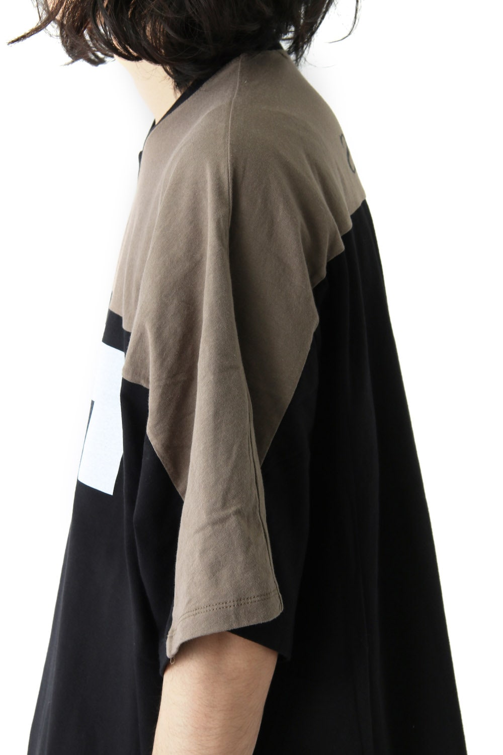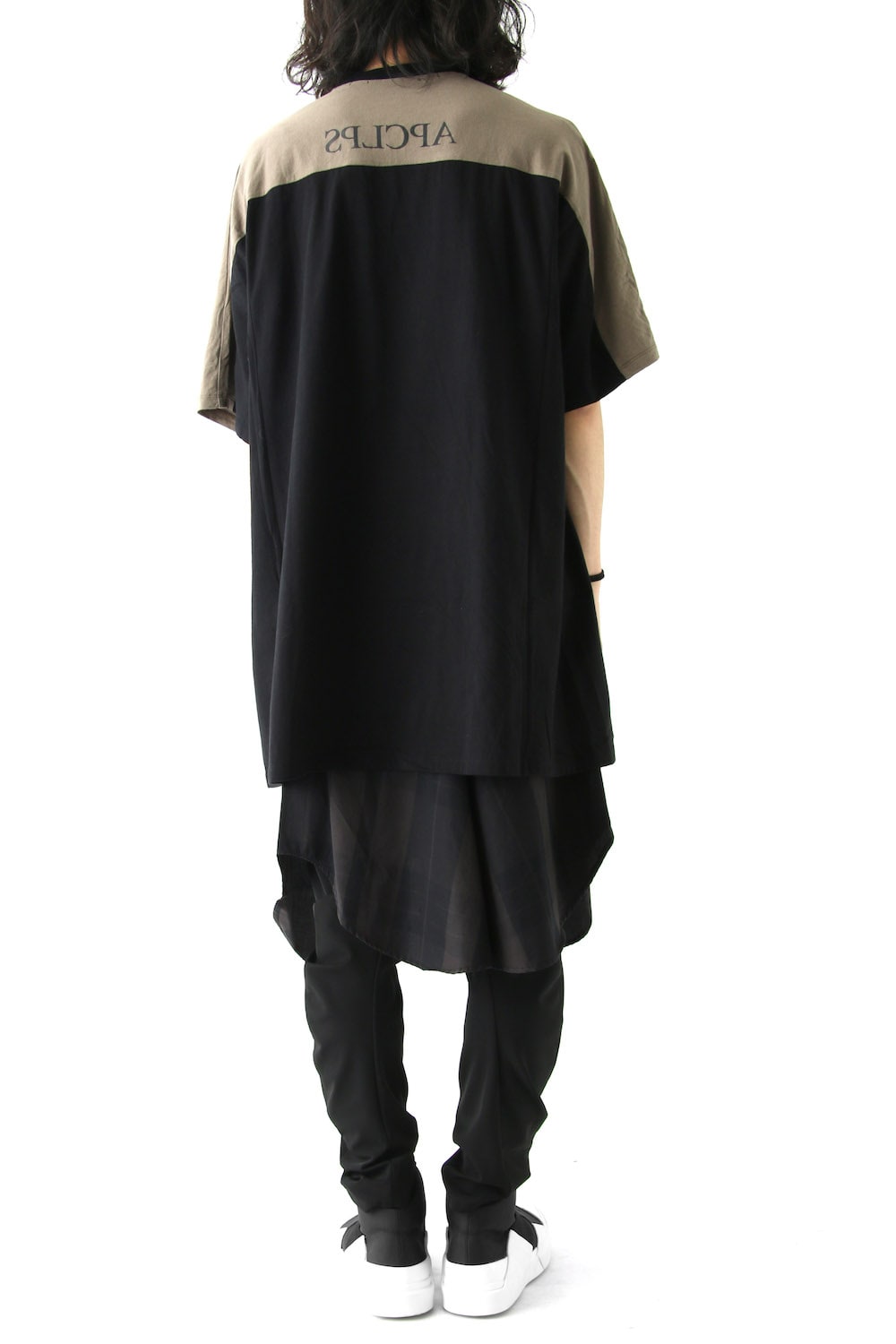 Graphic print on the front and this season's theme [APCLPS] on the back. In addition, it has been cut back with the same material from the bust. The unique pattern gives a very JULIUS sense of style for this season.