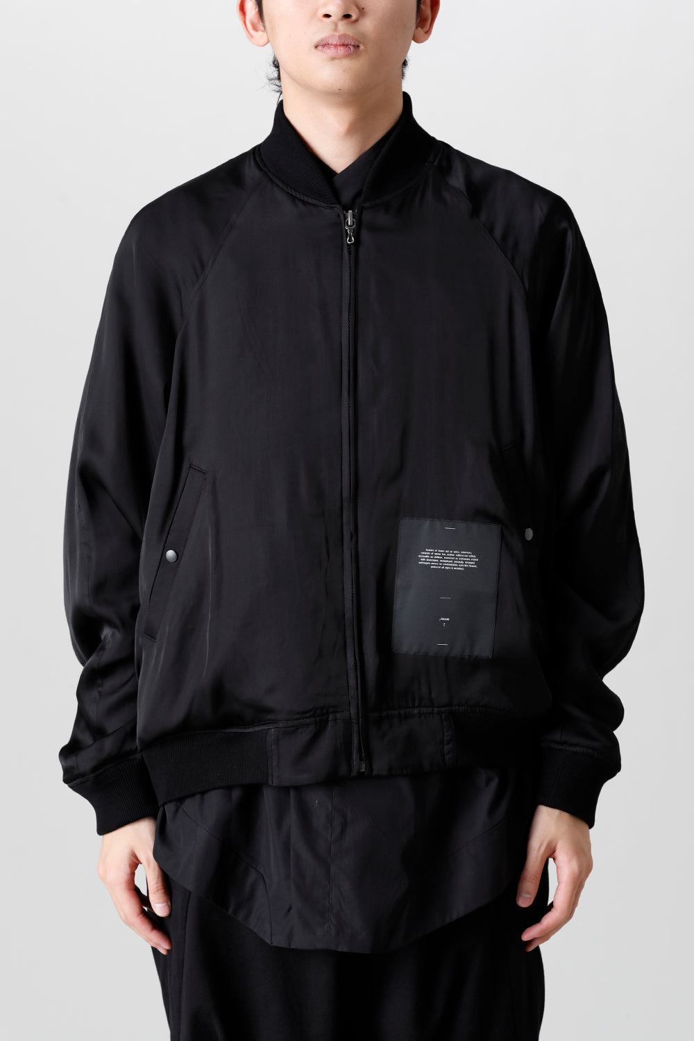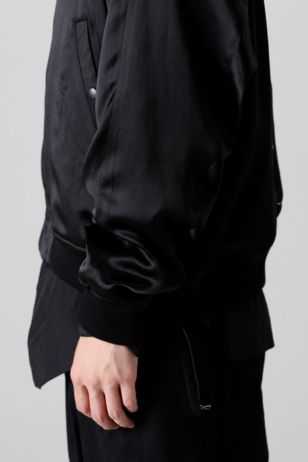 Zip blouson made of satin fabric with an elegant texture and sheen.