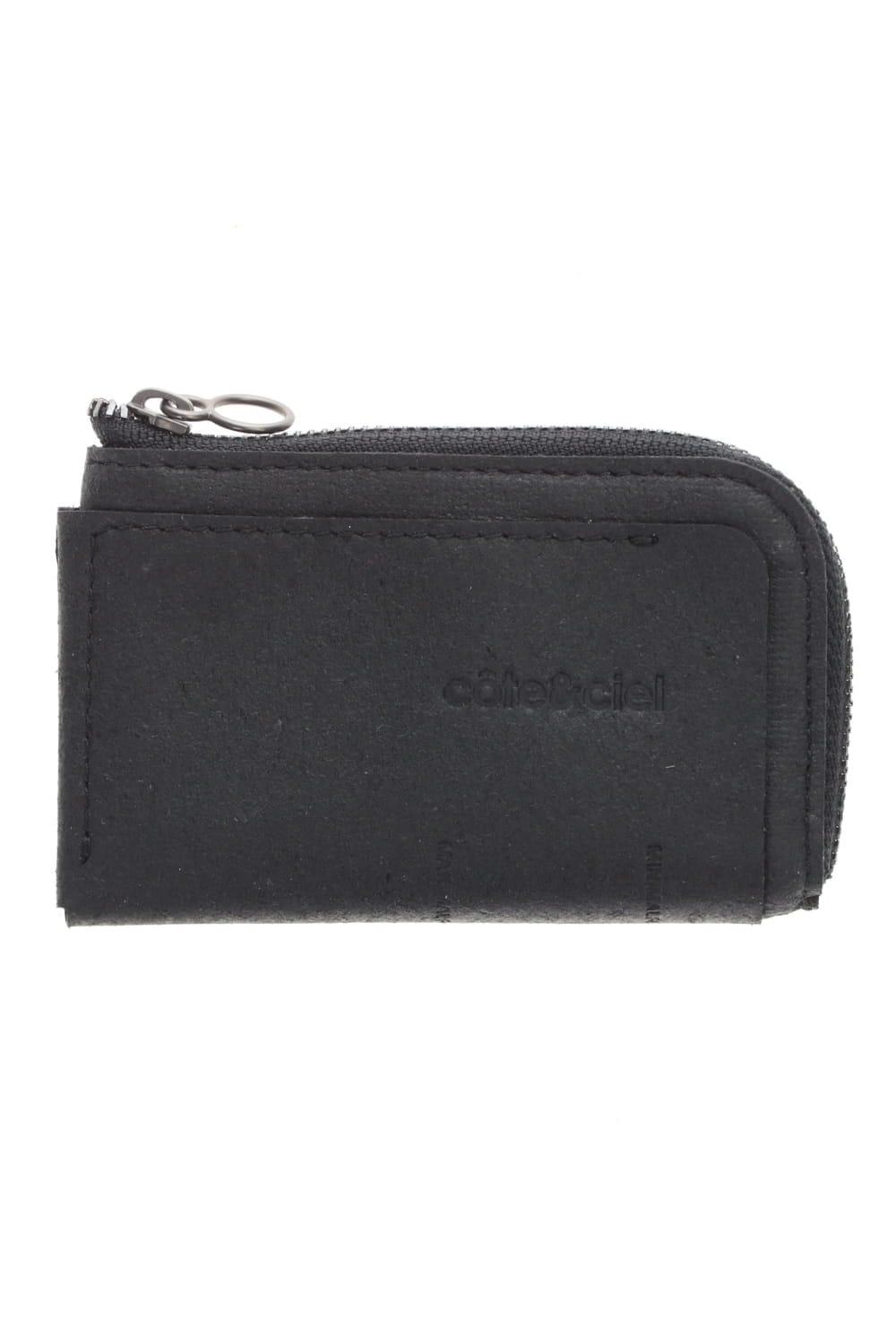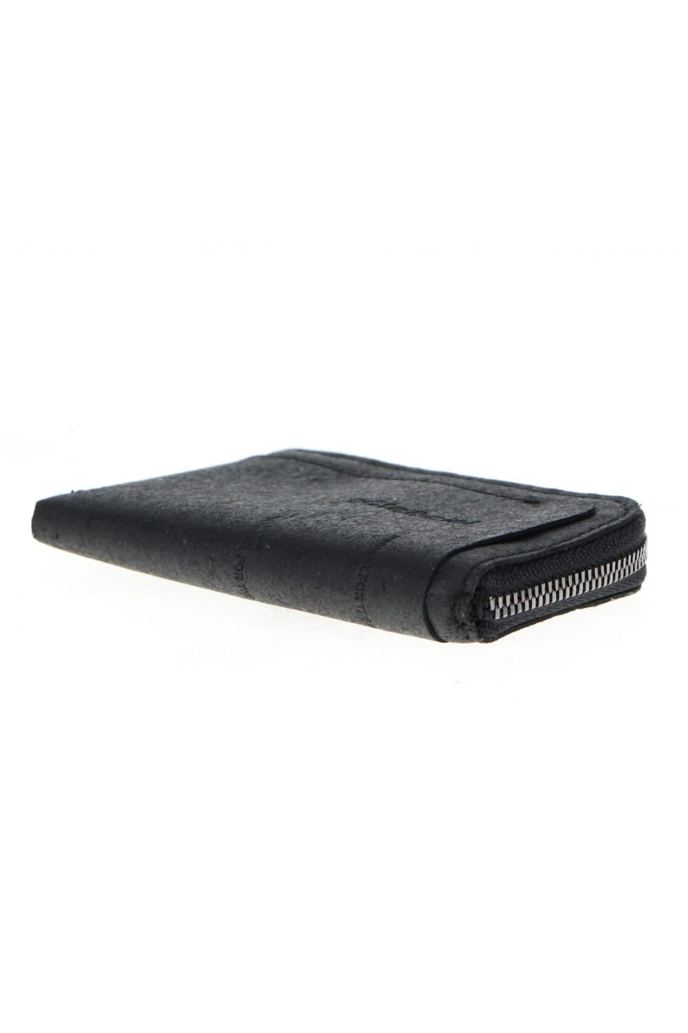 Compact wallet with zip made of recycled leather.