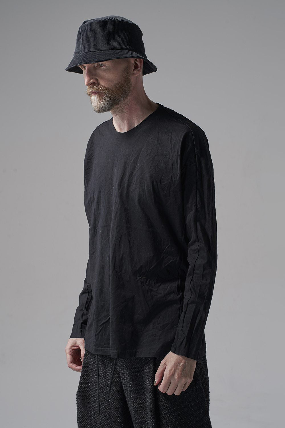 Relaxed fit long sleeve cut sew made of Jersey fabric with 3 twisted 100 count fine threads.