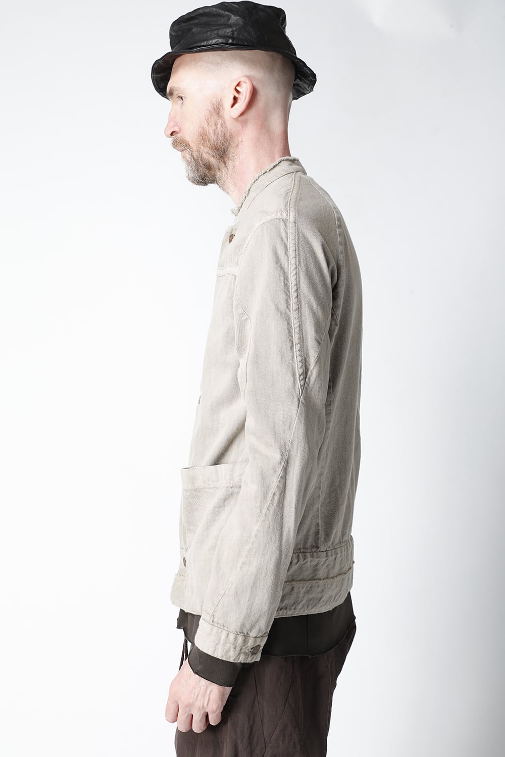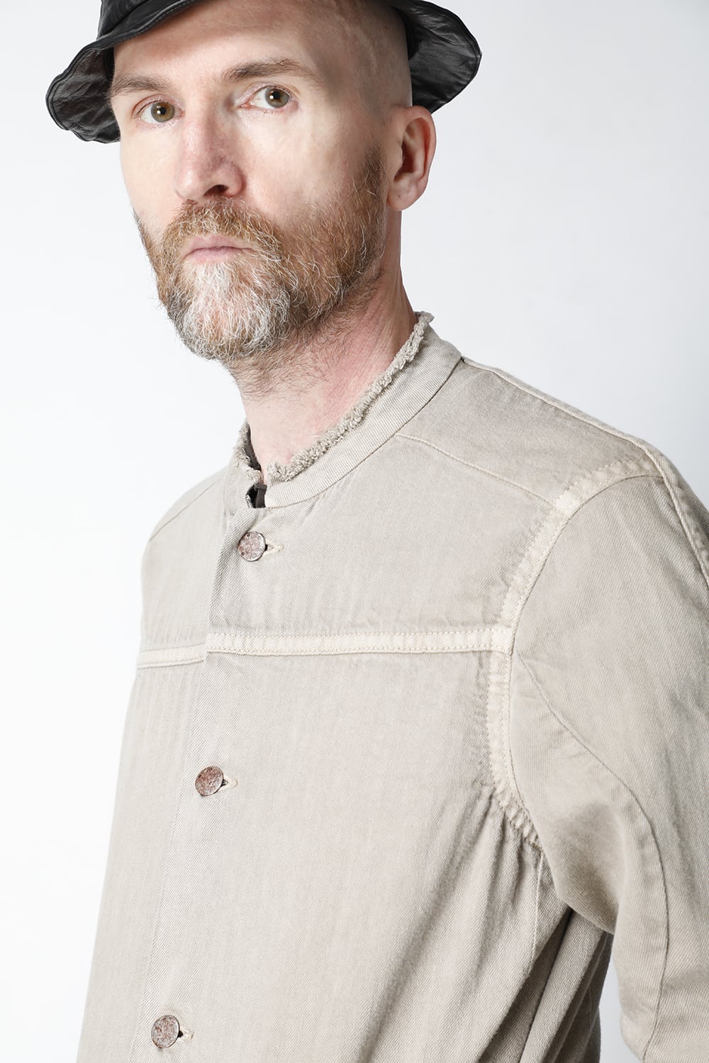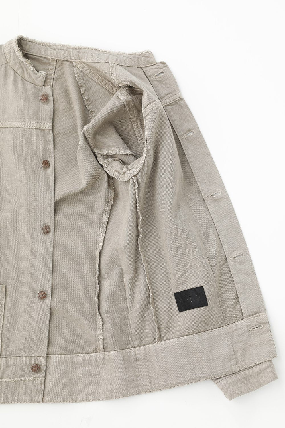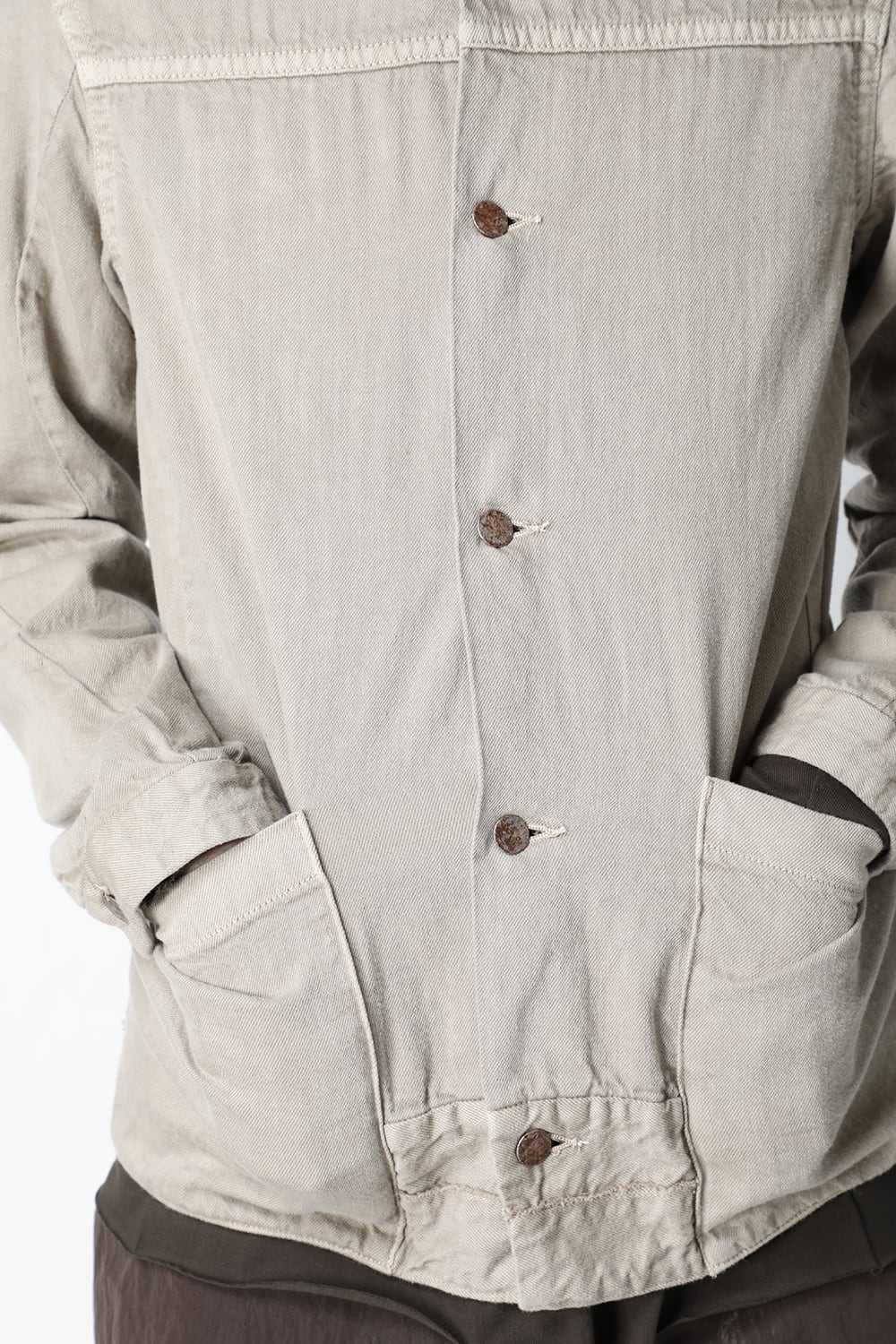 A denim jacket with a regular fit silhouette that uses 8oz denim dyed beige with the warp (unstained) and weft (threne dyed).