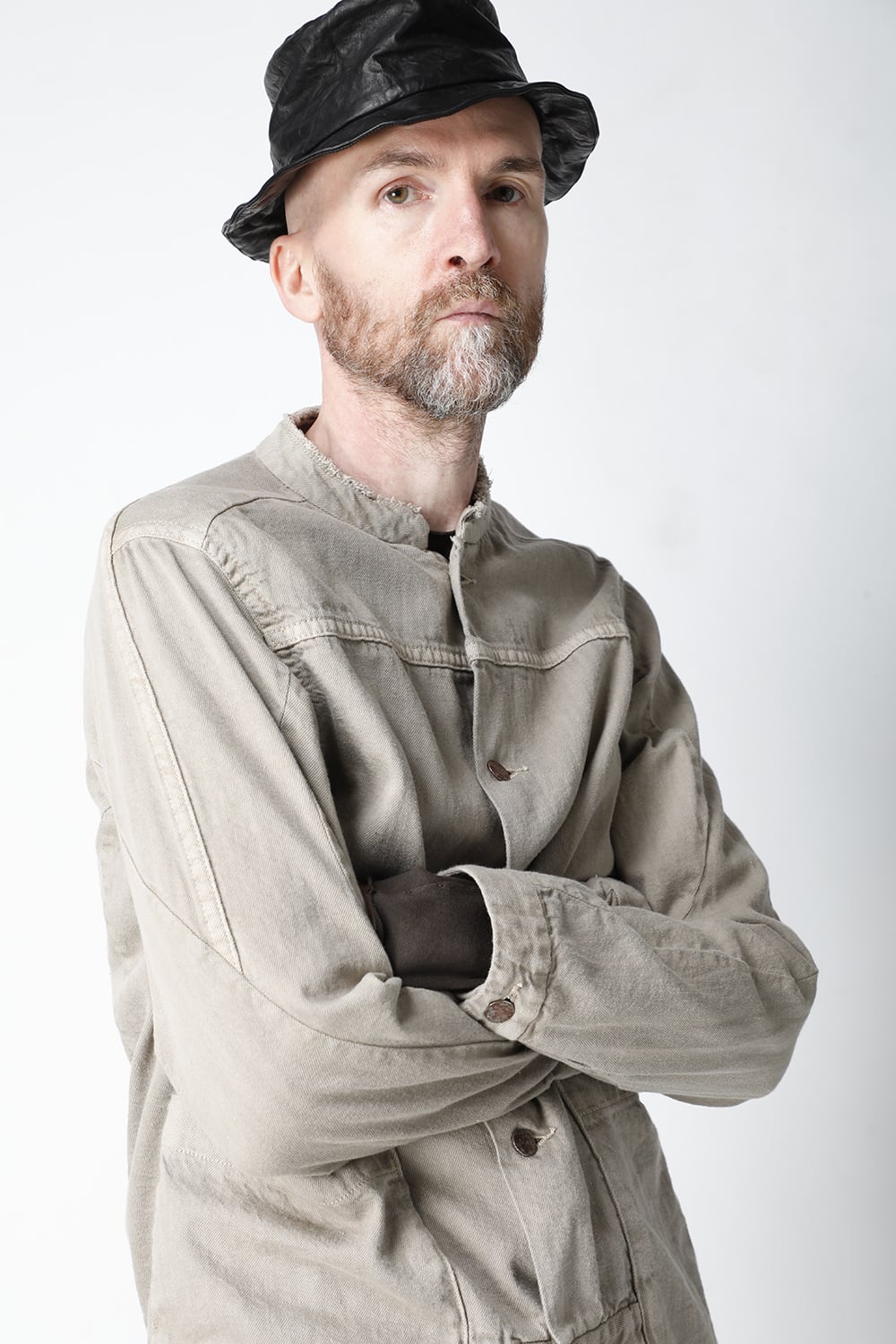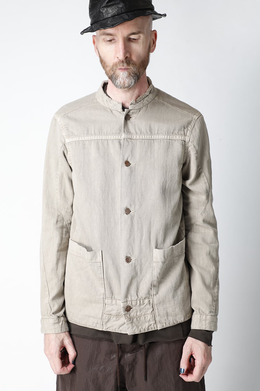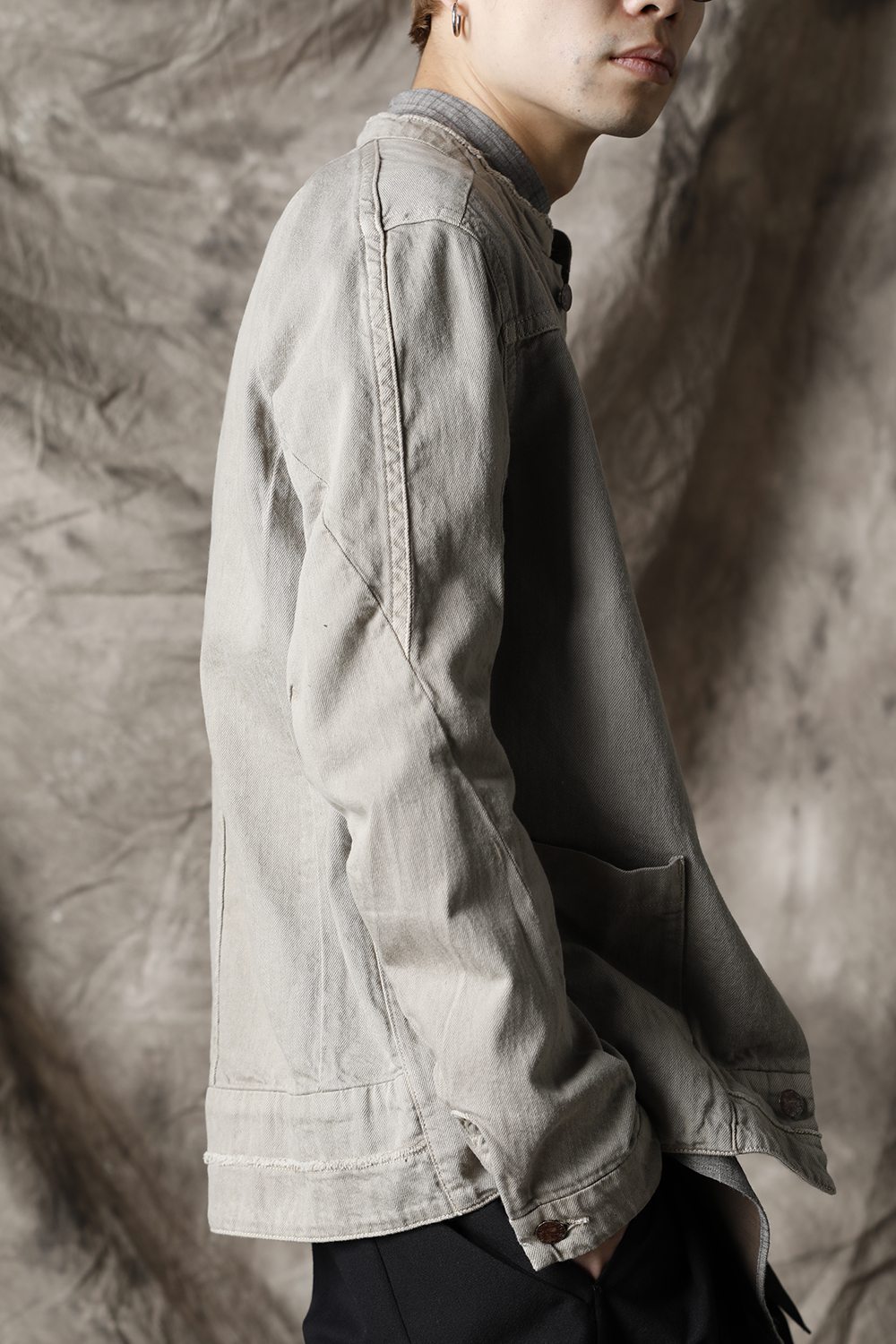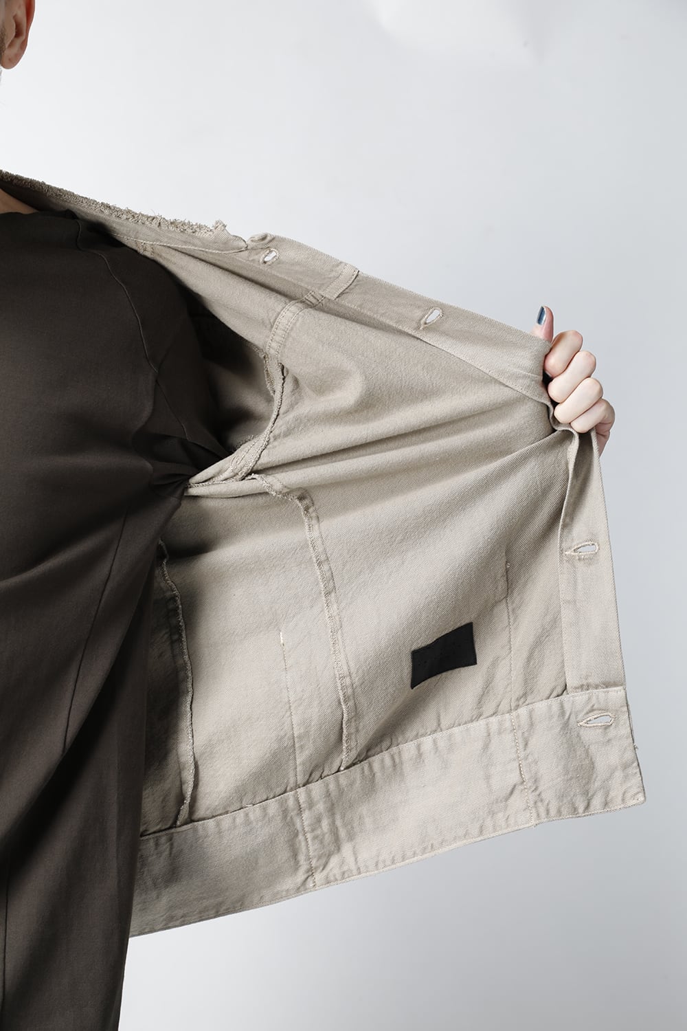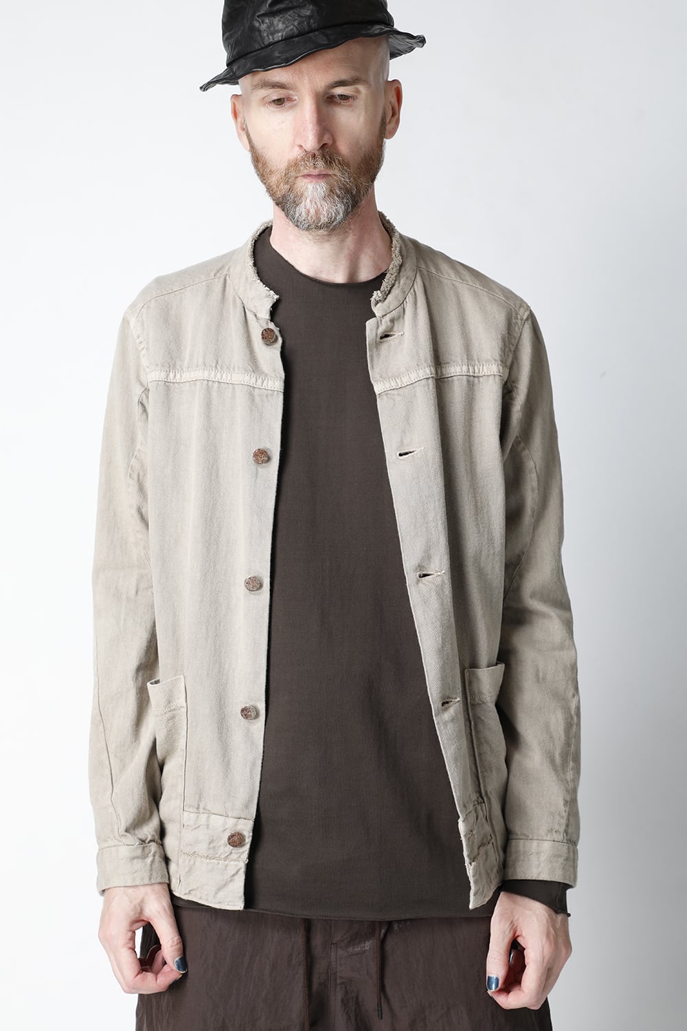 A denim jacket with a regular fit silhouette that uses 8oz denim dyed beige with the warp (unstained) and weft (threne dyed).