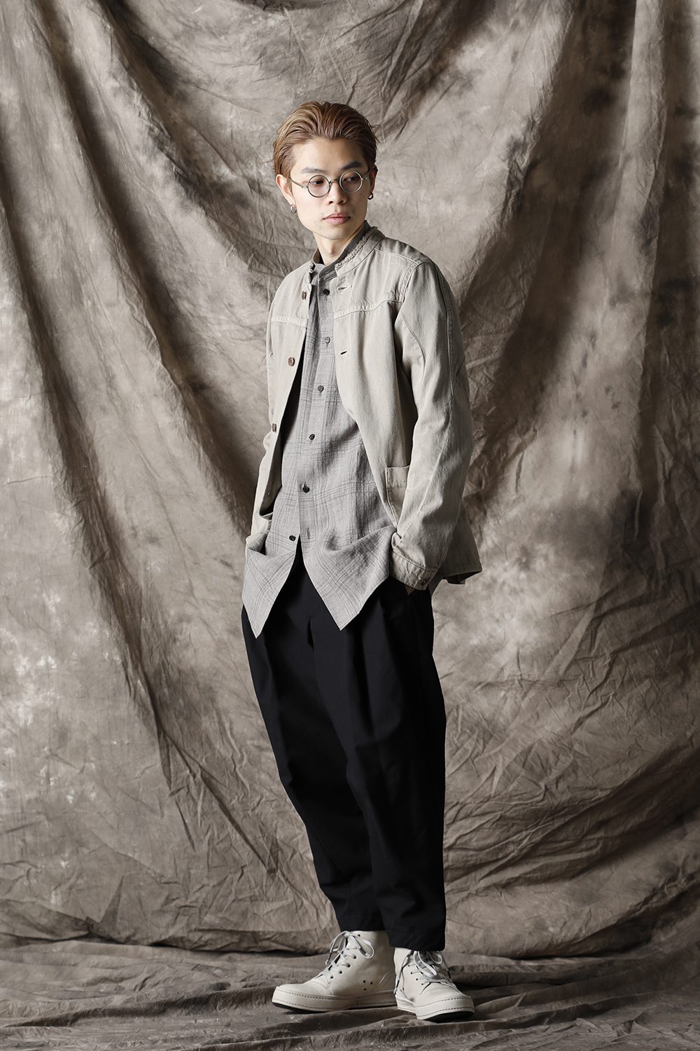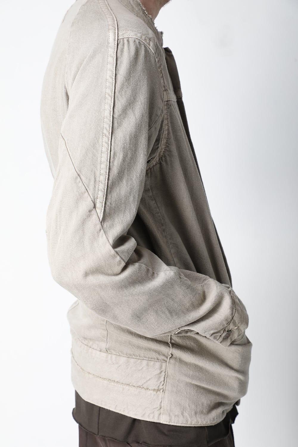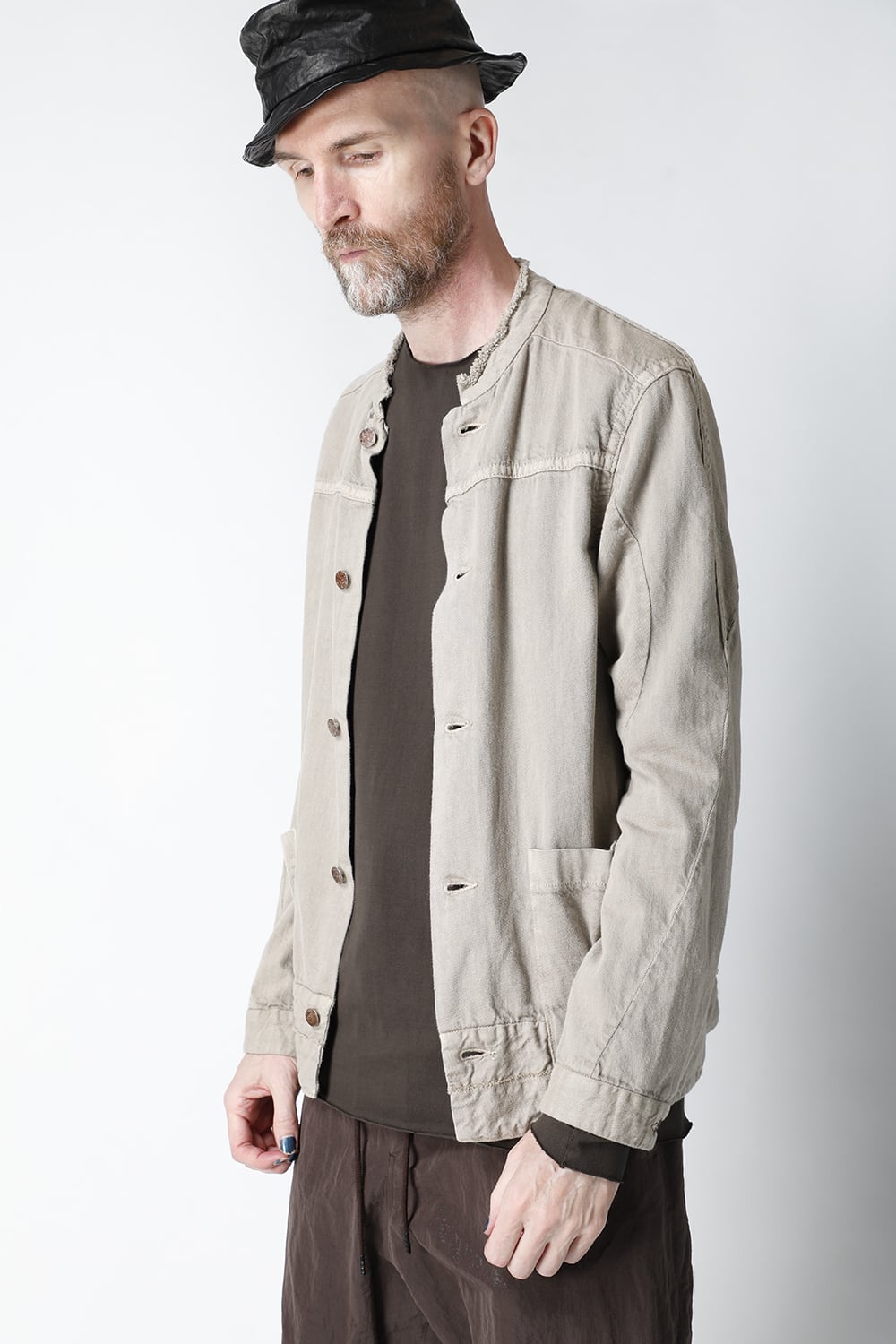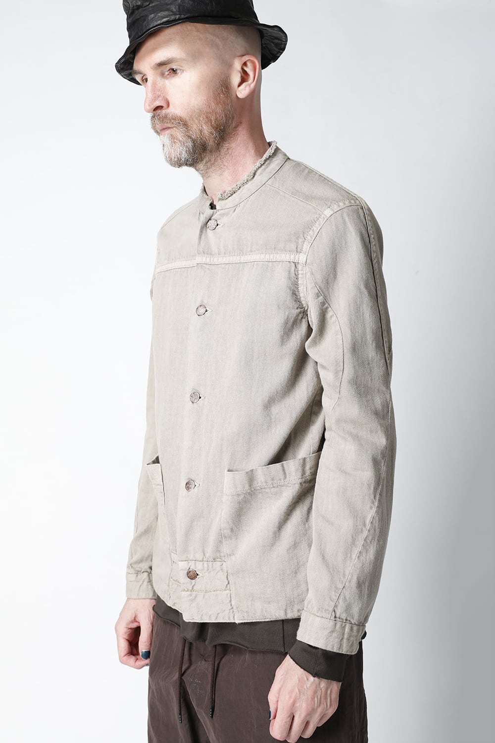 A denim jacket with a regular fit silhouette that uses 8oz denim dyed beige with the warp (unstained) and weft (threne dyed).