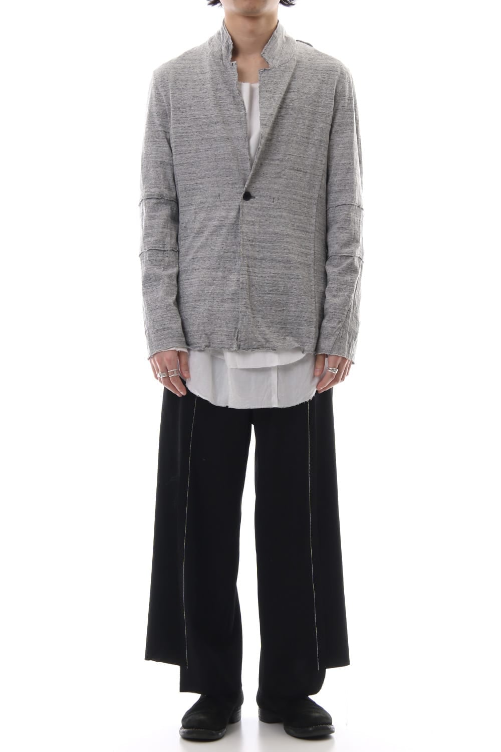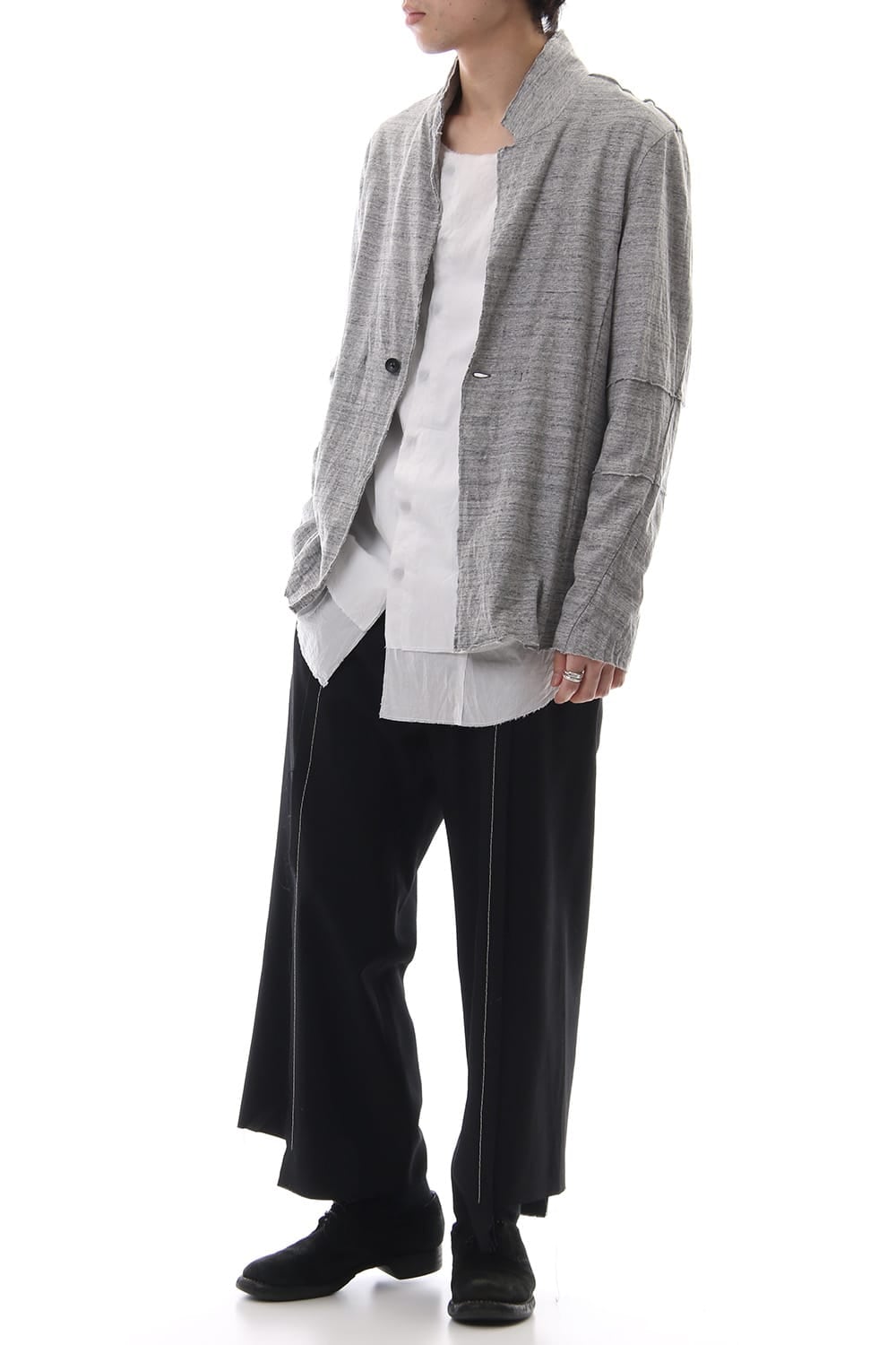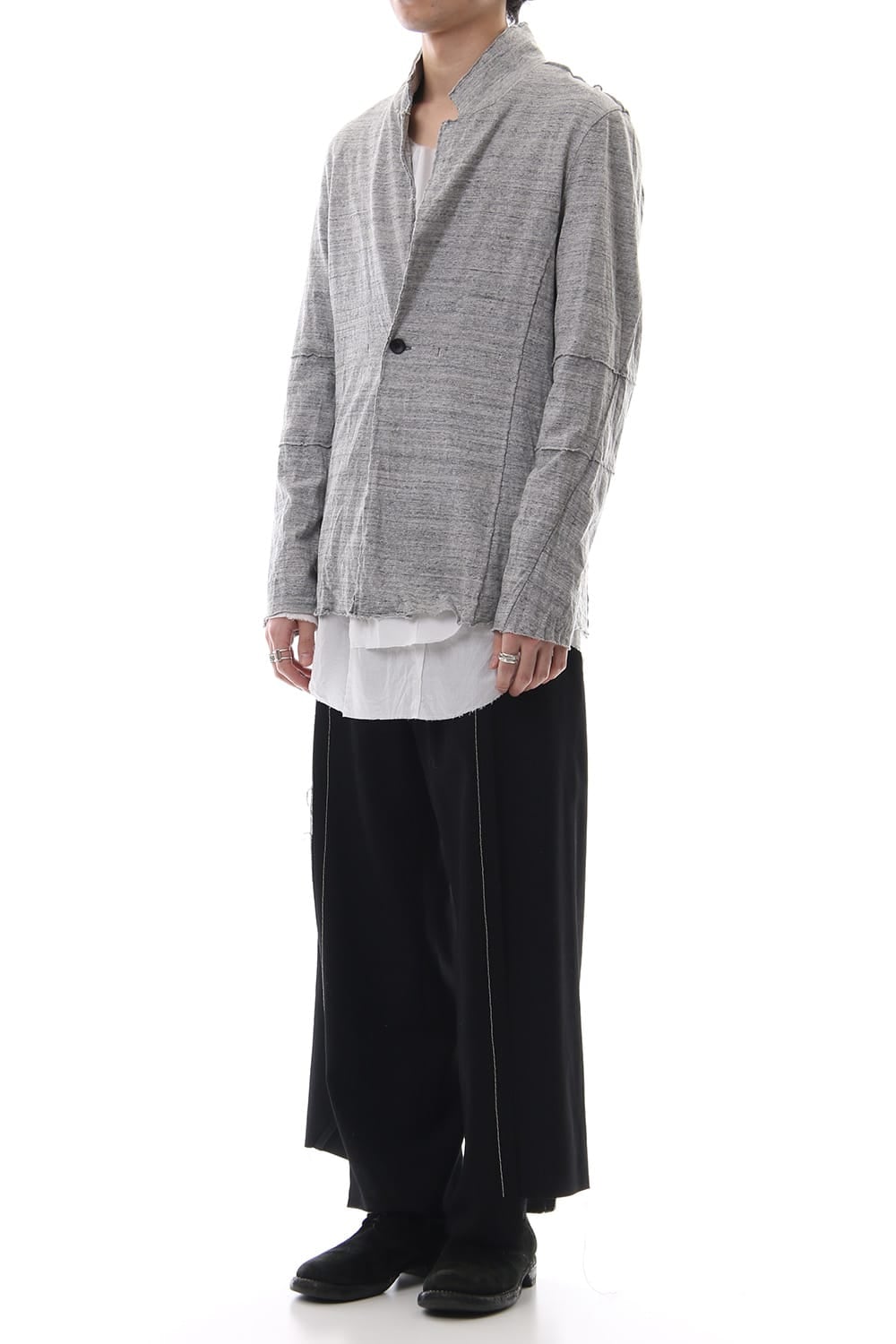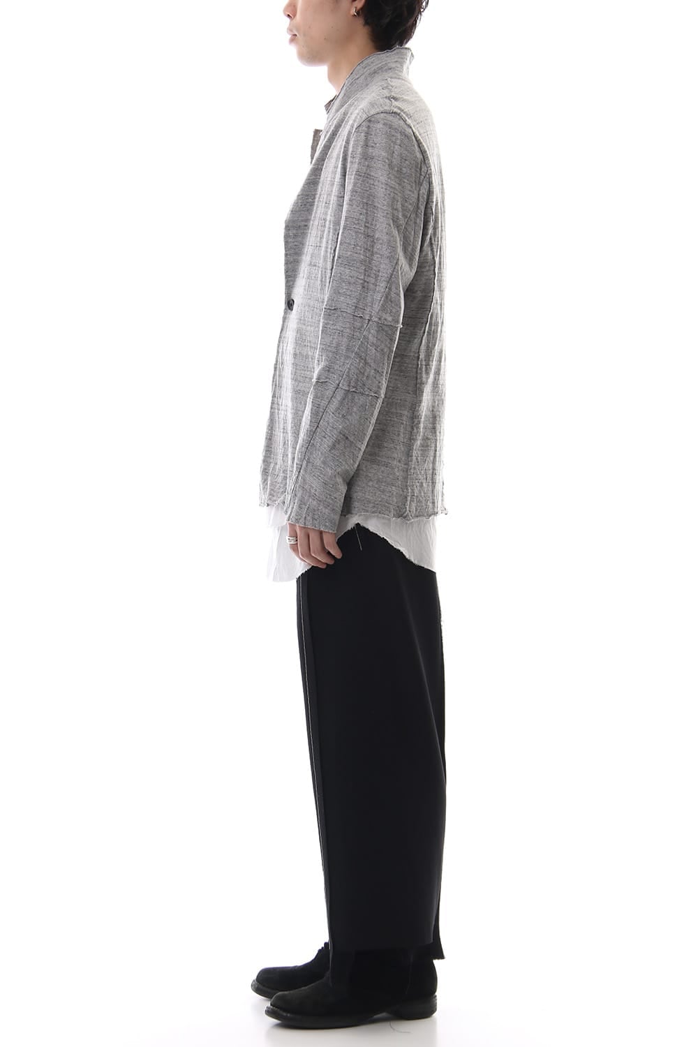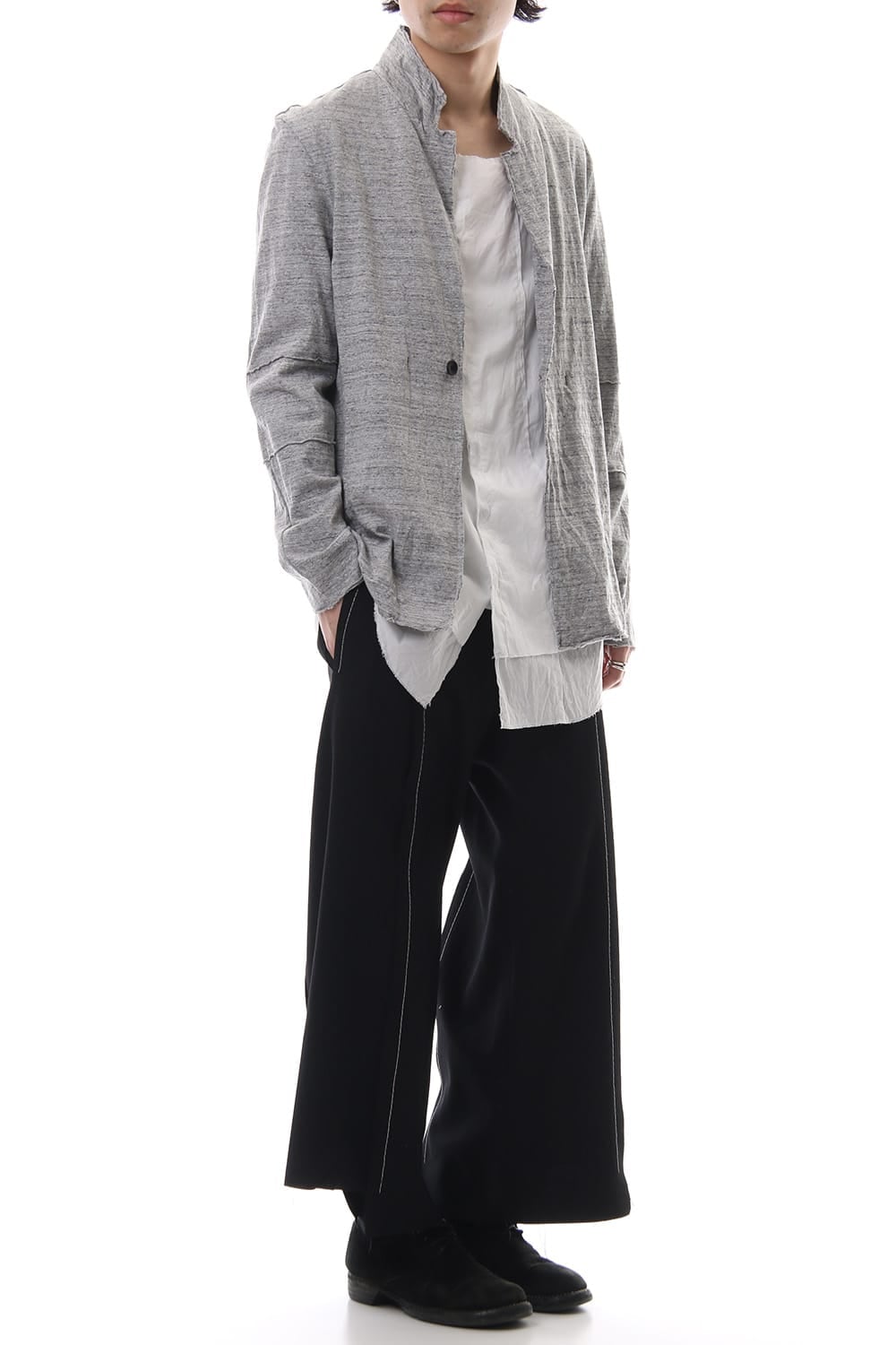 An easy jacket that is easy to wear. Slab fabric using special unevenness yarn developed with domestic spinning technology which is the highest standard. By processing it in a luxurious manner, it produces a crafty expression. The collar is a stand collar. The arms have a seam design to reduce stretch. The work is basic piece focused on making details. It can support a wide range of casual and mode styles. As it is thin, it is also comfortable to wear. The silhouette is a form you can use without getting tired. The finish has a slightly tight design.