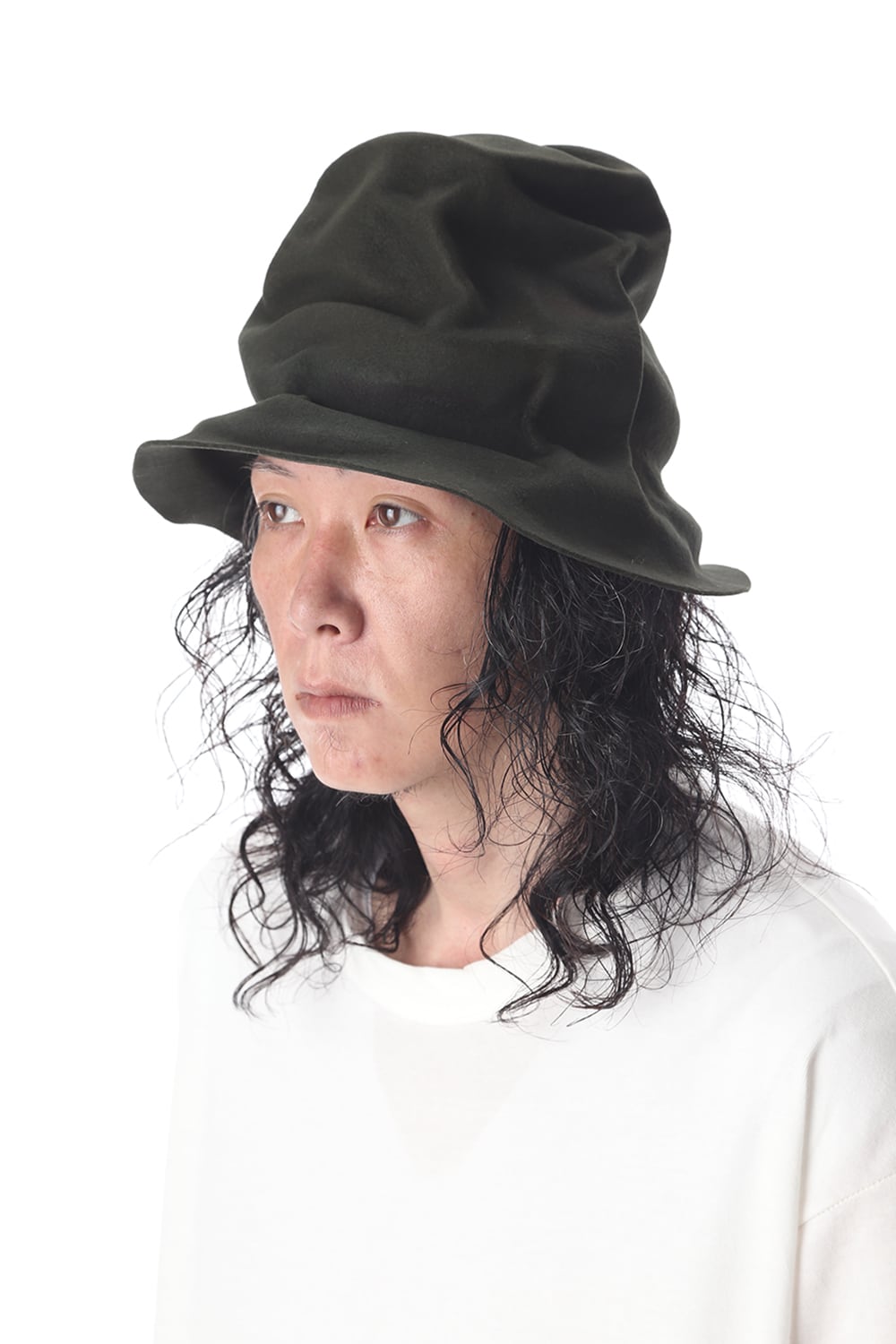 This standard hat is characterized by its casual form. This model is called [Pancake]. It has a design that you won't get tired of and can be easily carried in a bag. The practical side is one of its charm points. This item is made of smooth and soft rabbit fur by the hands of the craftsman. The brim is about the same as the 005 but the crown is set high, giving it a strong avant-garde design. Brims and crowns can be worn in any shape to suit your taste and style. Available in one size, slightly larger. There is a band on the inside, designed to prevent it from coming off easily. This model can be worn by both men and women. *All Horisaki products are handmade therefore there are individual differences.