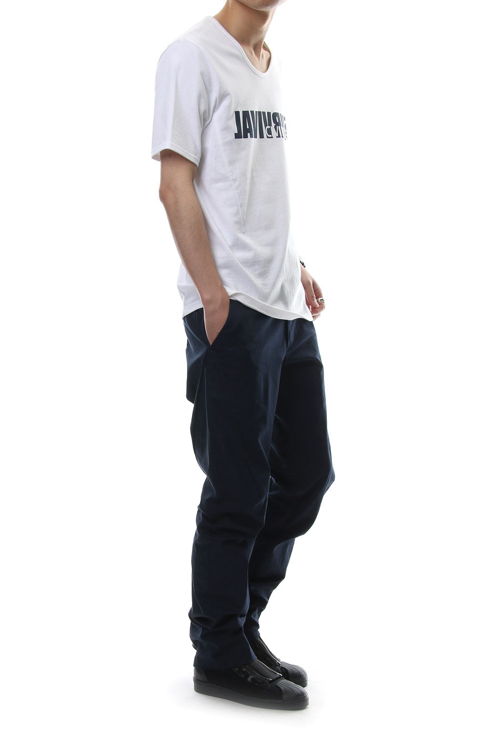 This is the CIVILIZED three-dimensional chino pants. Normally we will finish the front and rear parts side by side, but we eliminated the side seams and made our own cutting and darts to enhance the mobility according to the movement of the feet.
