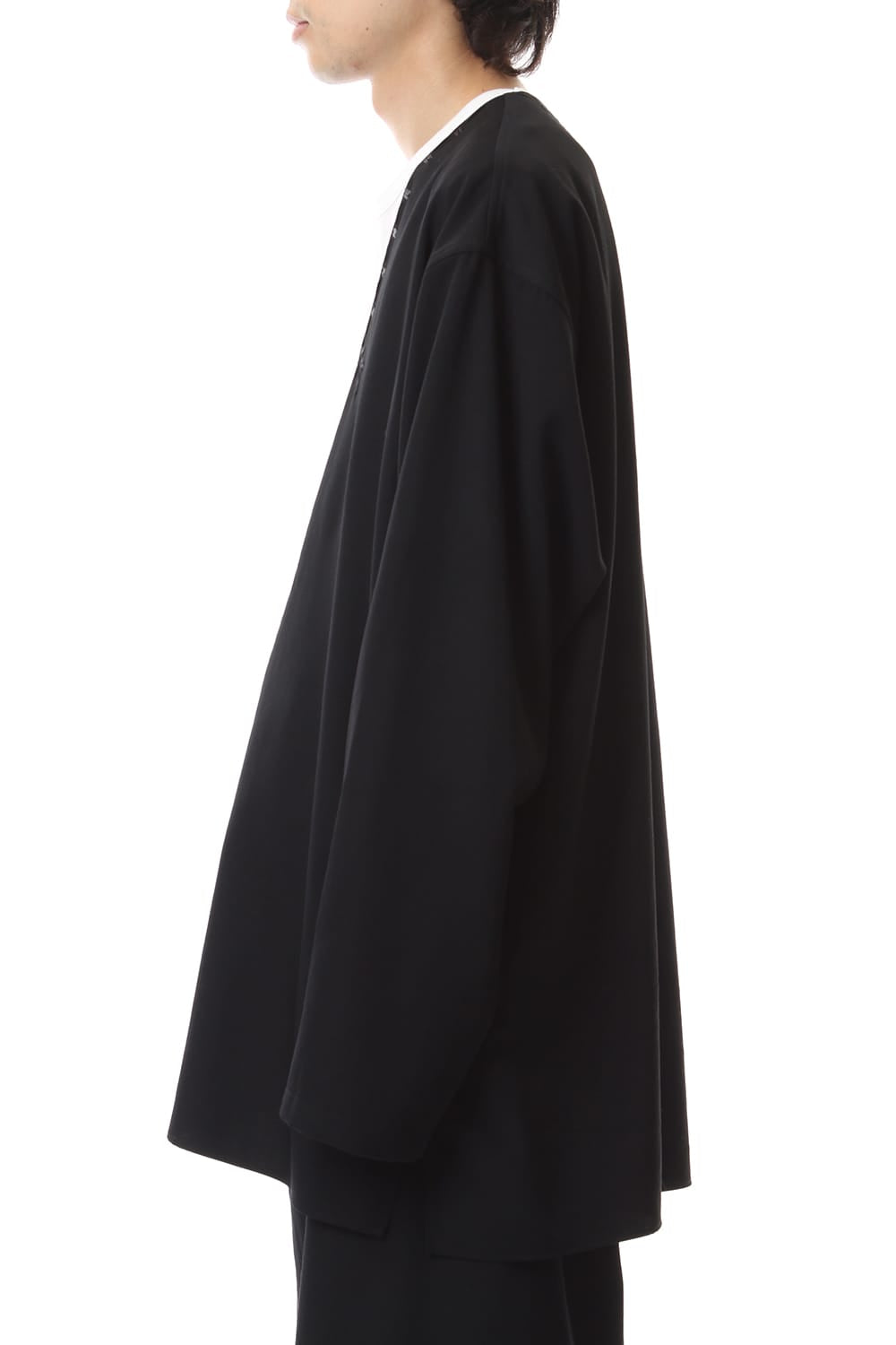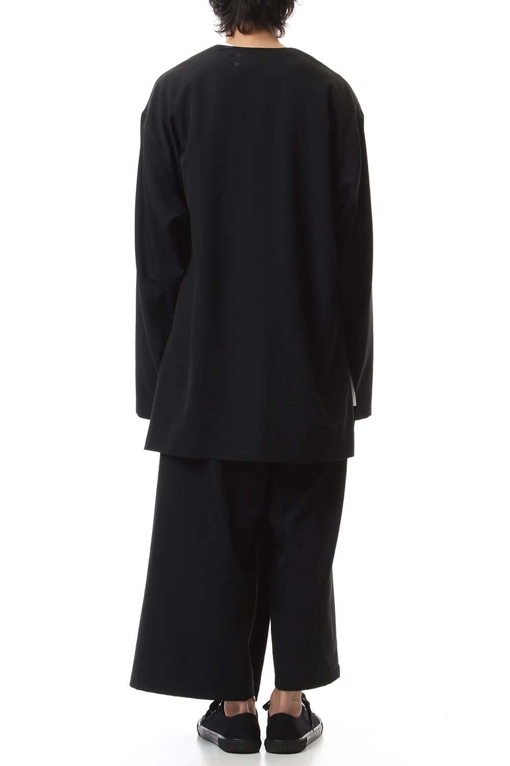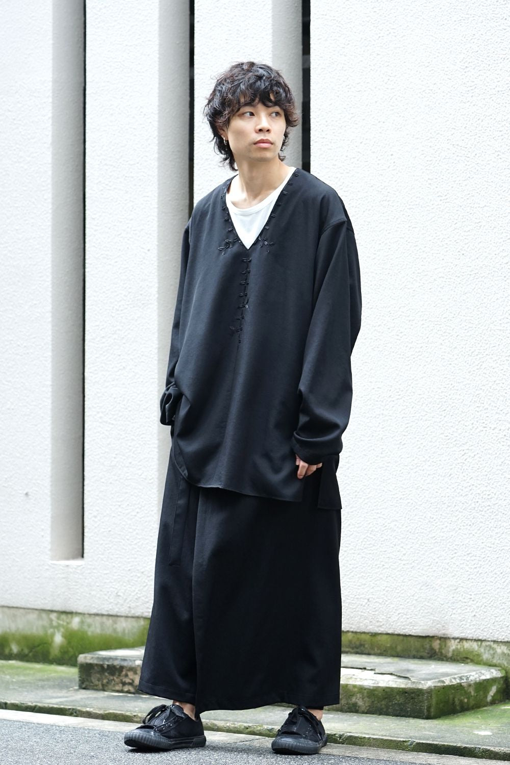 A tunic shirt made as a replica of the 1985 -1986 AW collection. The fabric is wool gabardine and the embroidery on the neck creates an ethnic atmosphere.