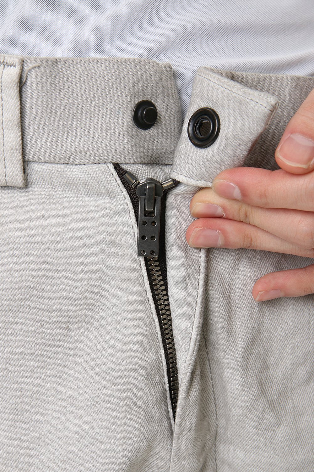 FASCINATE limited model stretch denim slim pants based on DEVOA's familiar slim pants. The fabric is 10oz cotton polyurethane denim. When the fabric is usually set to 138cm width in the case of arrangement processing, the fabric is widened to 128cm width and the stretch property is strengthened. The stretch has power, but the balance of the warp and weft threads is good and it maintains the silhouette firmly. Moreover, it is dyed with Black ink to give it an expressive look, so it does not look stretchy.