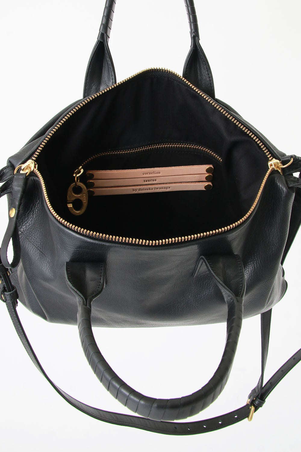 This is a three-dimensional plane concept developed to create this Flat Tope Mini bag. The default shape form can store up to an A4 size canvas. There are fastener buttons below to adjust the size to create the three-dimensional compact bag. You can also sling is diagonally across as there is a longer strap as well. This bag can be used for work or play with its convenient way of use.