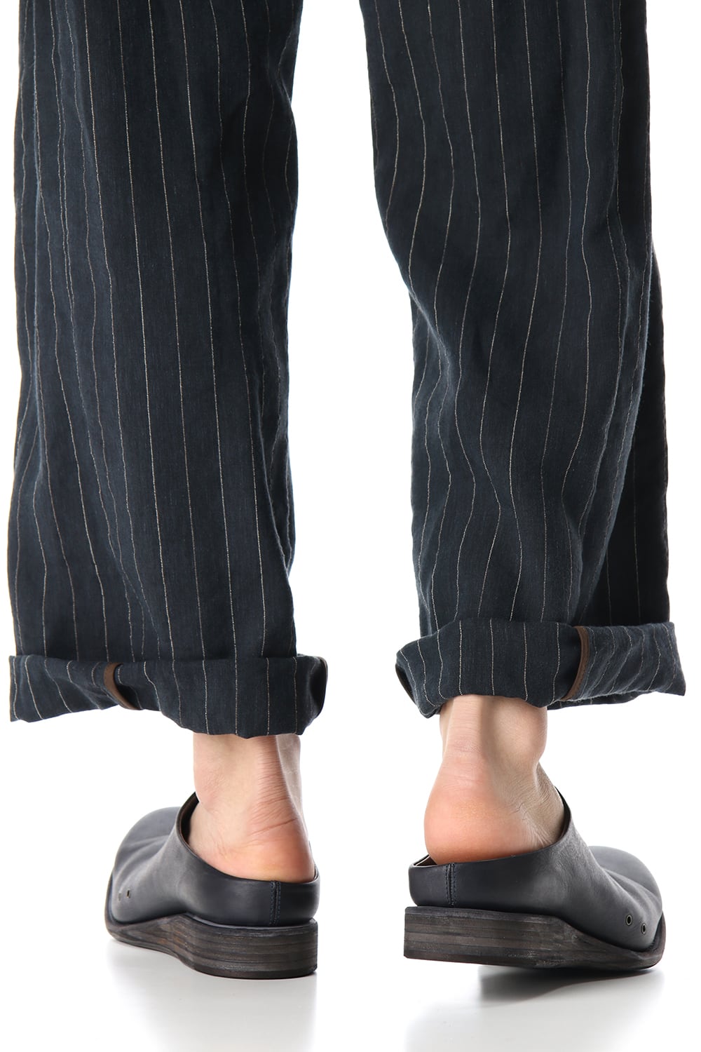 The mule has no inner step so you can wear it bare footed and the outer hole has an eyelet hole to give ventilation as much as possible.