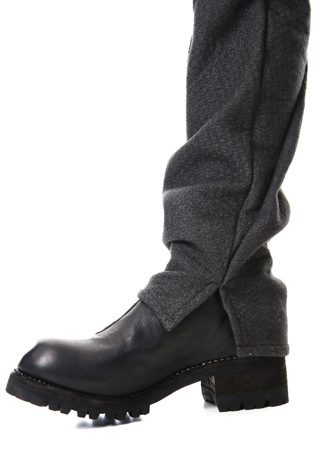 Hand Dyed Linen × Freece Needle Punch Drop Crotch Slim Pants Charcoal - ST107-0039A