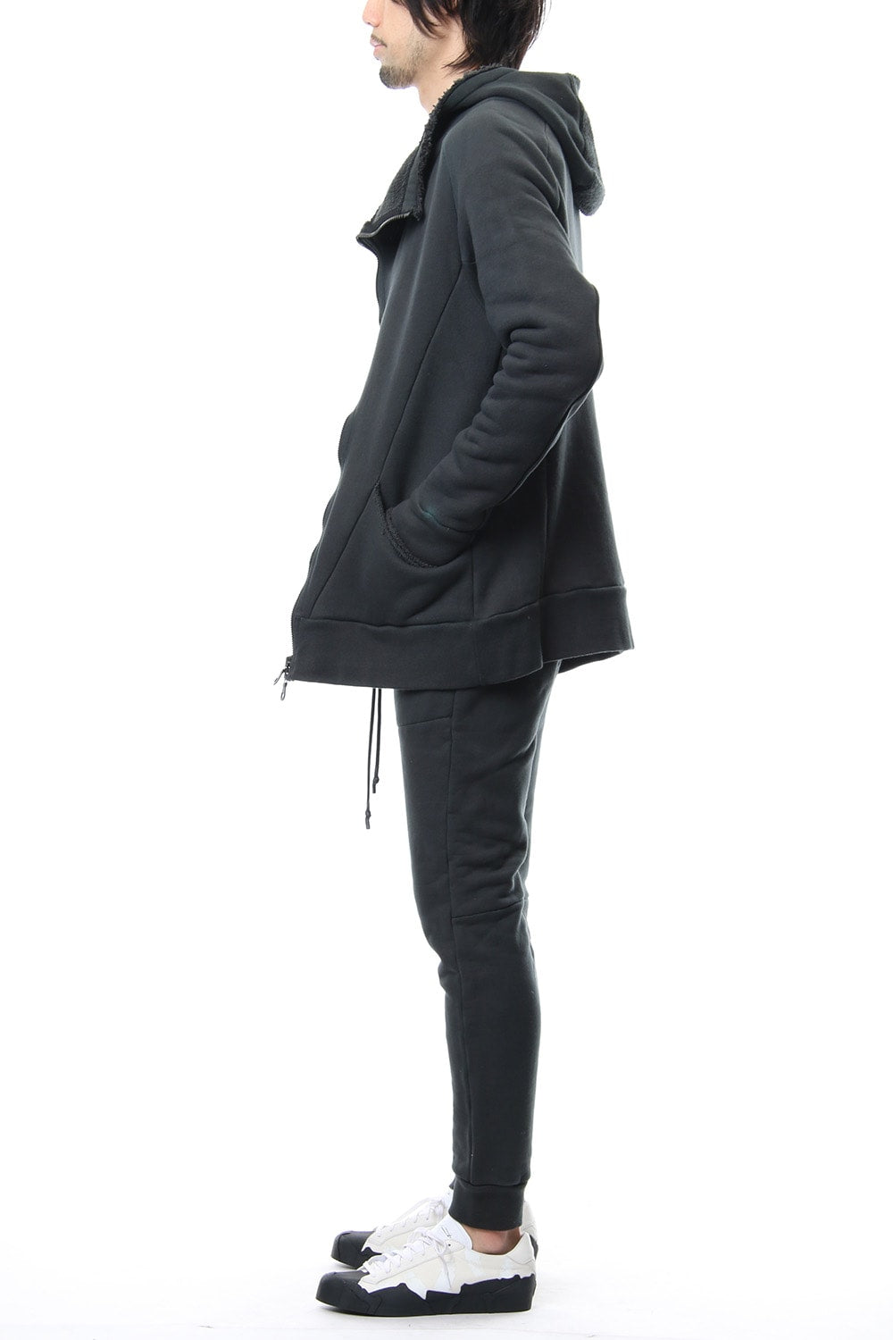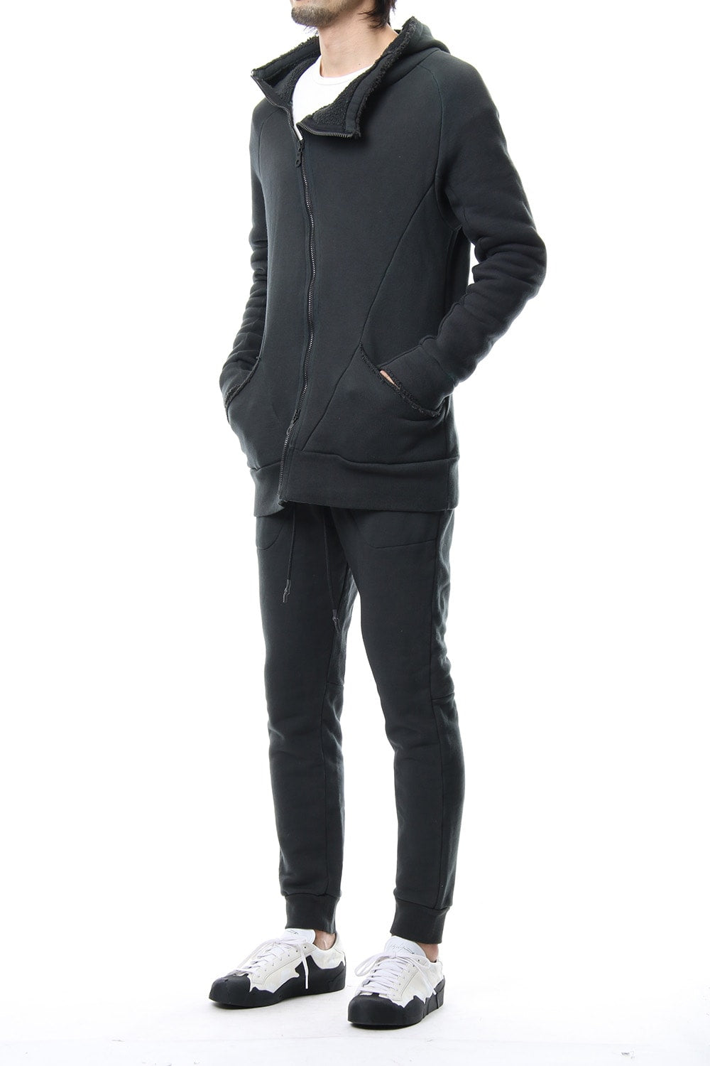 以前展開していた鬼裏毛を現代版にアップデイトしました。太番手でありながら見た目と反した柔らかくて軽さのある鬼裏毛素材。加工は定番であるコールドダイを施し、奥行きのある絶妙な色合い、自然なムラ感が出てくるのが特徴。
