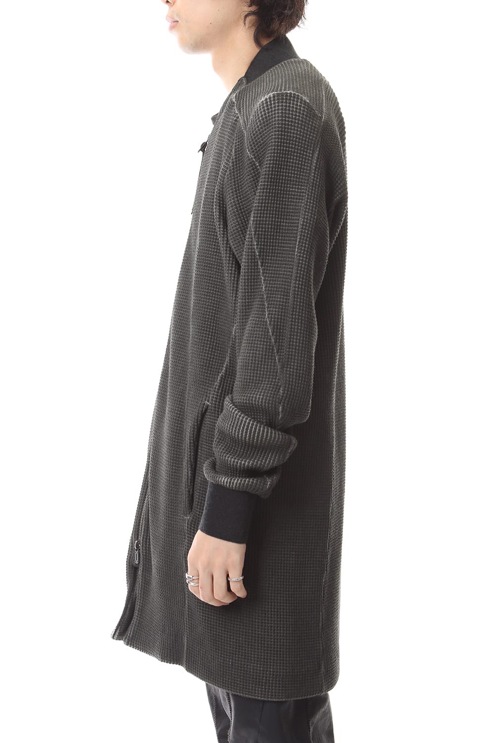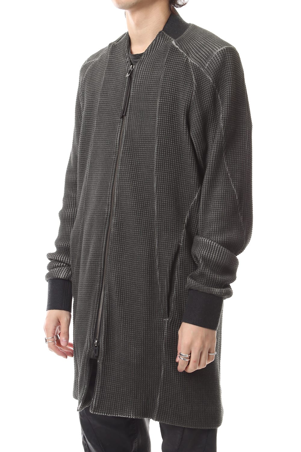 -Based on MA-1, with its edgy rib design and long design incorporating a pattern, this item can be worn either as a cut coat or as an outer garment.