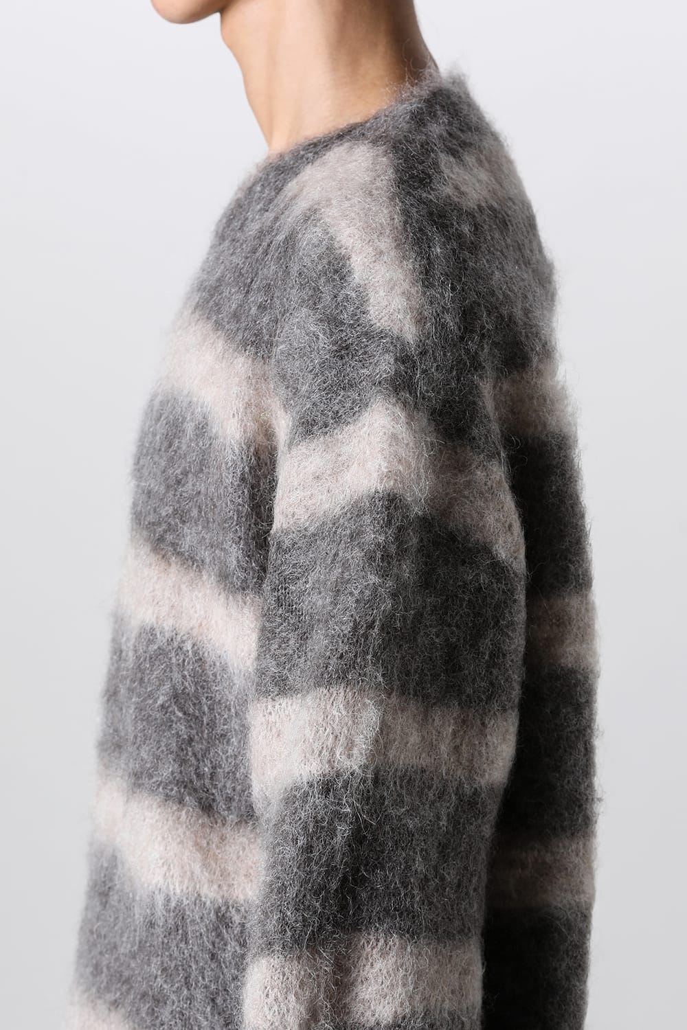 This knit is made even hairier and more textured by knitting yarn that has already been brushed into the product and then subjecting it to further brushing.