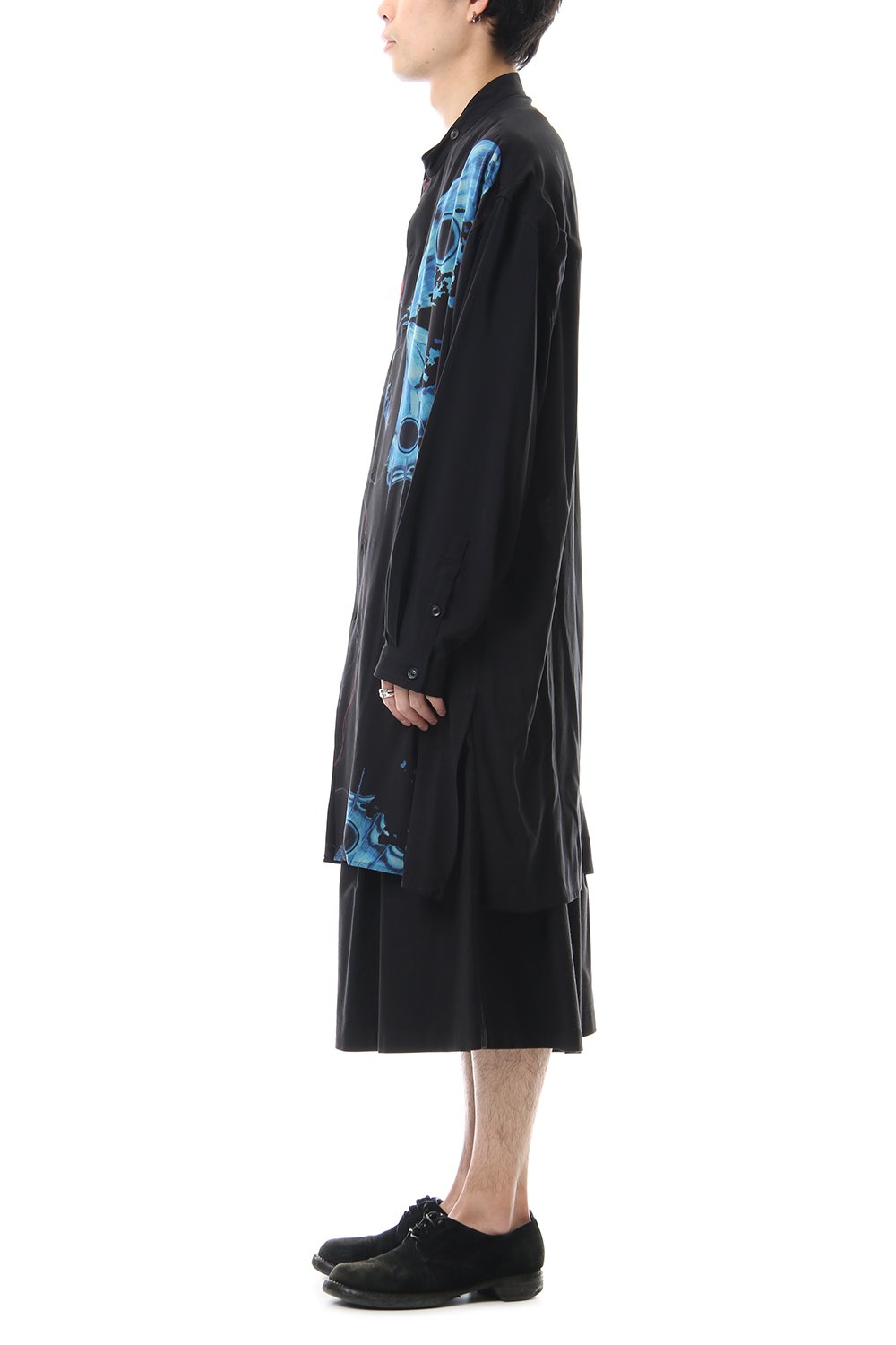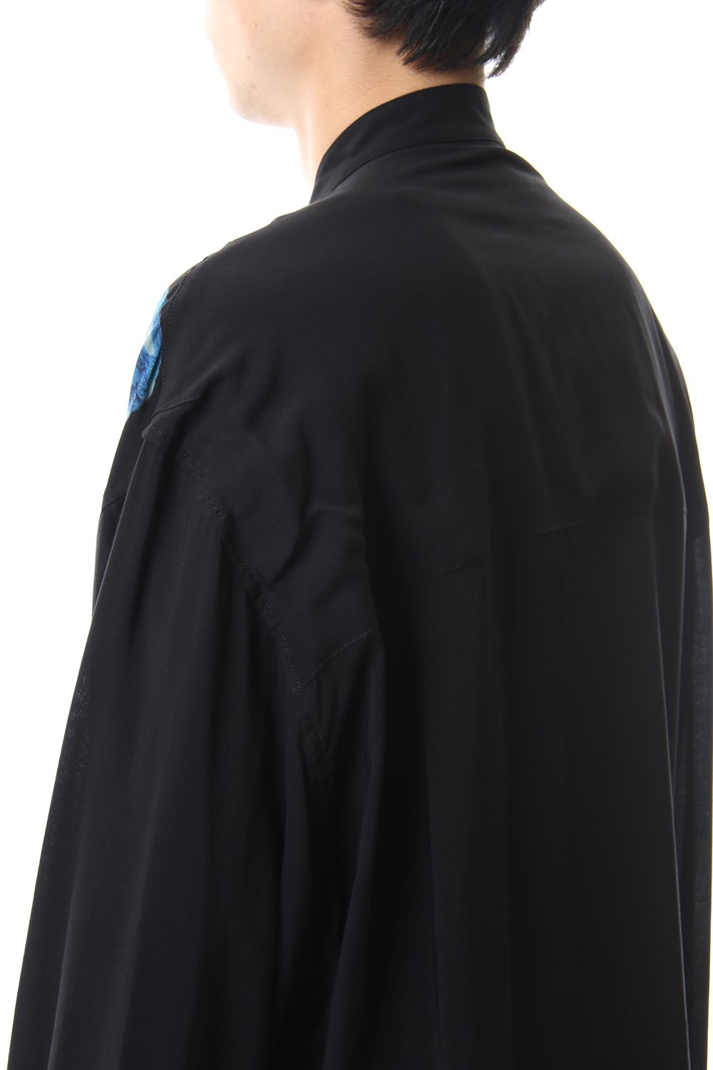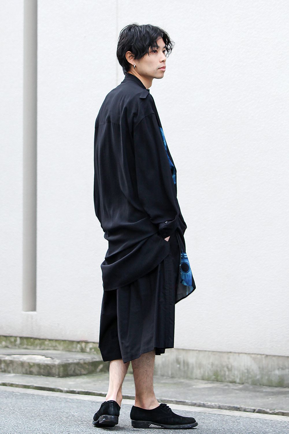 A collaboration item with Suzume Uchida, the second time in the collection. It is made of lightweight rayon loan fabric with a nice draping feel, it has a deformed collar around the neck that looks like a stretched collar. The ink jet print beautifully expresses the "separating butterfly" of Suzume Uchida.