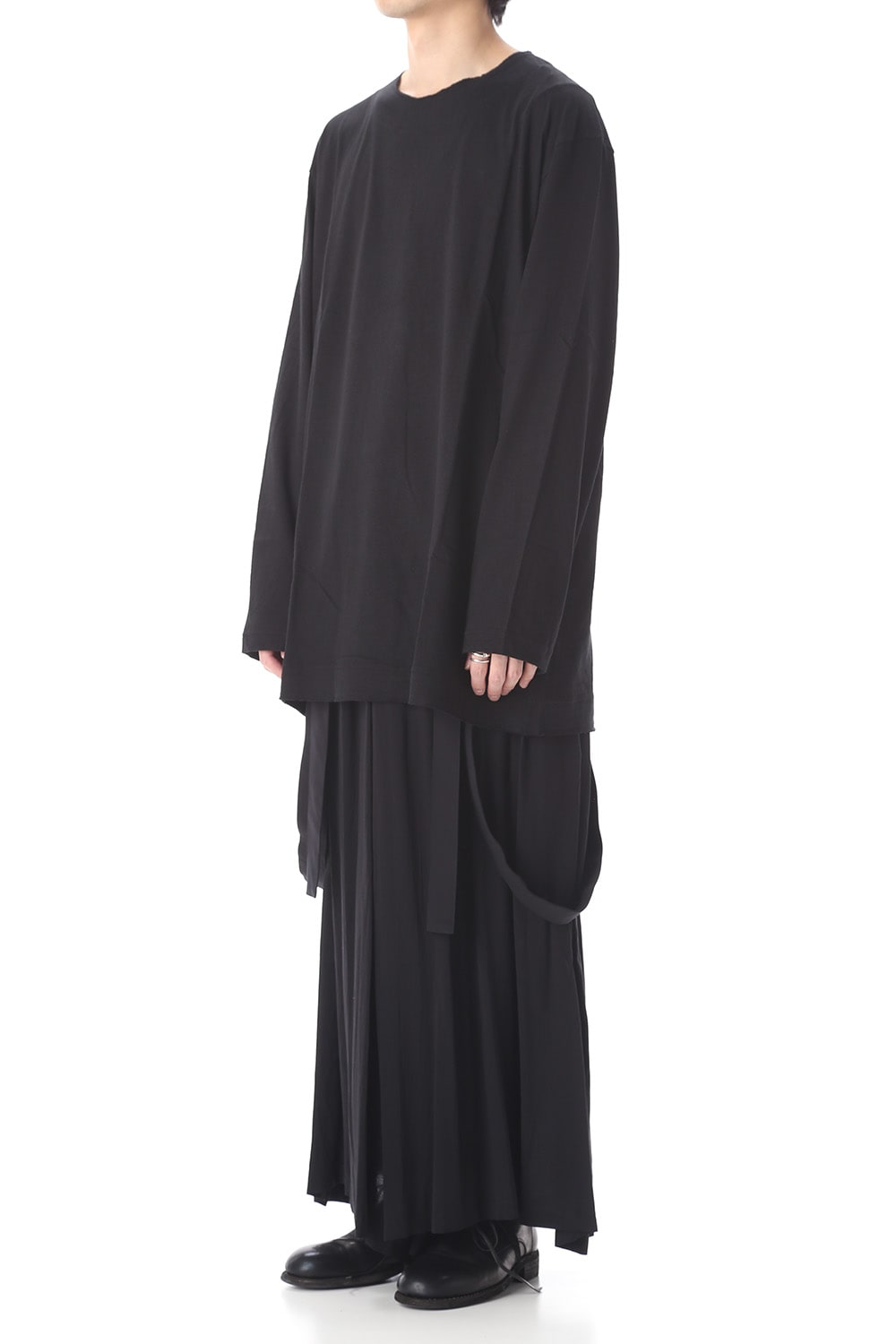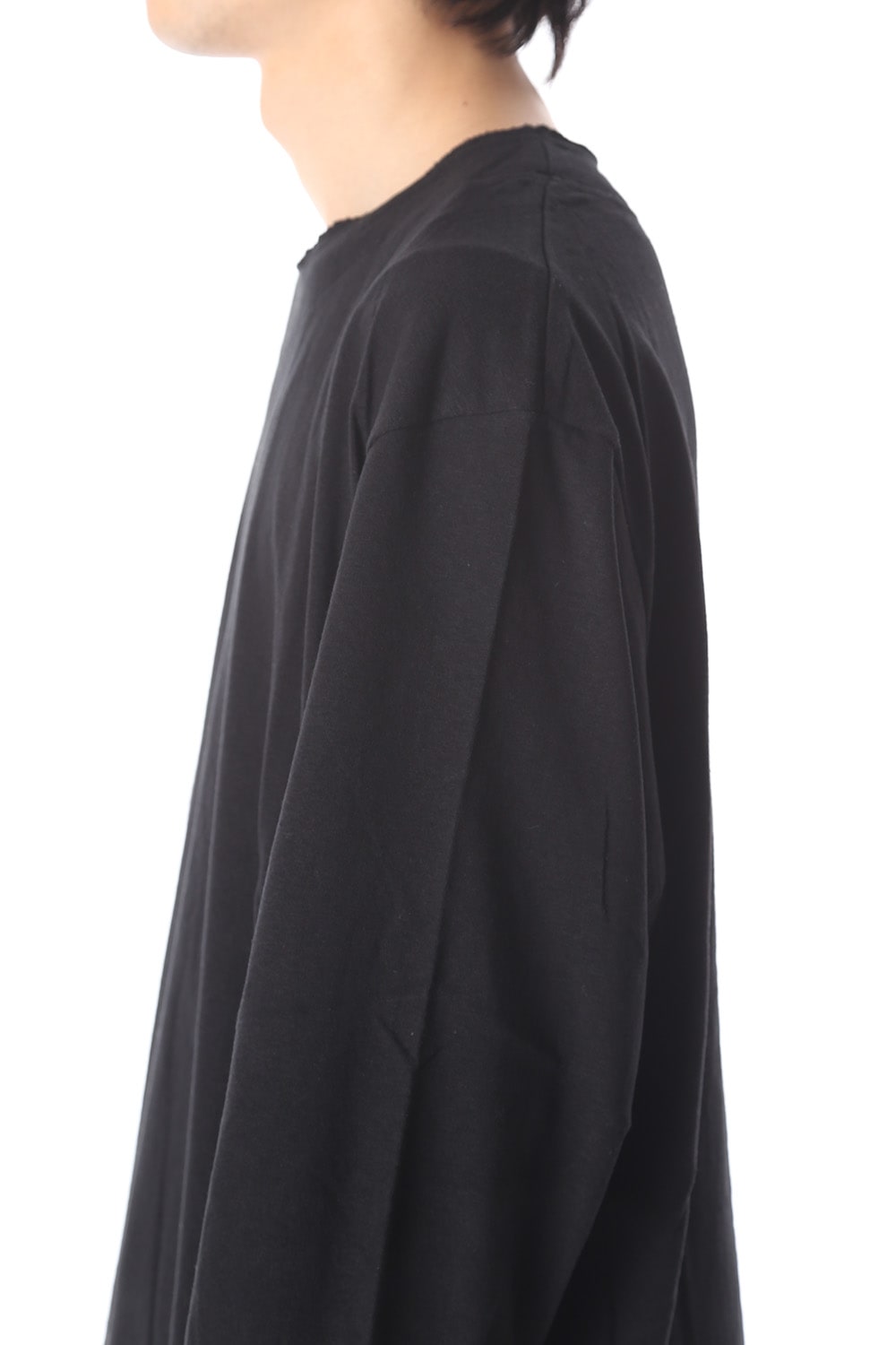 Old cotton Top stitch Cut off Round neck Long sleeve T-shirt Black