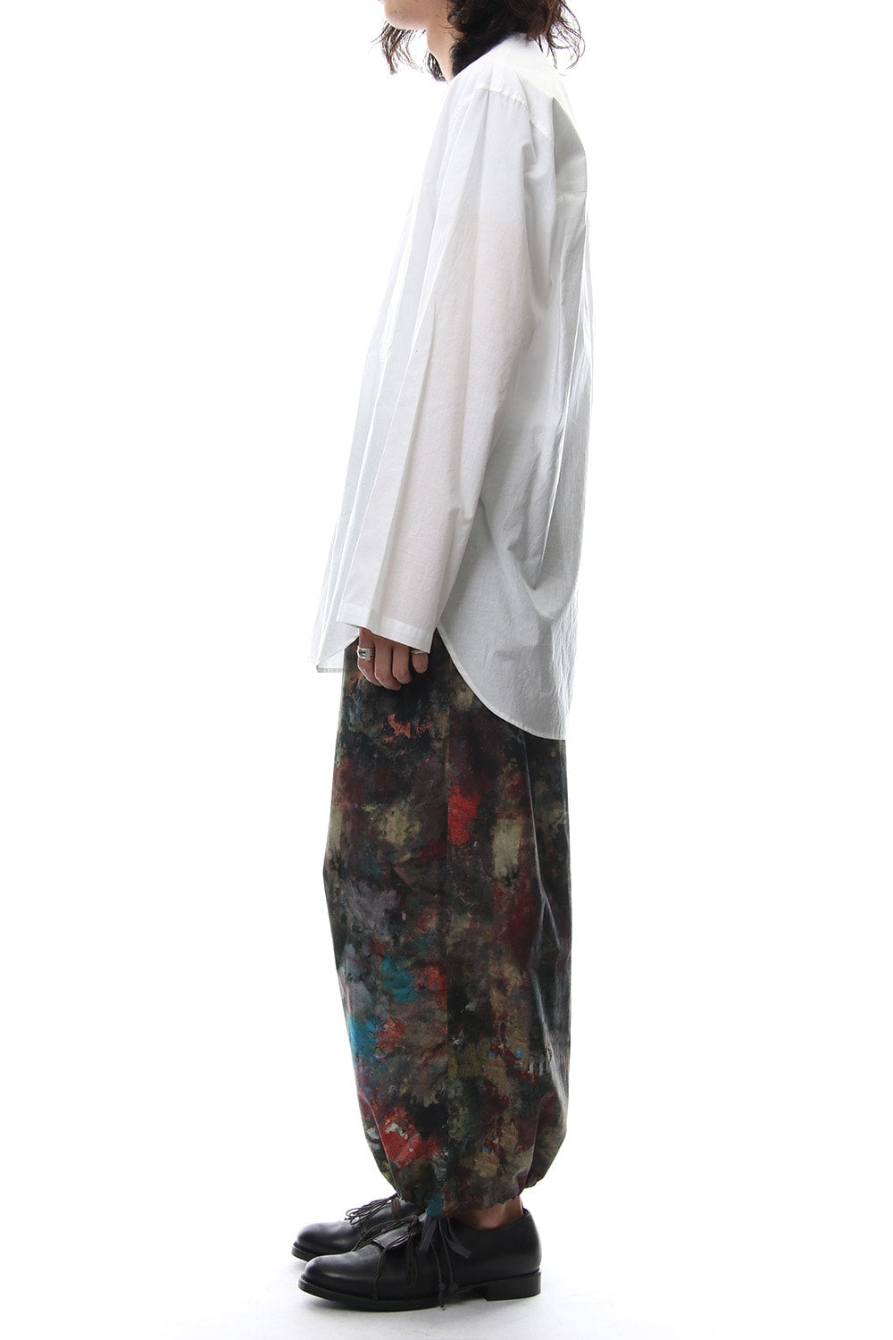 It is a simple no-collar shirt using a thin cotton loan of 60th count. It is a work that you can enjoy in various layered styles like as an inner for a coat for the spring, autumn or winter.